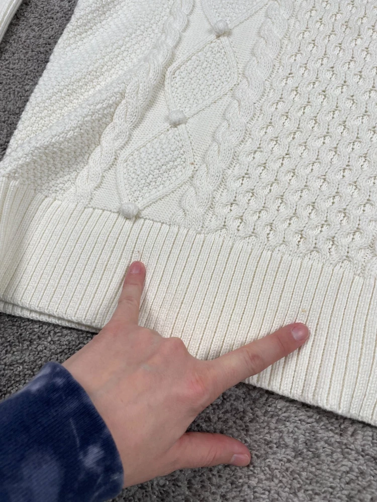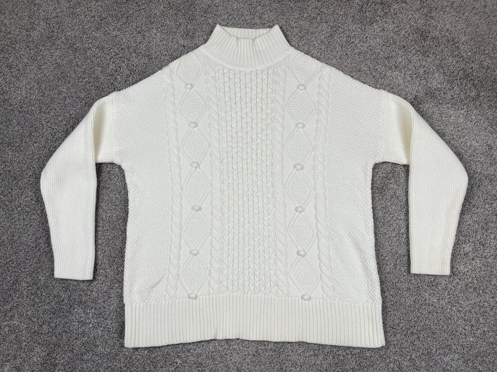J Crew Sweater Womens Medium Cable Knit Preppy Quality Feminine Cozy Comfort Top ships quickly great used condition, small spots as shown, no holes or flaws, measurements in photos