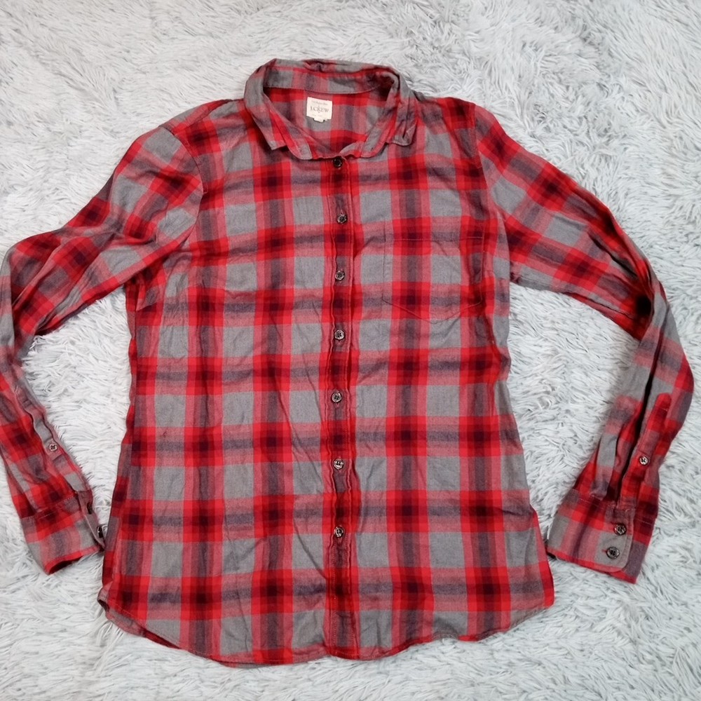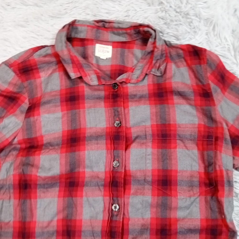 J. Crew Womens Shirt Red S Button Up Plaid Casual Pockets Cozy Comfort Very Good Condition. Gentle wear. Please review photos for measurements and condition. Item will be shipped within one business day. We ship items daily Monday-Friday. * Product color may vary slightly due to photographic lighting or your monitor settings.