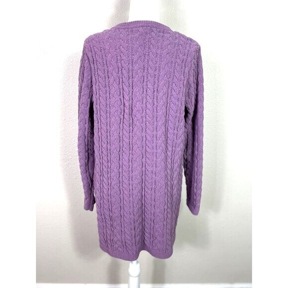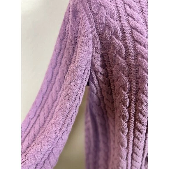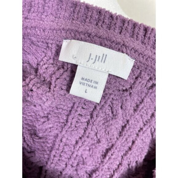 This J.Jill sweater showcases a classic cable knit pattern in a stunning purple hue, making it an elegant addition to any wardrobe. Crafted for comfort and style, it's suitable for cooler seasons and offers a refined look for both casual and business casual settings. • Long sleeves • Crew neckline • Made in Vietnam • Soft texture Approximate Measurements (Lying Flat): Pit to Pit: 23" Length: 31" Sleeve Length: 25" Shoulder to Shoulder: 15.5" Material: 100% Polyester Color: Sugar Plum Condition: Excellent pre owned condition. No flaws or signs of wear. BX1-1003