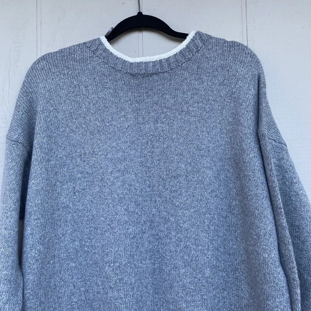 J. Jill Grey Pullover Snowfall Sweater Long Sleeve Crew Size Petite M Soft Cozy In excellent preowned condition. No flaws Measurements while laid flat Chest 24” Length 28” Sleeves 18”...