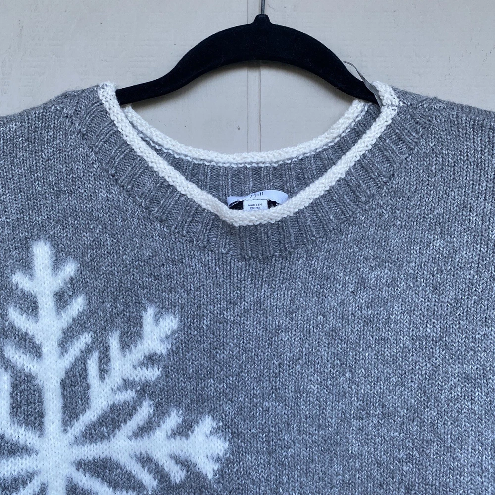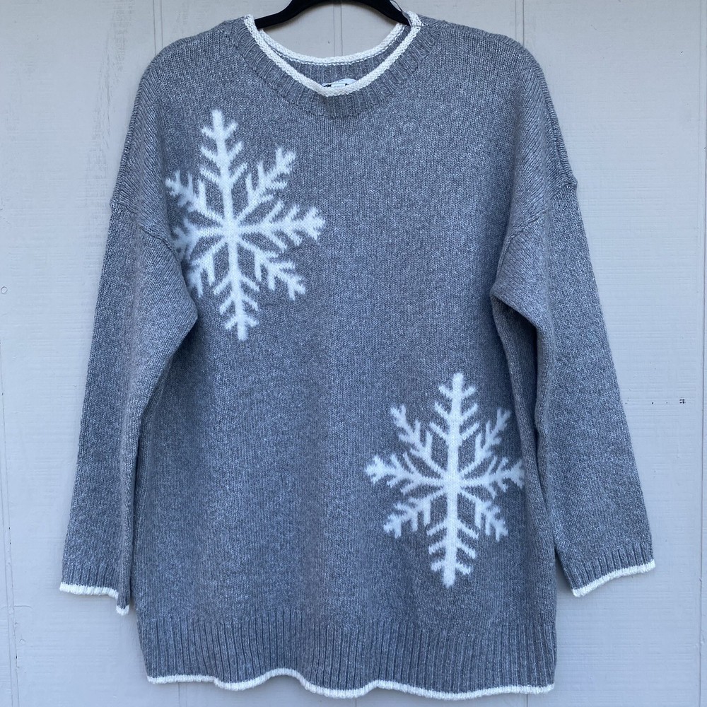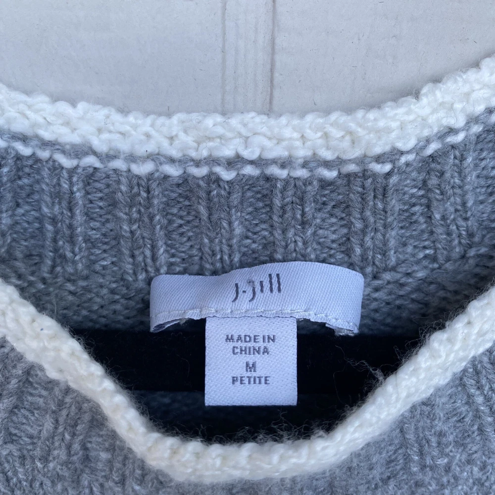 J. Jill Grey Pullover Snowfall Sweater Long Sleeve Crew Size Petite M Soft Cozy In excellent preowned condition. No flaws Measurements while laid flat Chest 24” Length 28” Sleeves 18”