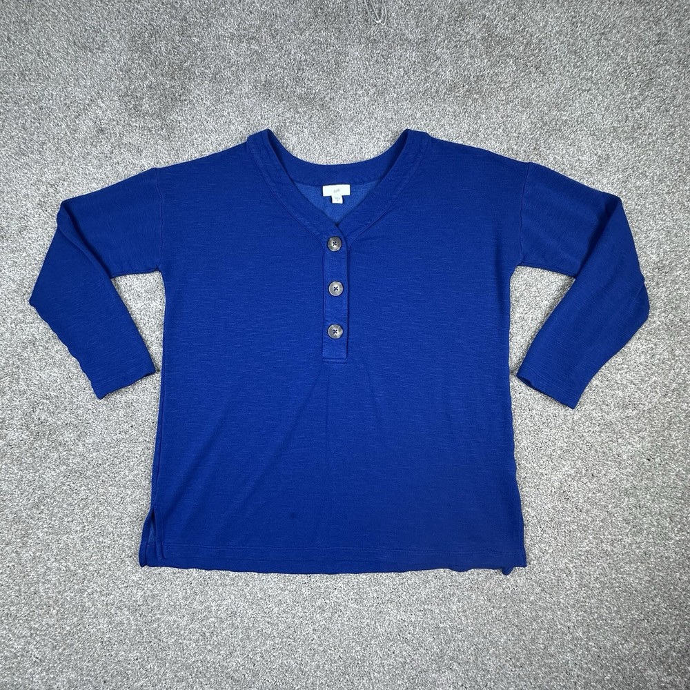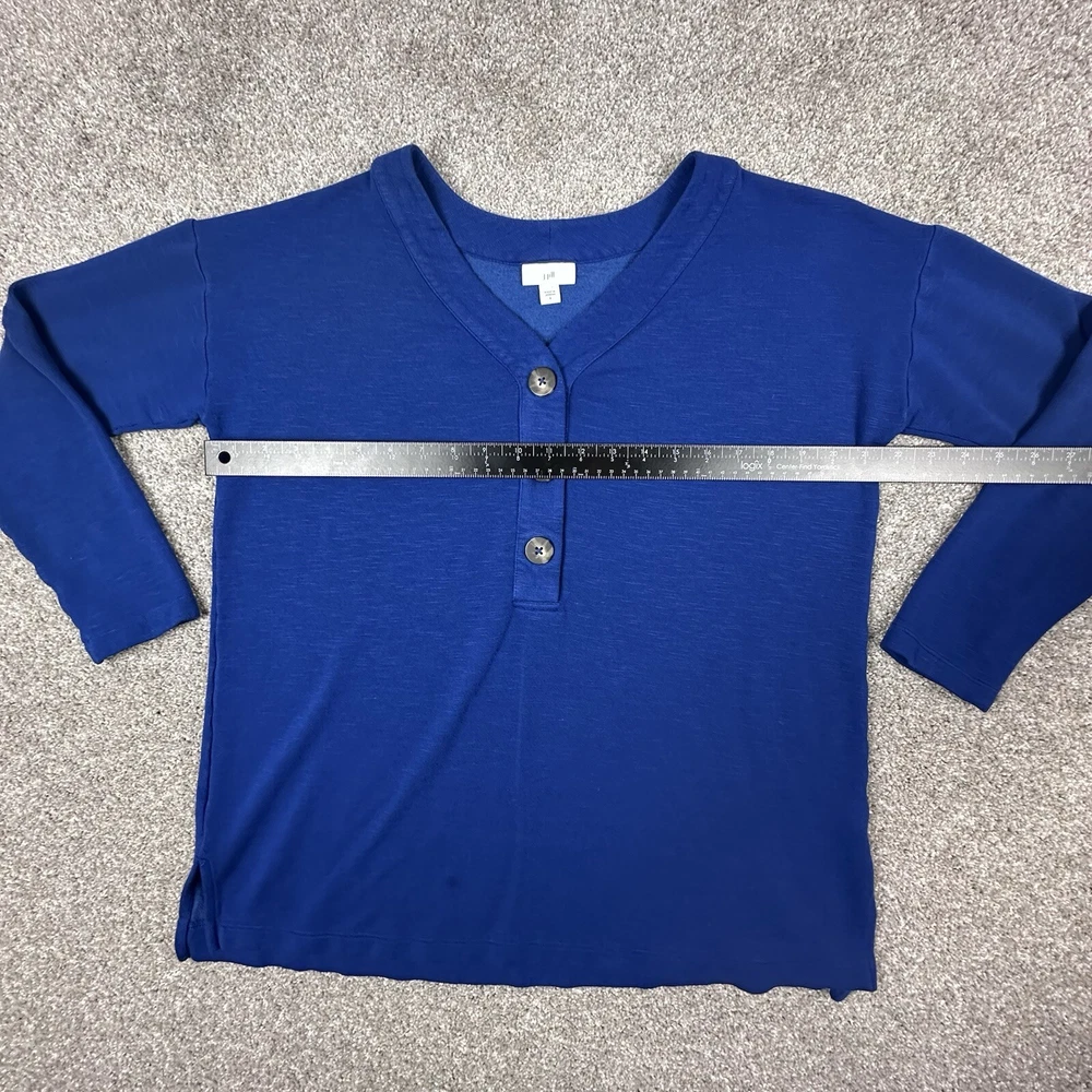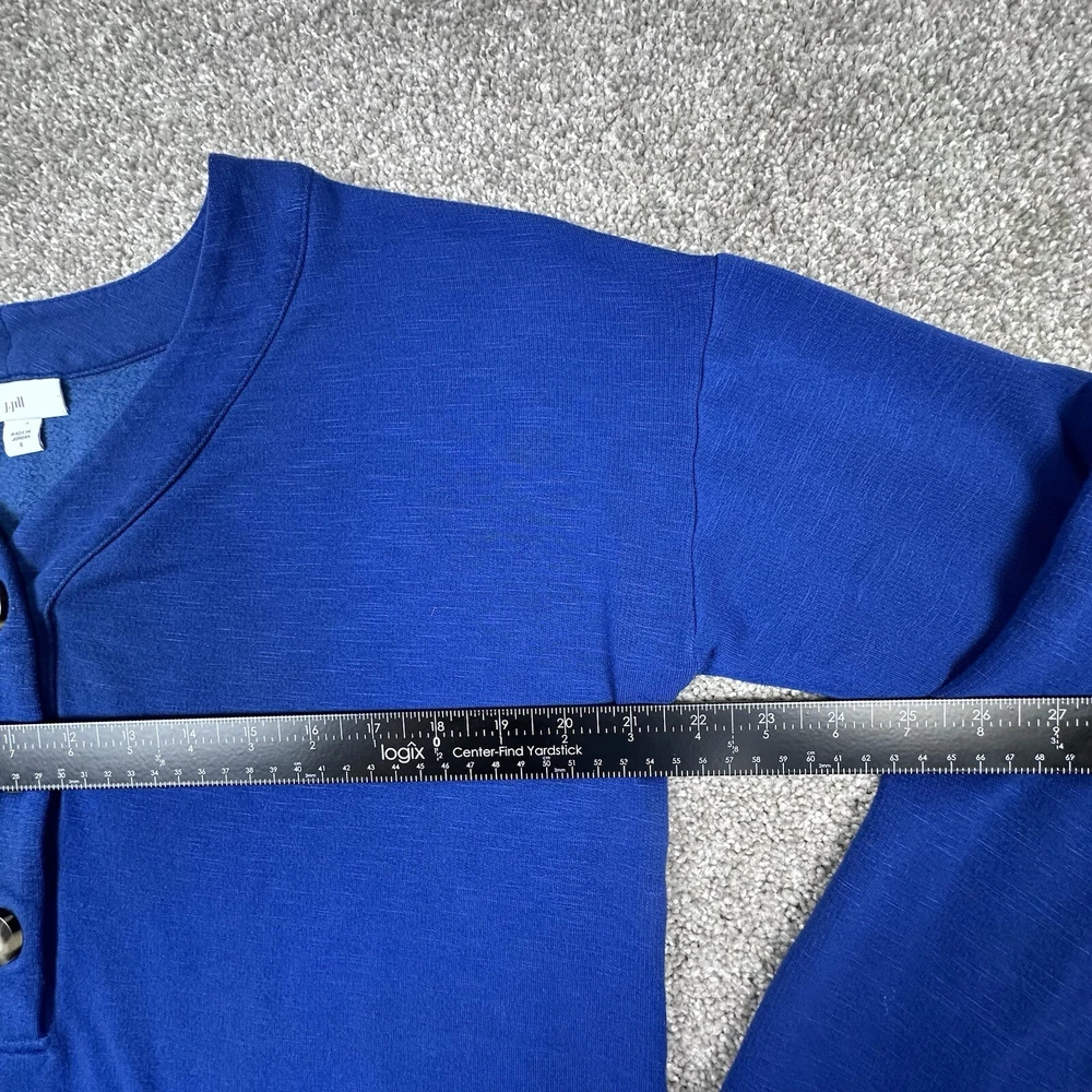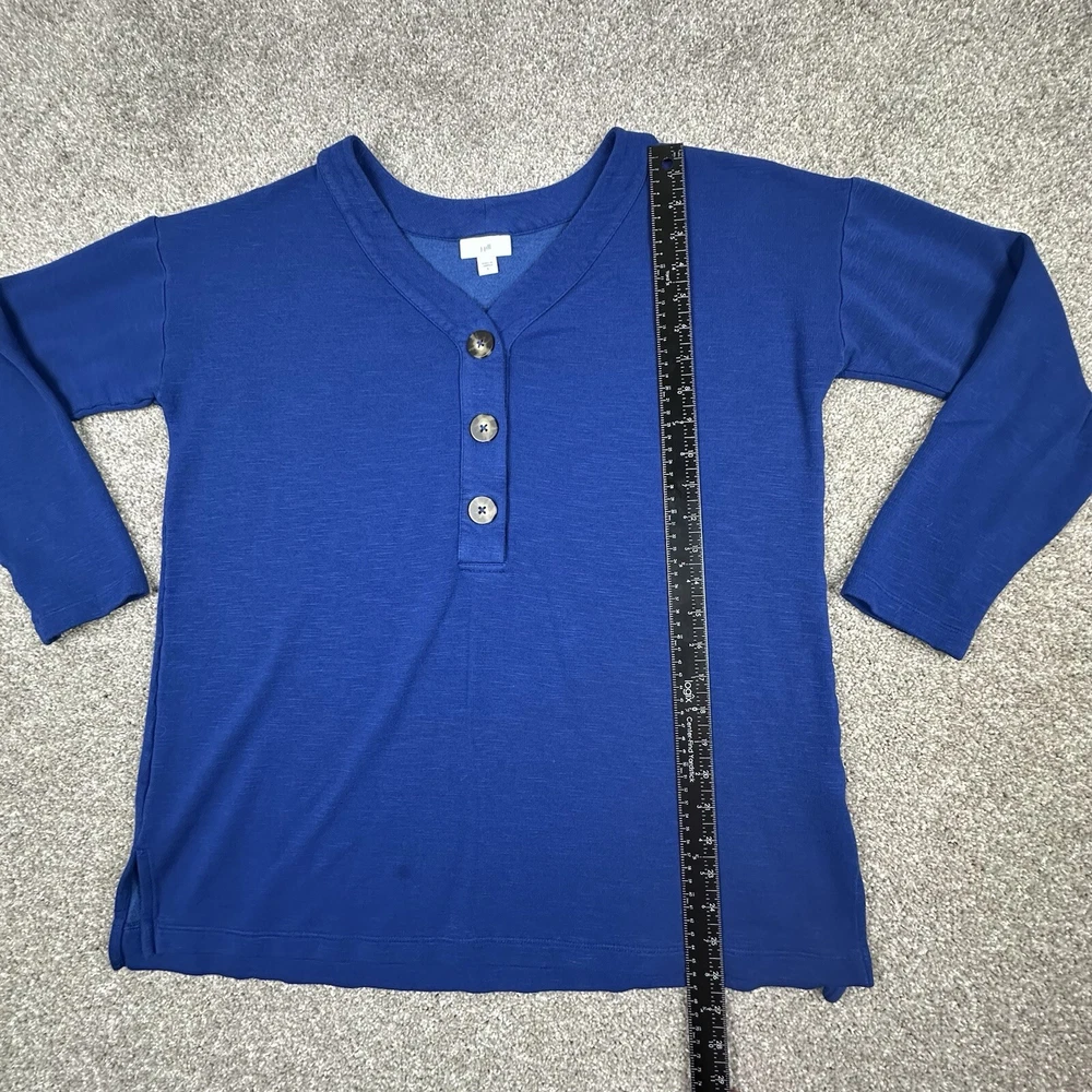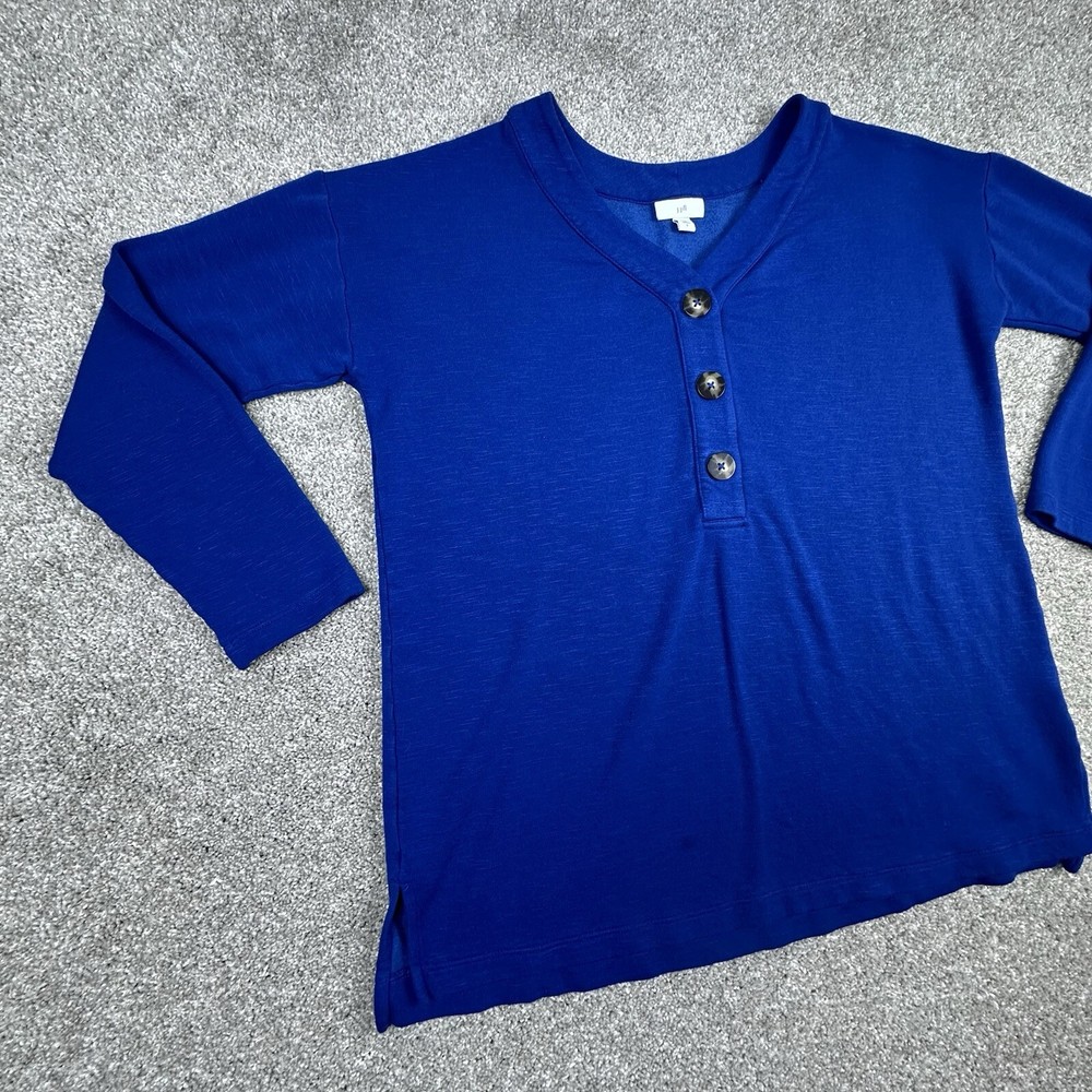 J Jill Shirt Womens Small Blue Button Henley Fleece Tunic Sweatshirt Cozy Top *ITEM is Preowned in Good Condition with spot on the front hem: Please review the label and measurements in the photos. Any flaws and types and location will always be stated in description and shown in photos. Measurements are in the photo and taken in inches with the item laid flat. Please review all photoed measurements and compare to your best fitting item to ensure an expected fit. Washed and ready to wear We ship daily so expect a quick delivery Please feel free to ask any questions you may have and check out our store for more great items just like this one. Happy Shopping!!