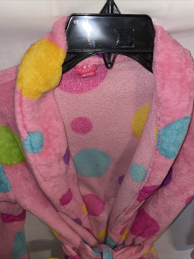This girls pink polka dot J.Khaki bath robe is in great shape! This item comes in a size M 7-8 Make an offer! If it doesn’t go…….message me what you’re thinking! Thanks for looking at our item!😊 S1 S2