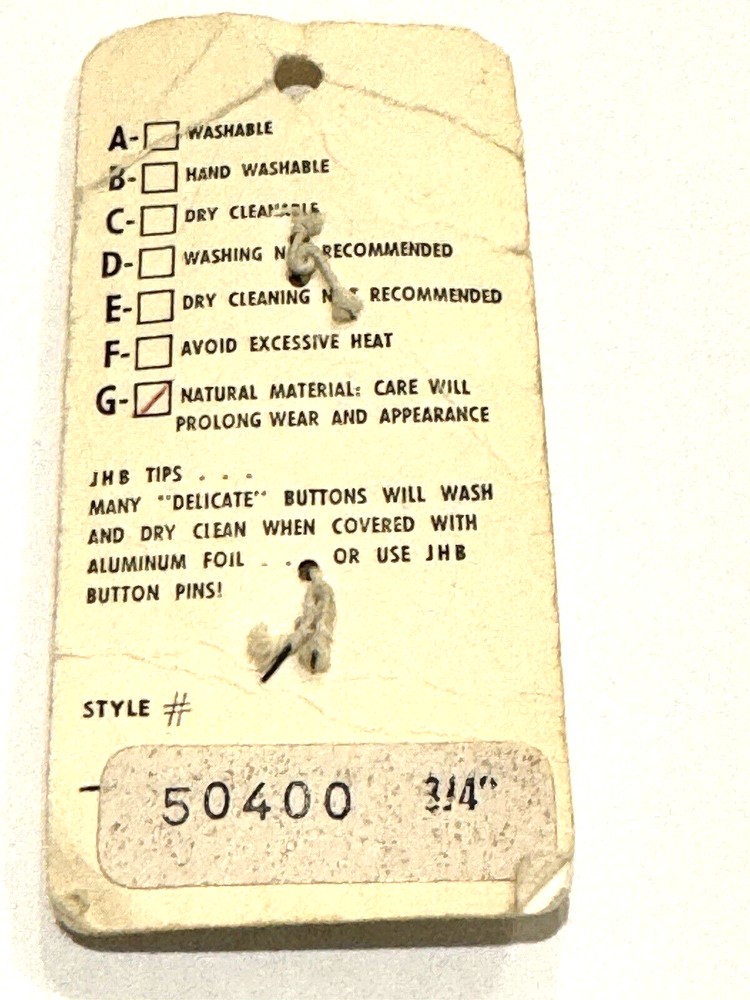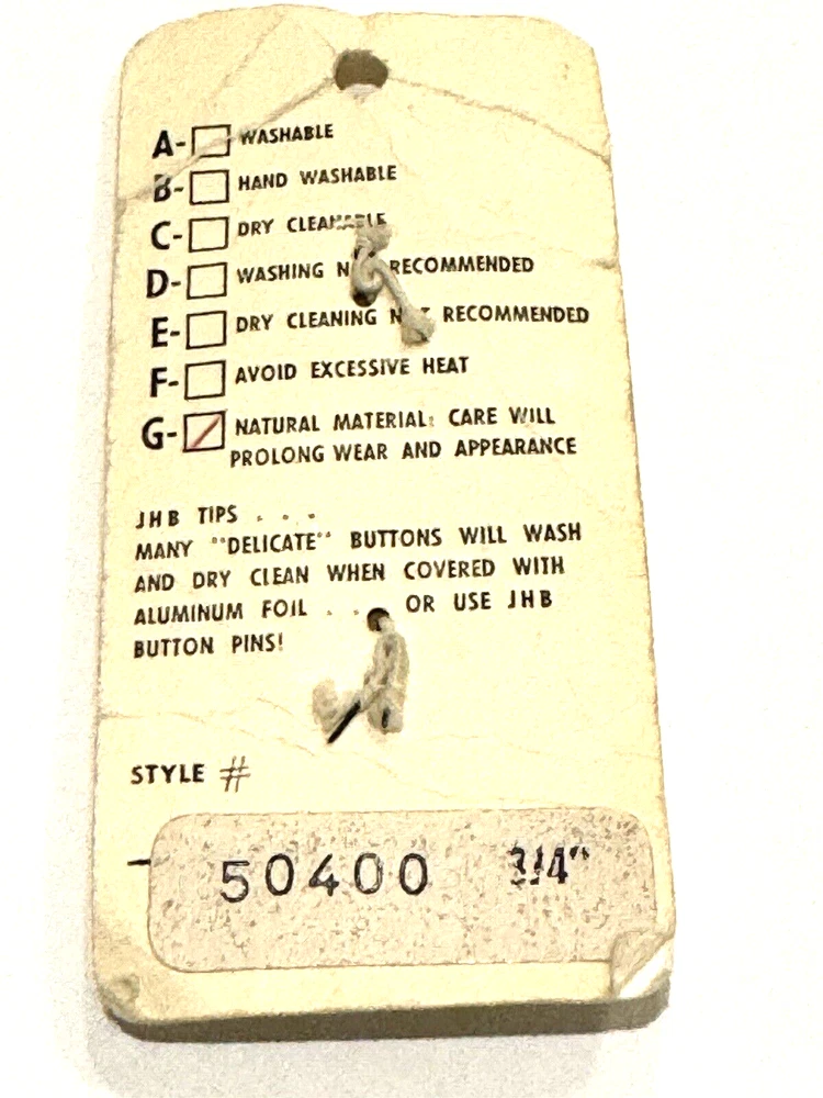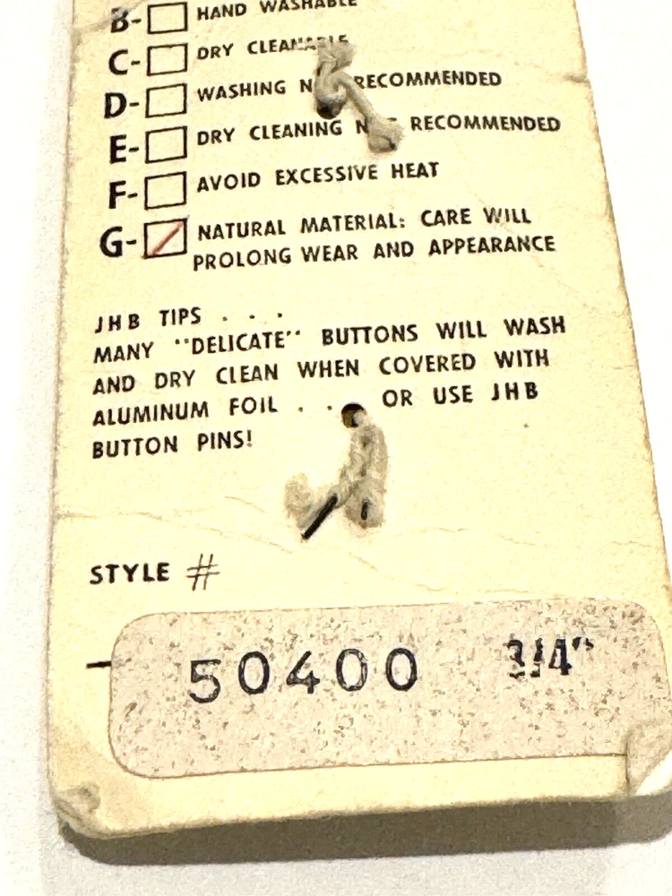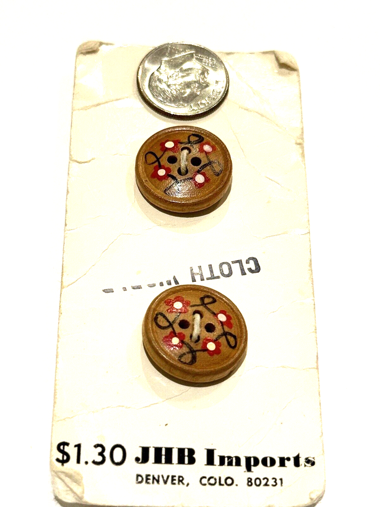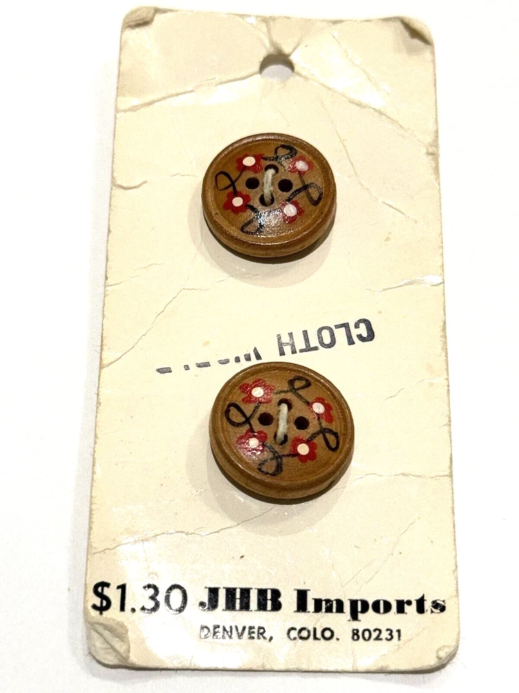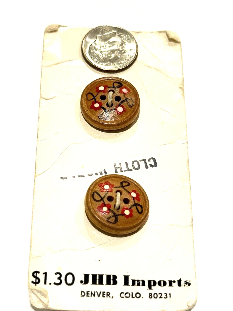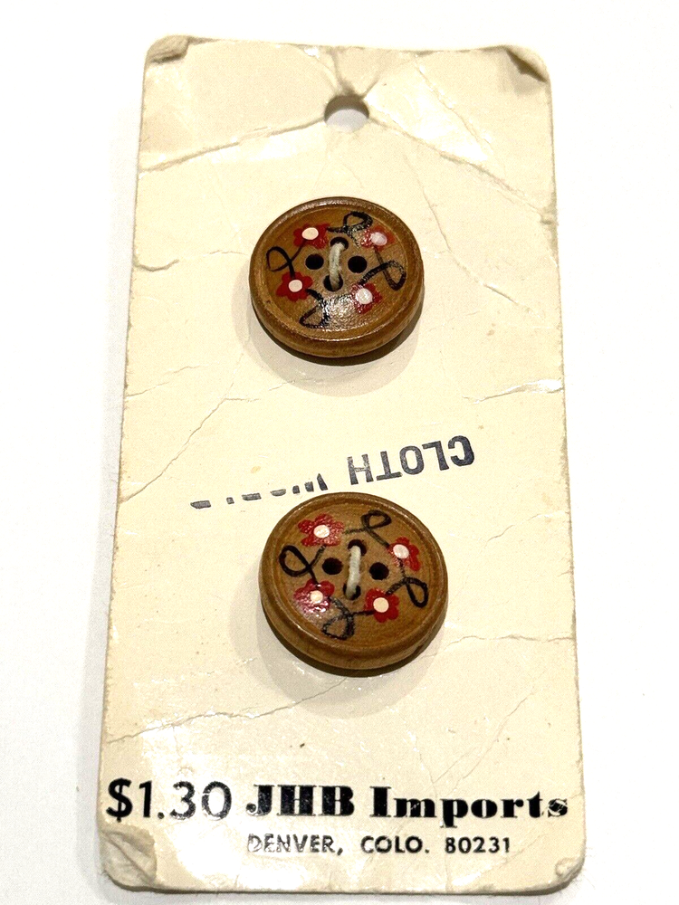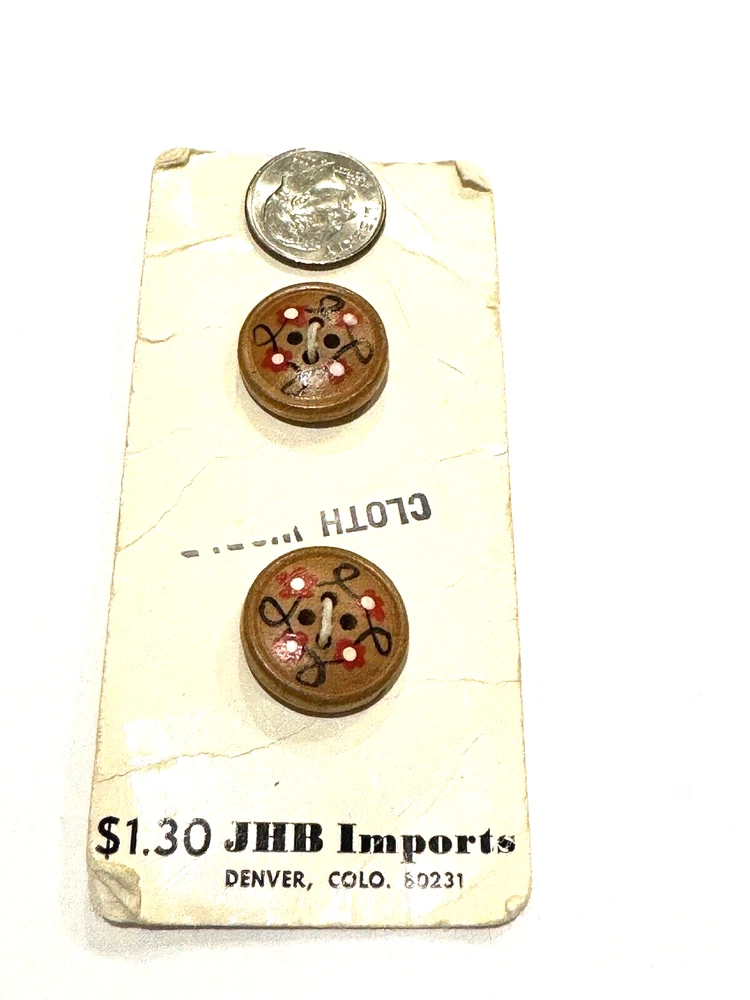 JHB Imports Buttons 50400 Vintage Wood Country Hobo Whimsical Round Sew 2 CT JHB Imports Buttons Style 50400 Vintage Wood Country / Hobo / Whimsical Design Round 4 Hole Button Design 2 Count 3/4" Dime is included in photos for scale (and is not included in the sale). Smoke free and pet free home. Please see pictures to assess condition and use the enlargement (zoom) feature for added detail. Thank you for your interest. Enjoy!