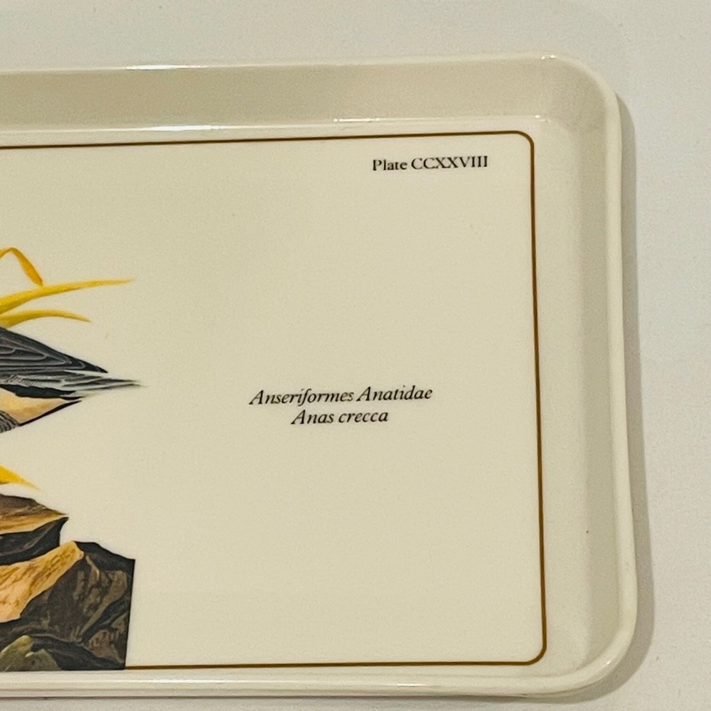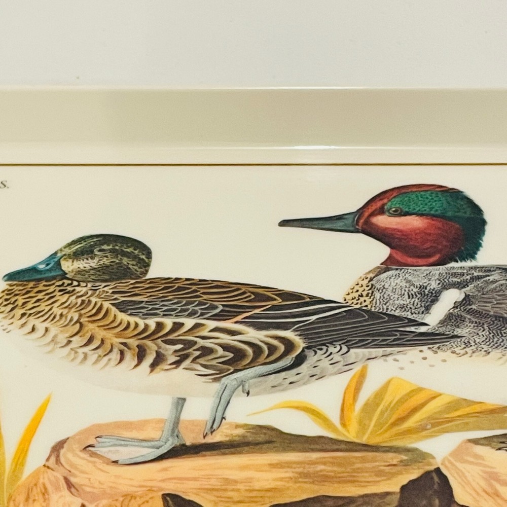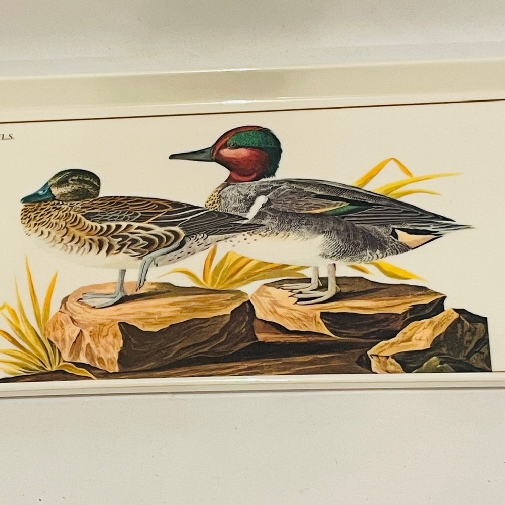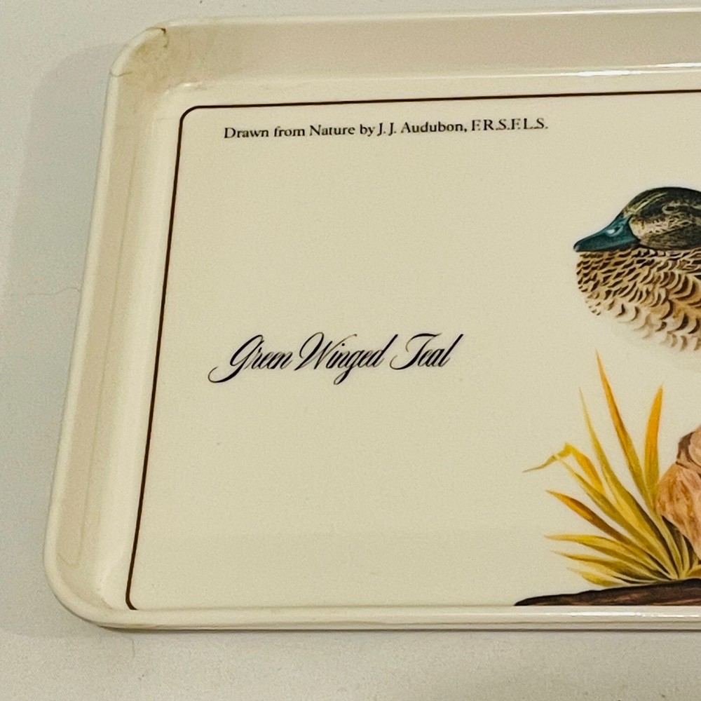 JJ Audubon Birds/Ducks Melamine Rectangle Decorative Serving Tray 15 X 5. Green winged Teal bids on a log....