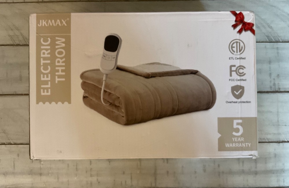 This is a Cozy brand heated electric blanket in beige, made of flannel material in a solid Beige color. It is a 50x60" rectangular blanket with adjustable heating. Suitable for teens, adults, and kids, it has a contemporary style and is ideal for the bedroom, living room or den area It can be machine washed and features an electric heating function.