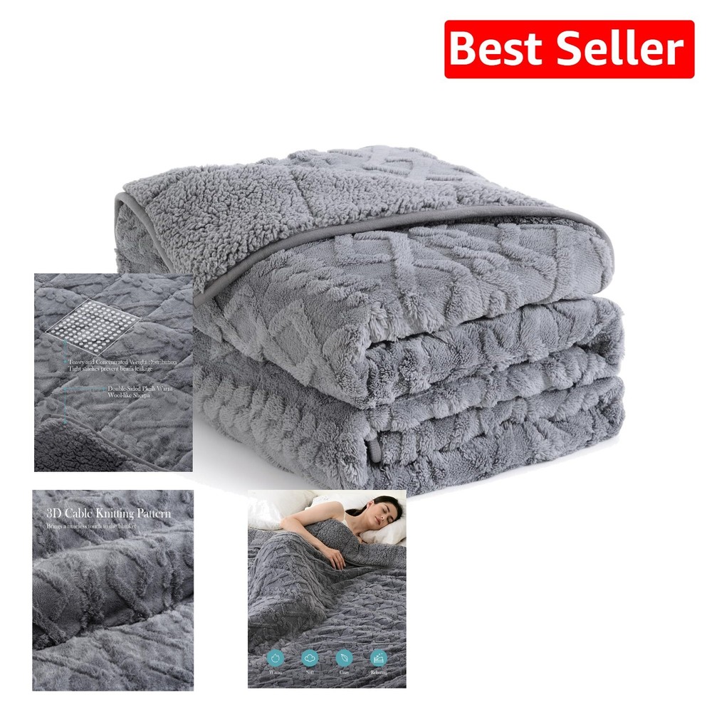 Jacquard Knitted Weighted Blanket 12 lbs - Cozy 48x72 inches for All Seasons ‹ › ‹ › ‹ › ‹ › ‹ › ‹ › ‹ › ‹ › ‹ › ‹ › ‹ › ‹ › Jacquard Knitted Weighted Blanket - 12 lbs Cozy 48x72 inches for All Seasons Features: 3D Jacquard Knitting Design: This blanket features a classic and lush cable knitting pattern, creating a stylish aesthetic and adding a fresh, welcoming ambiance to your home. Double Coziness with Dual-Side Sherpa: Crafted with super soft, double-sided sherpa fabric, this weighted throw envelops you in a cocoon of relaxation and invites a deep, restful sleep. Reliable 7-Layer Design: Expertly designed through innovative techniques, this Sherpa weighted blanket combines integrity and longevity while delivering an undeniable touch of luxury. Even Weight Distribution: Each grid is meticulously crafted to trap ceramic beads, preventing leaks and ensuring impeccable weight distribution, elevating your relaxation experience. Thoughtful Gift: An elegant decorative piece perfect for your home or office, making it an ideal gift for loved ones to promote comfort and tranquility. Benefits: Experience the calming effects and the sensation of being gently hugged for complete relaxation. Perfect for all seasons, ensuring warmth and comfort no matter the weather. Designed to improve sleep quality and overall happiness, encouraging restful nights and energized days. Available in a comfortable 48x72 inches size, suitable for a range of usages across your living space. Choosing the Right Weight: For optimal results, pick a weighted blanket that is around 10% of your body weight. For first-time users, consider starting with a lighter option to ease into the experience. Allow yourself 7 to 12 days to fully enjoy the myriad benefits of the blanket. Transform Your Sleep Experience: Discover the joy of restful slumber with our Jacquard Knitted Weighted Blanket. Crafted for elegance and efficacy, it not only beautifies your space but also cocoons you in serenity, so you can sleep better and live happier. Elevate your tranquility quotient – indulge in luxury and comfort that you truly deserve. Shipping Free & Fast Shipping - We offer free shipping to most of the USA with a normal delivery time of 3-7 days. However, due to the current situation, additional delivery time (up to 3 weeks) may be required for some items. Alternative Carriers - We may use alternative carriers (e.g. USPS, FedEx, UPS, etc.) to ensure your package arrives safely and on time. Due to the use of multiple carriers, we are unable to provide a tracking number automatically. Handling Time - Orders are processed and shipped within 1-2 business days of receiving cleared payment. Shipping Restrictions - Shipping to Alaska, Hawaii, Puerto Rico, Guam, and other US territories may incur shipping charges or delivery restrictions. Please contact us before ordering, or your order can be refunded/cancelled. State Restrictions - There may be restrictions based on your state of purchase. For example, certain items may not be shipped to California due to state regulations. Contact for Tracking Updates - If you require tracking updates or have any concerns about the delivery of your order, please feel free to contact us, and we will be happy to assist you. Return 30-Day Hassle-Free Returns - We want you to be completely satisfied with your purchase. If you are not, you can return the item within 30 days of receiving it for a full refund or exchange. Easy Return Process - To start a return, simply contact us and we will provide you with a prepaid return shipping label and detailed instructions. Restocking Fee - There are no restocking fees for returns. However, the buyer is responsible for return shipping costs if the return is not due to a seller's error. Refund Processing Time - Refunds will be processed within 5 business days of receiving the returned item in its condition. Payment We accept all major credit cards, PayPal, and Apple Pay for your convenience. Your payment information is secure and encrypted to ensure a safe and seamless transaction. Please complete your payment within 3 days of purchase to avoid any delays in shipping. Feedback Your feedback is extremely important to us. We strive to provide the best products and customer service possible. If you are satisfied with your purchase, please take a moment to leave us a positive review. If you have any concerns or issues with your order, please contact us before leaving negative feedback. We are committed to resolving any problems and ensuring your satisfaction. Contact Us If you have any questions or concerns, please feel free to out to our customer support team. You can contact us through the eBay messaging system. We are available Monday to Friday, 9:00 am to 5:00 pm EST, and we will do our best to respond to your inquiry within 24 hours. Buy it now and enjoy a pleasant shopping experience! Unit Quantity: 12 Material: Jacquard,Sherpa Features: 3D,Weighted,Durable Theme: Seasonal Care Instructions: Machine Wash Department: Adults Room: Bedroom Size: Twin Type: Weighted Blanket Color: Grey Pattern: Solid Style: Modern Shape: Rectangular Insulation: Warm Closure Type: No Closure GSM (Grams per Square Meter): Over 800 Thread Count: 200 or Less Unit Type: lb