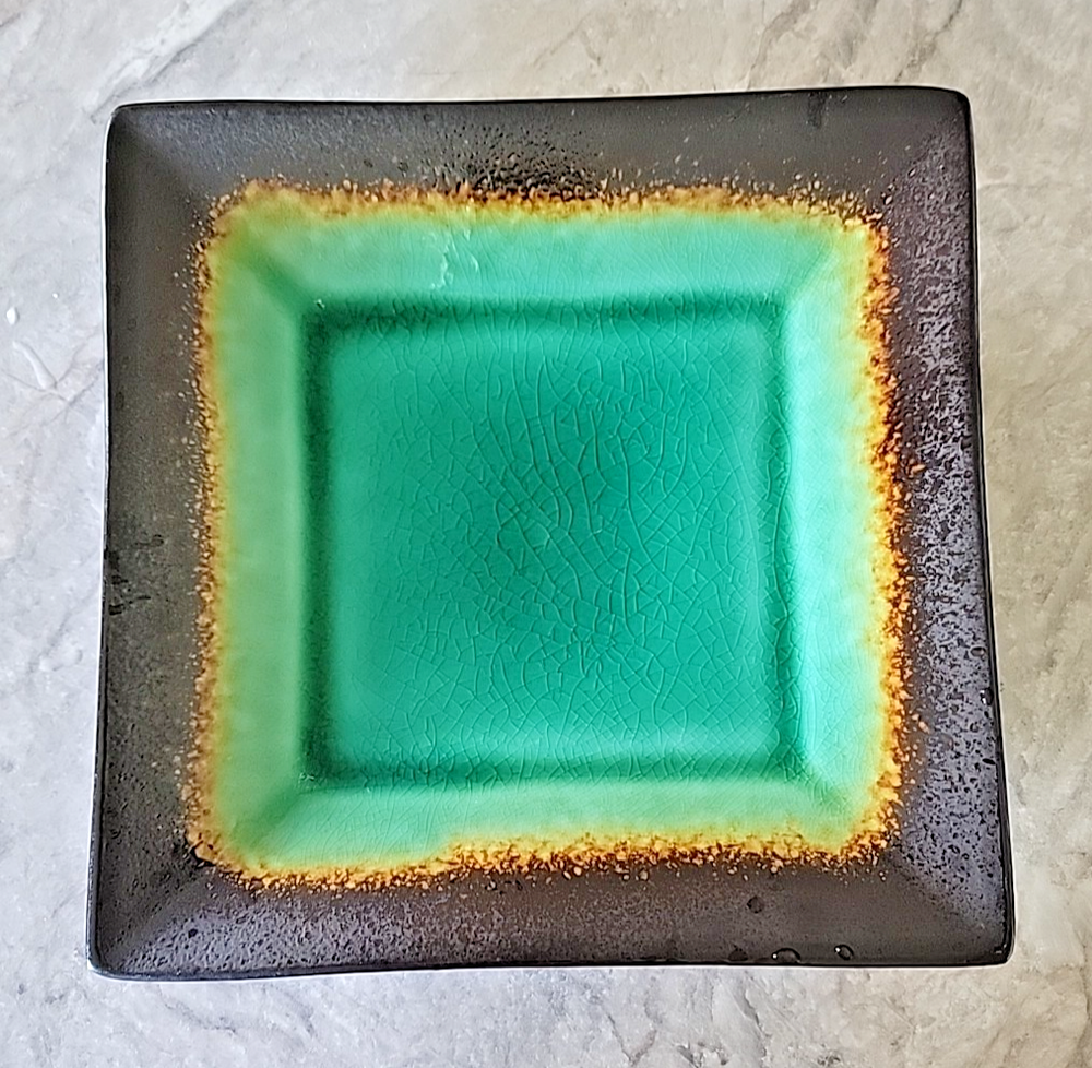 Jade Crackle Square Salad Dessert Plate by Better Homes and Gardens Width: 8 1/8 in Microwave Safe, Dishwasher Safe Discontinued Piece No Chips, or Cracks. Minimal Utensil Markings. Please message me with any questions