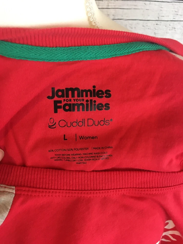 *Jammies For Your Families Cuddl Duds Christmas Panamas Set *Women’s Size Large *Fleece bottoms *Measurements *Shirt *Underarm to Underarm 21 inches *Sleeves 28 inches *Length 27 inches *Bottoms *Waist 19 inches *Length 38 inches *Inseam 30 inches *Thank you for looking and be sure to check out my store!