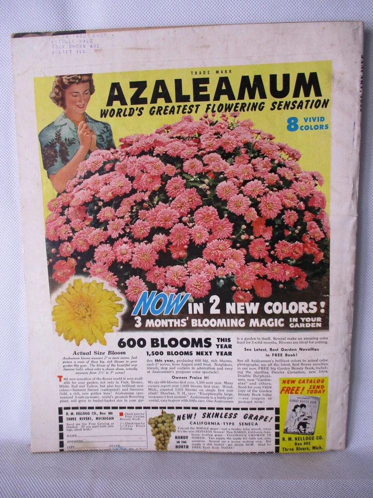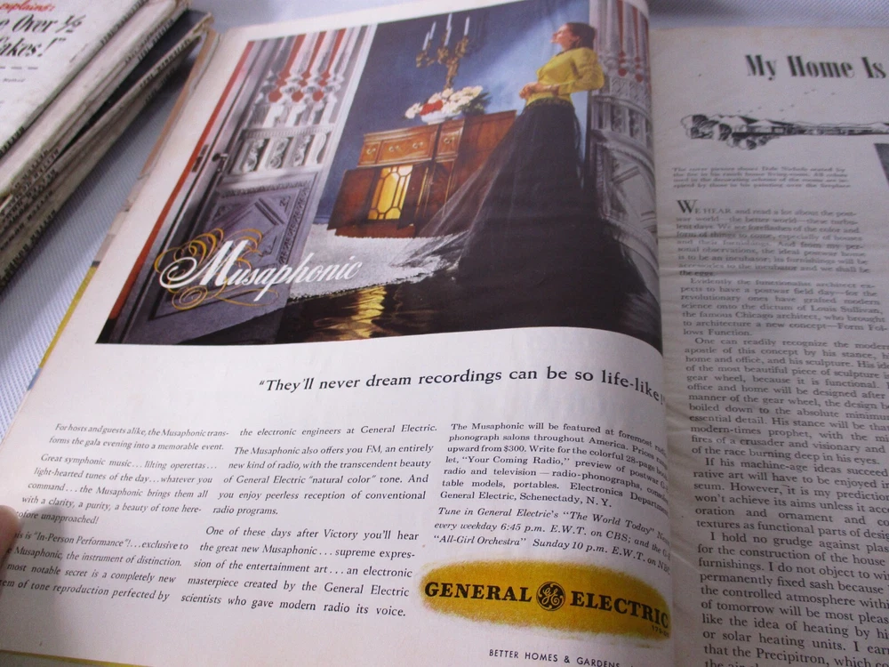 January 1945 WW2 Better Homes & Gardens Magazine Azaleamum, Cannon Towels, Swift's Beef, Durkee's, Chesterfields Vintage Ads, solid vintage issue, has sticker on cover with notes and writing on cover, some wear from reading and storage, dings on the spine and edge dings, spine is solid and pages are tight, good looking magazine for its age. (50751 Hi! And thanks for looking. Hope I can send something good your way. I pack items with care and work my best to get items to you in the best of condition. I have been collecting for over 30 years and do my best to describe everything as well as possible. If I missed something feel free to ask.