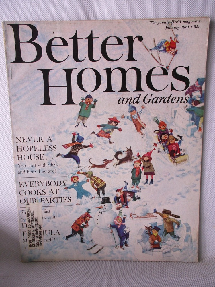 January 1961 Better Homes & Gardens Magazine Del Monte, Puss In Boots Cat Food, Florida Vacations, Pard Dog Food, Oak Floors, Nestle's Cocoa Vintage Ads, solid vintage issue, has some wear from reading and storage, dings on the spine and edge dings, spine is solid and pages are tight, good looking magazine for its age. (50767 Hi! And thanks for looking. Hope I can send something good your way. I pack items with care and work my best to get items to you in the best of condition. I have been collecting for over 30 years and do my best to describe everything as well as possible. If I missed something feel free to ask.
