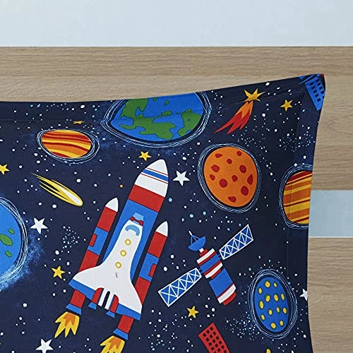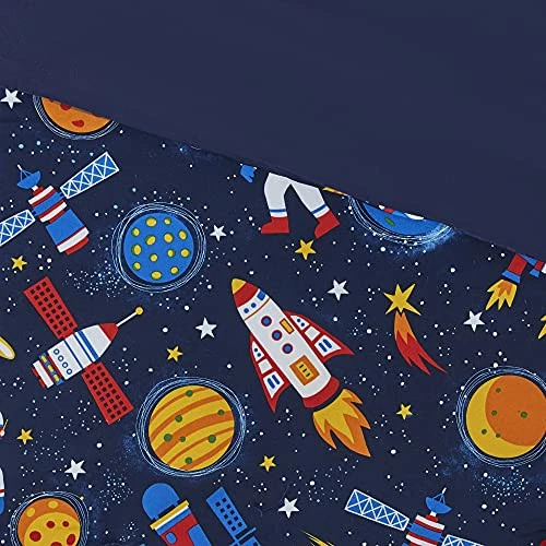 This comforter set is a dream come true for space lovers! The soft, cozy fabric feels amazing, and the vibrant rocket ship and astronaut print makes bedtime feel like an adventure. The included decorative pillow adds a nice finishing touch. Perfect for any season, it keeps you warm without overheating. My little one absolutely loves it—sleep has never been this fun! Highly recommend for kids (or adults!) who adore all things space.