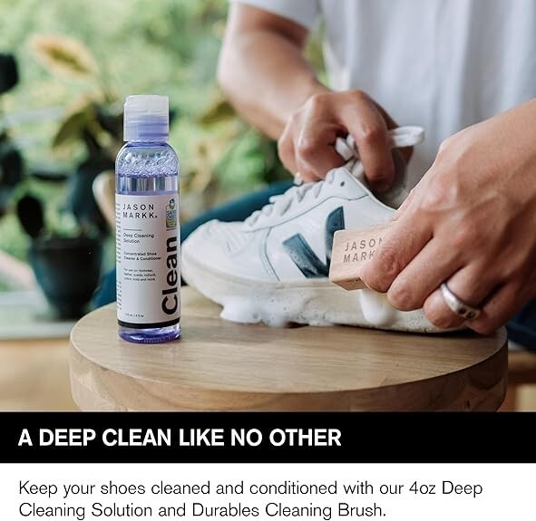 ESSENTIAL KIT - Our signature kit includes a 4 oz. bottle of our Deep Cleaning Solution— enough to clean up to 100 pairs of shoes— and a Durables Cleaning Brush, the perfect duo to safely deliver exceptional cleaning and conditioning for your shoes and more. CONCENTRATED CLEANING & CONDITIONING POWER - Our high quality, concentrated solution is safe to use on most colors and materials, lifting and cleaning deeply embedded soils from leather, suede, nubuck, canvas, cotton, knits and more —all without harsh chemicals or abrasives. STIFF BRISTLE BRUSH - The included Durables Cleaning Brush features stiff bristles that are great for tough, durable materials such as standard full grain leather, rubber, plastic and more. Ideal for areas like midsoles on a variety of footwear from sneakers to dress shoes. Our soft bristled Delicates Cleaning Brush (sold separately) is recommended for cleaning delicate materials such as premium leather, suede, nubuck, cotton, knits and more. SHOE CARE YOU CAN TRUST - Our Deep Cleaning Solution is Safer Choice certified and 100% Certified Biobased, making it safe for your sneakers, wearables, family, and the environment. TAKE CARE A STEP FARTHER - Regular use of our Essential Kit maintains the cleanliness and condition of your footwear and wearables, extending their lifespan and reducing waste.