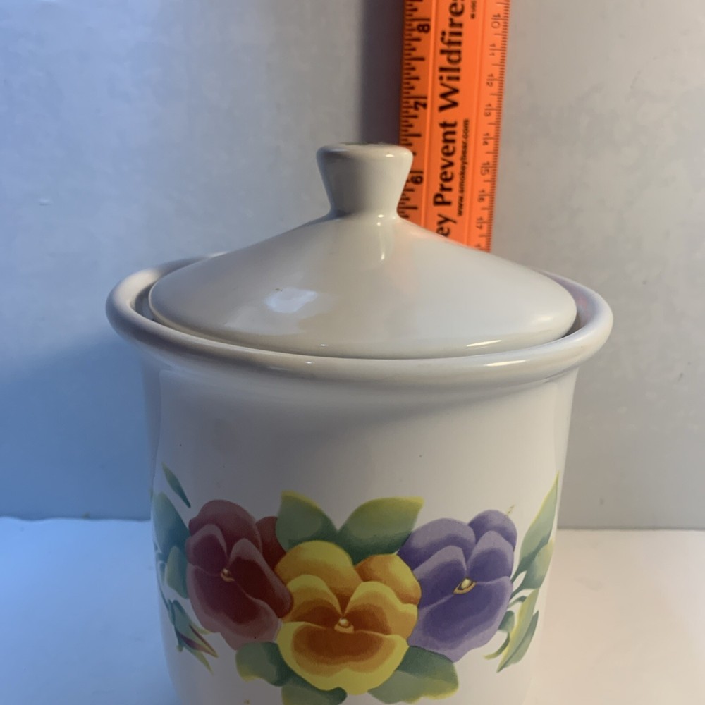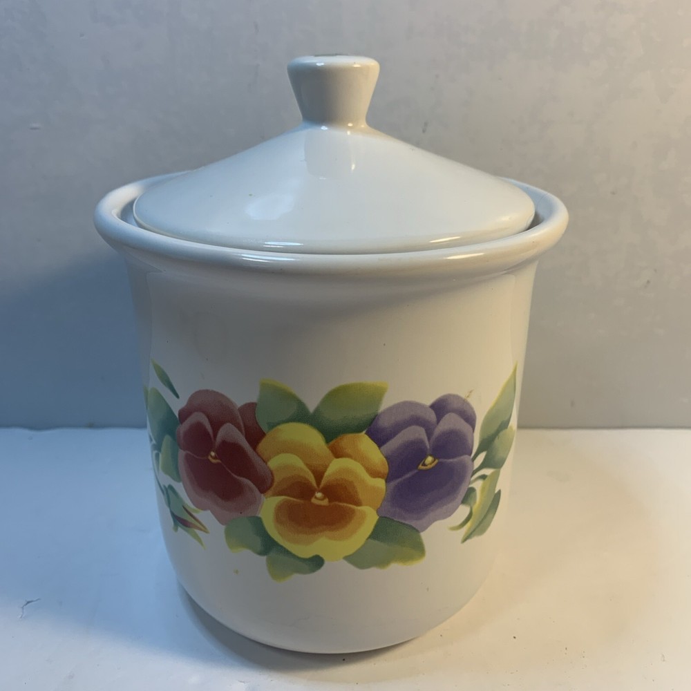 UP FOR SALE: Jay Corning Corelle: SUMMER BLUSH Pansies: 6.5" Canister w/ Lid and Seal Will securely ship via the USPS from my smoke free home. I offer both Ground and Priority options. Please reach ou...