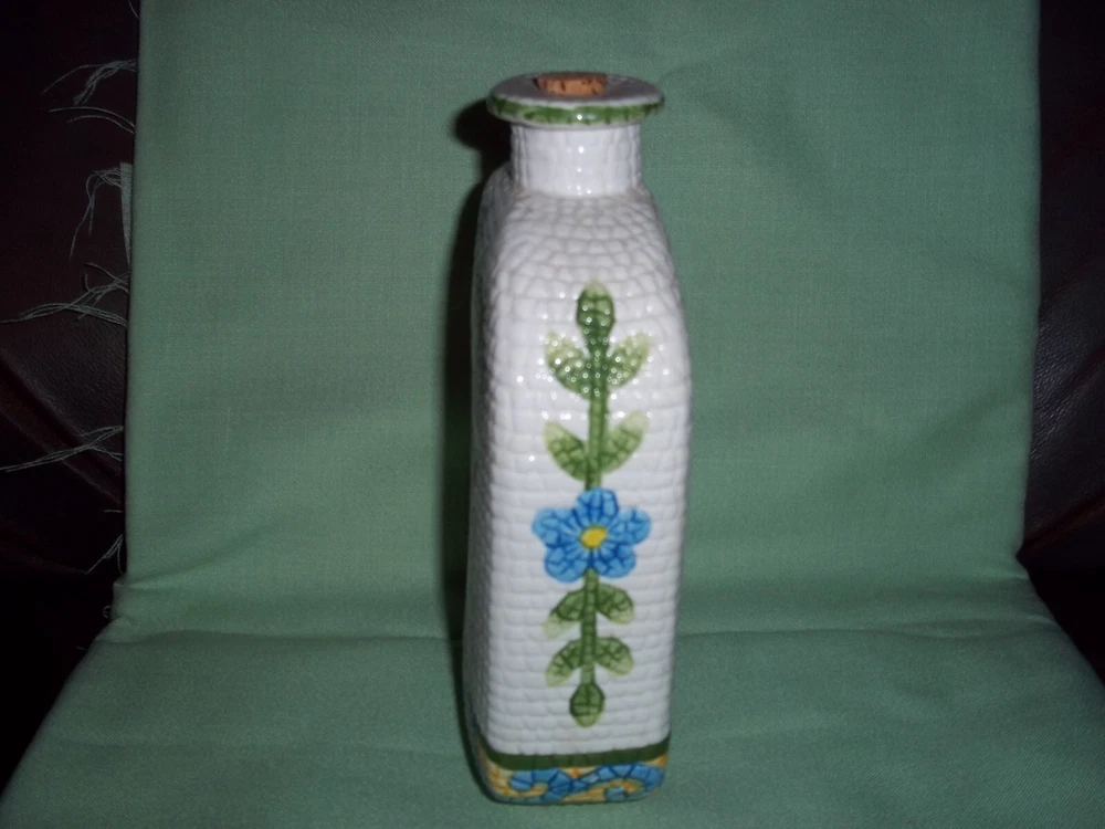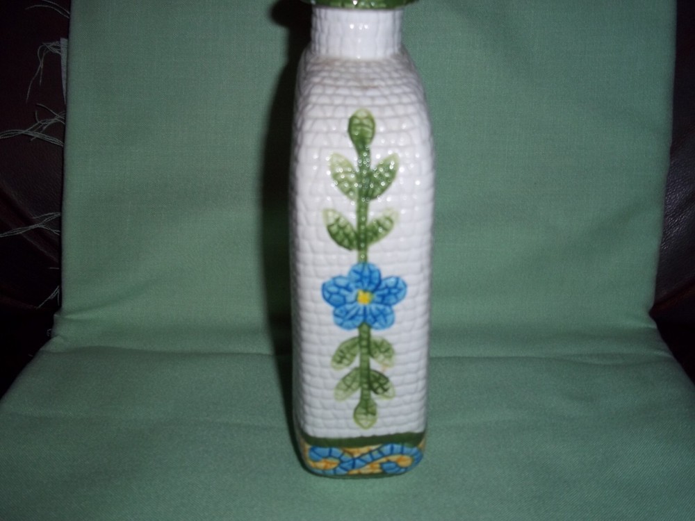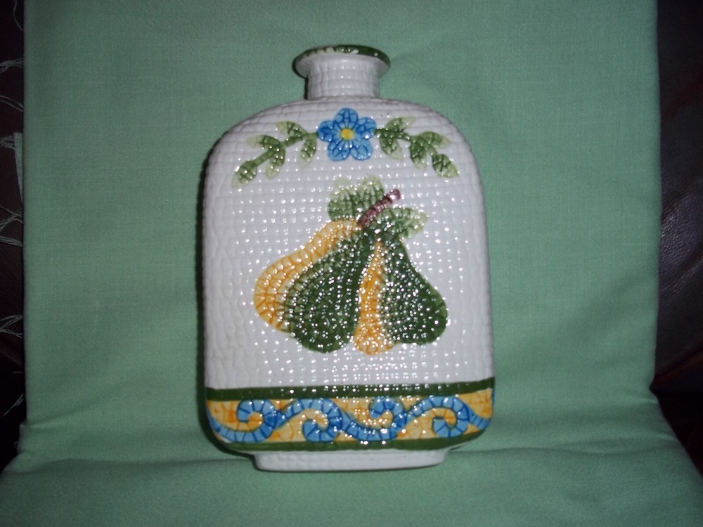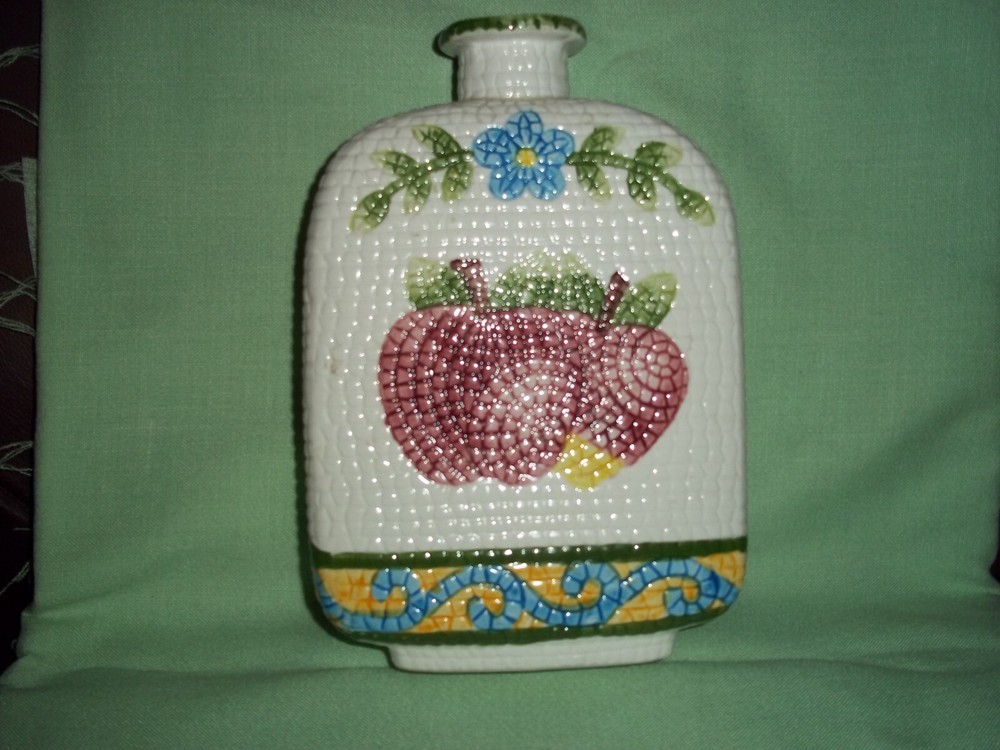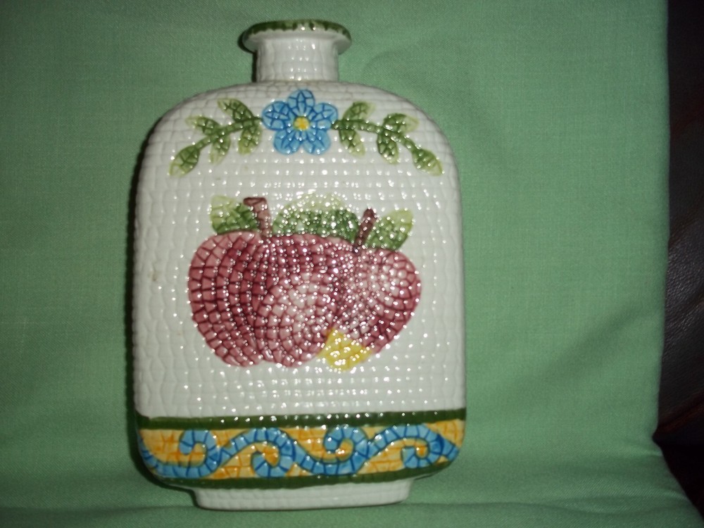 Very unusual wine bottle made in China. Jay Imports brings this bottle wit sa surface very similar to running your hand over a cob of corn. Painted fruit and flowers in very good condition, great for ...