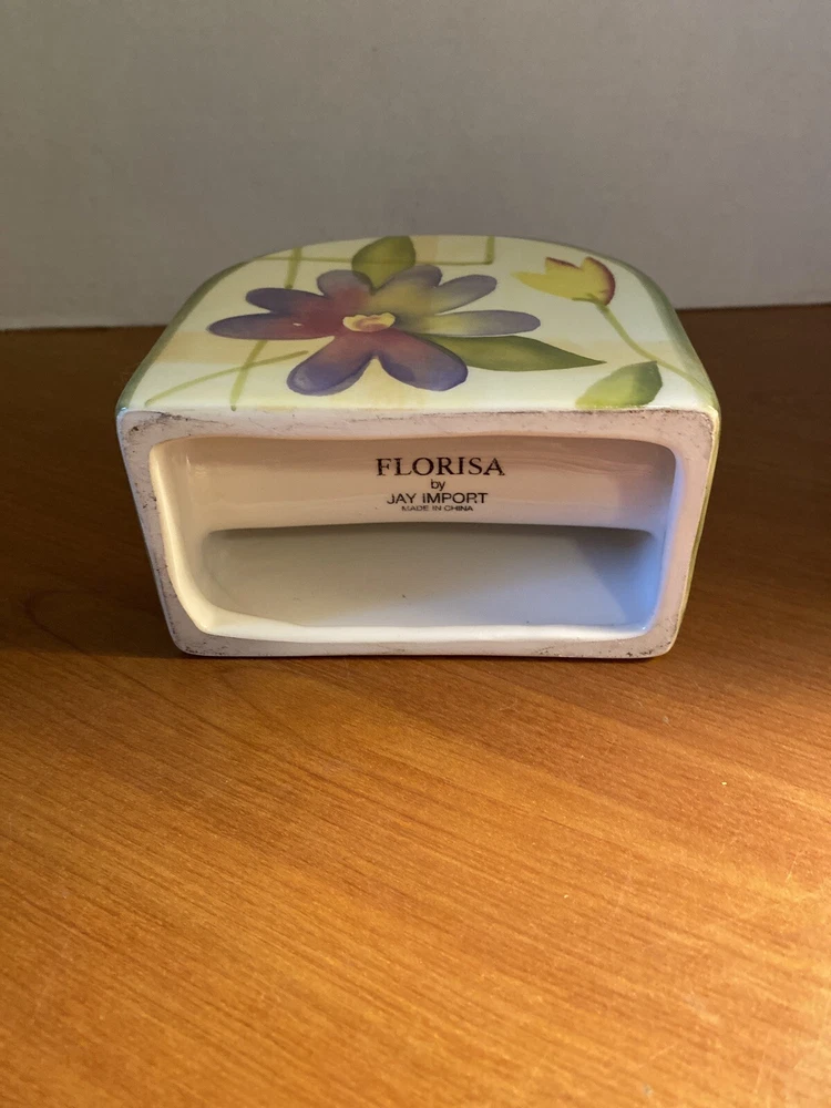 JAY IMPORT FLORISA " FLOWERS IN BLOOM " NAPKIN HOLDER USED CONDITION AS A SMALL CHIP ON SIDE E...