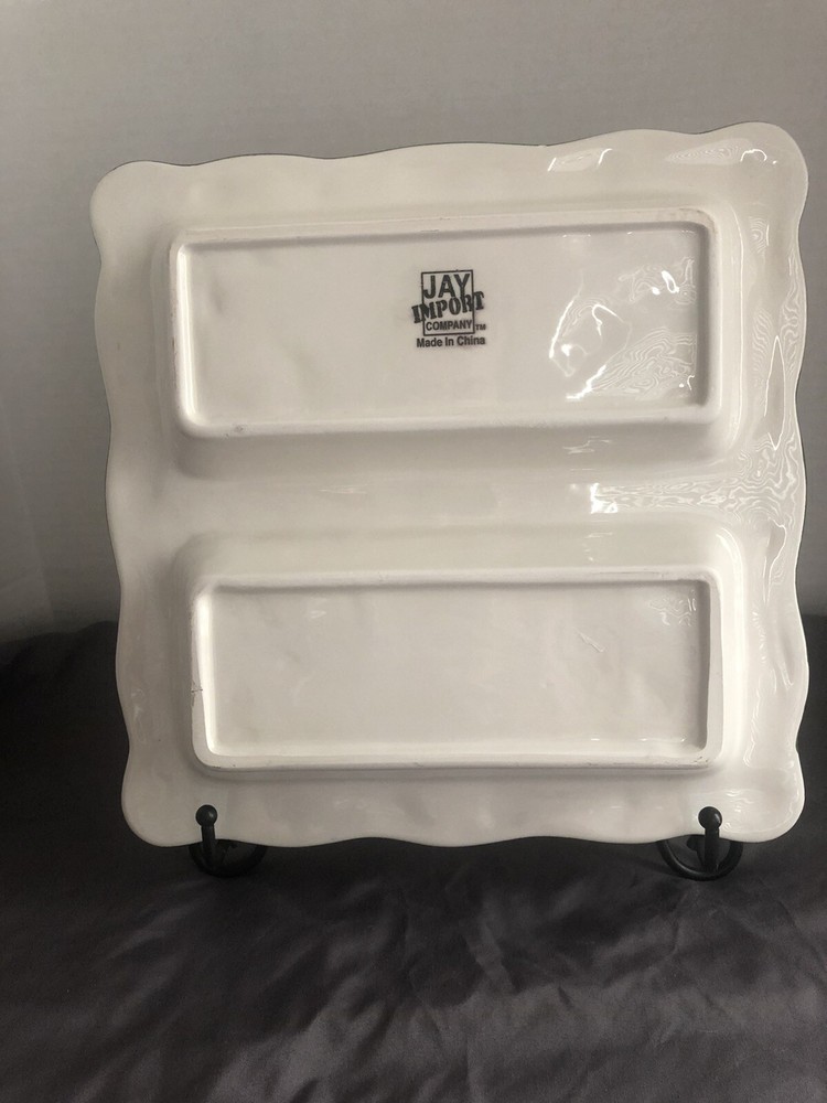 Jay Imports Ceramic 2 Section Serving Tray Rooster Design. **Here for sale is a lovely country or farm style ceramic tray-the features includes roosters abs a floral trim in good condition. Please see...