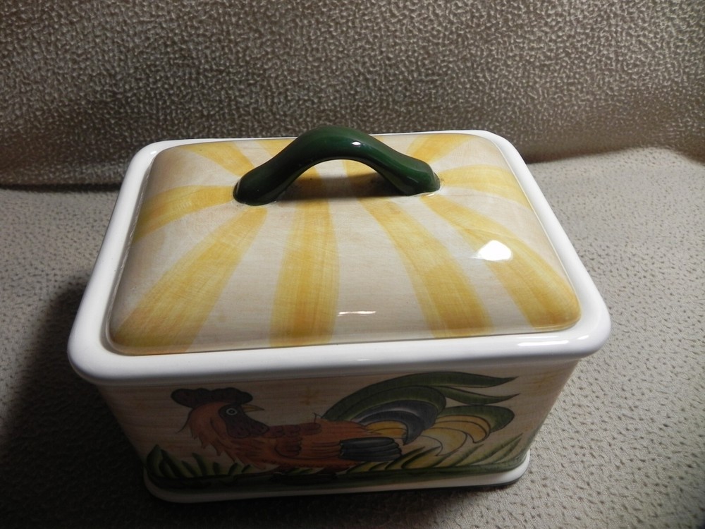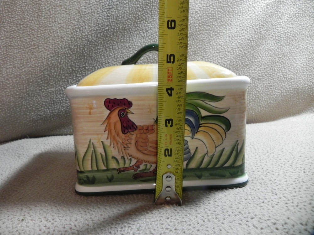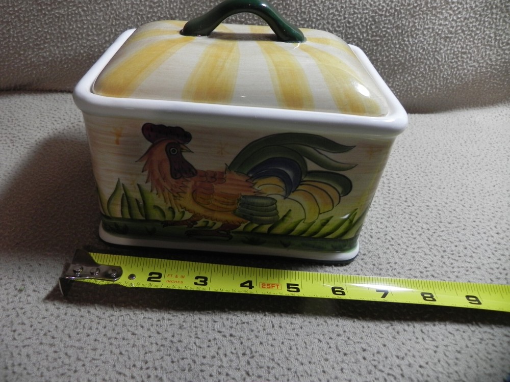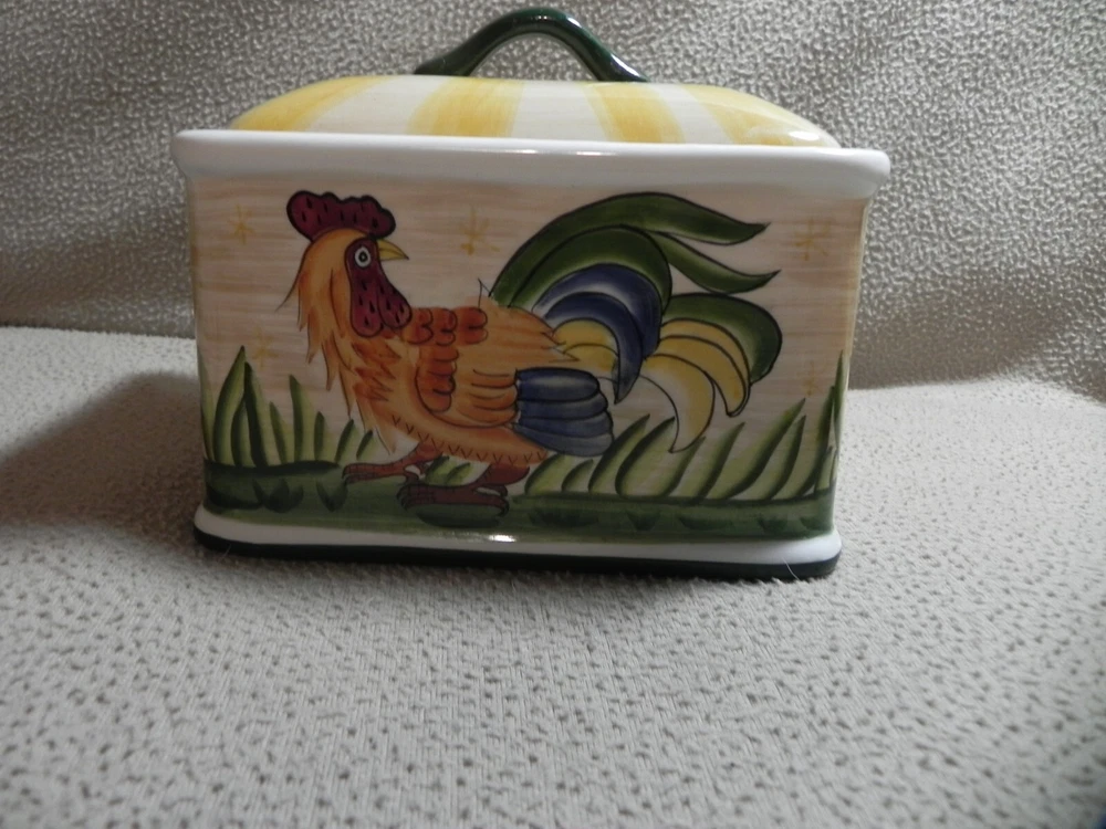 Here we have a Jay Imports Ceramic Canister/Recipe Box w/ Rooster Design. I describe items to the best of my ability. Please look closely at pictures as they are part of the description. Payment is expected within 3 days of auction end. US shipping only. I do not end auctions early. Item to ship UPS or USPS. I only ship to your verified eBay address. Item is sold as is. I do not accept returns.