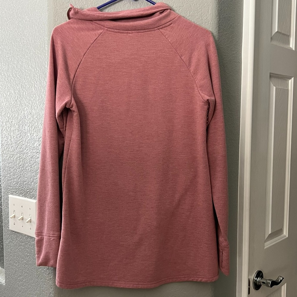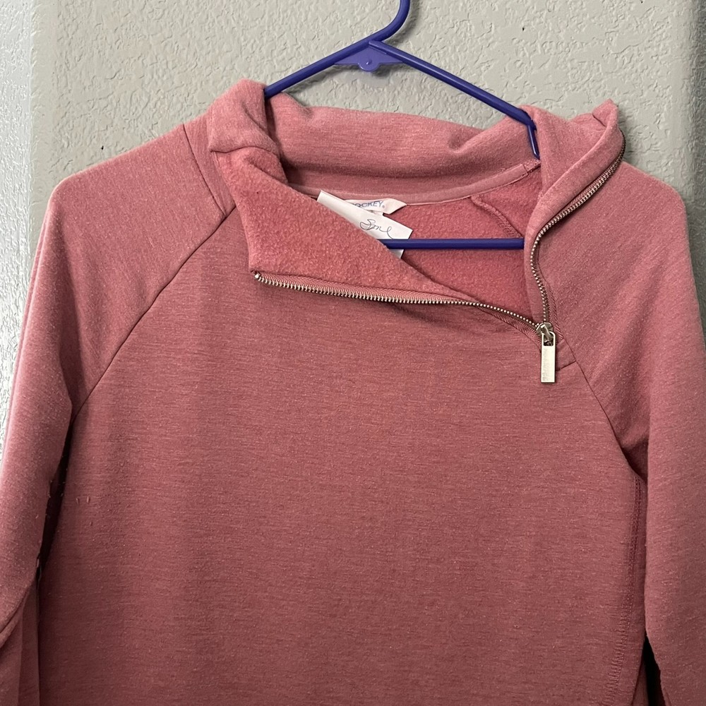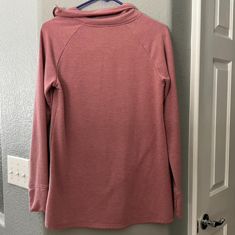 Experience ultimate comfort and style with this Jockey pullover in a lovely dusty rose hue, featuring a unique asymmetrical wrap detail at the hem for a modern touch. Crafted from a soft, cozy-feeling knit and complete with thumbholes, it's perfect for lounging, light workouts, or casual everyday wear. Fashion Style: Athleisure, Loungewear, Casual Comfort, Cozy Knit, Asymmetrical Hem, Active-Inspired Measurements: Length: 26 inches (Seller: Due to the asymmetrical hem, please clarify if this is to the longest point, shortest point, or an average measurement, e.g., "26 inches at longest point" or "approx. 26 inches center back.") P2P (Pit to Pit): 18 inches