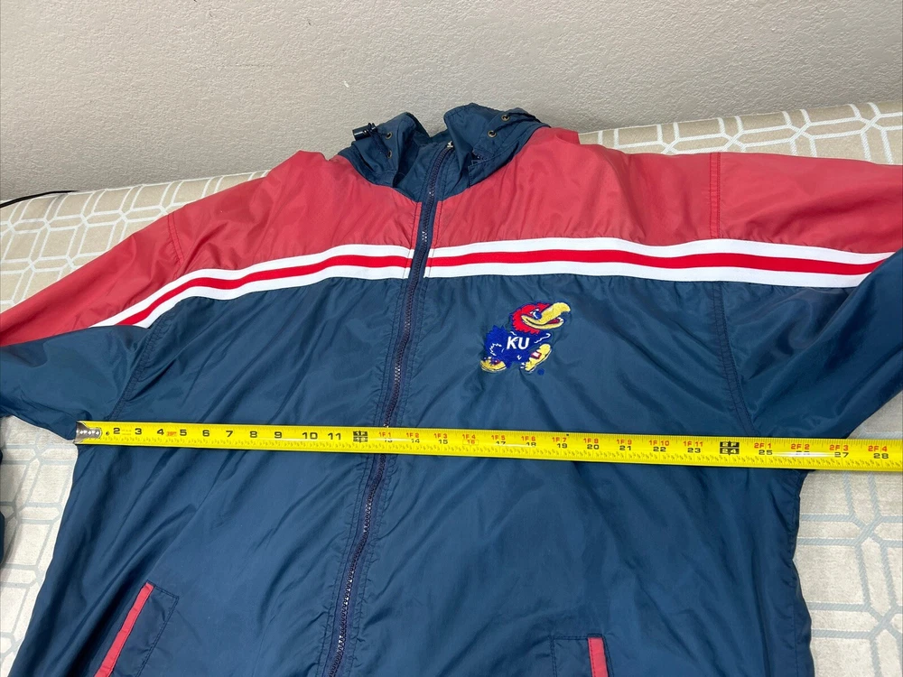 WELCOME TO “HEAVENLY BLESSINGS 7” WE ARE VERY PROUD FOR CONSISTENTLY DELIVER; “”OUTSTANDING CUSTOMER SERVICE”” You’re looking at a Great Joe College Vintage Full Zip Wind Light Jacket Kansas Jayhawks Men’s Size US XL Pre-owned but in really GREAT Shape and Tons of life left... NO MAYOR FLAWS… There are Normal Signs of WEARING… (Discoloring and Spots around) PLEASE SEE PICTURES FOR REASSURANCE AND MEASUREMENTS................. !!WE OFFER FREE RETURNS!! THANK YOU FOR SHOPPING "HEAVENLY BLESSINGS 7" I have many other items for sale in my store, and I am adding more daily. you can follow my store to see what's new. Thanks...... All of our items ARE GUARANTEED 100% AUTHENTIC or your money back!!!. PHOTOS:the The pictures are a key part of my listings. Be sure to look at ALL THE PICTURES (usually 6-8). You may have to zoom or scroll. What you see in the pictures is the exact item that you will receive. SHIPPING: In stock and ready to ship. The item will be shipped via USPS Priority Mail. We require up to 1 business day for handling, but will do our best to package and ship the same day. Combine Shipping: (on multiple items and you will SAVE TONS, NOT paying full price. WE DO KEEP RECORDS OF ITEMS SERIAL NUMBERS TO HELP AVOID FRAUD!! I strive for ALL 5 star ratings & positive feedback by providing my customers with satisfaction guaranteed service... GOD BLESS!!