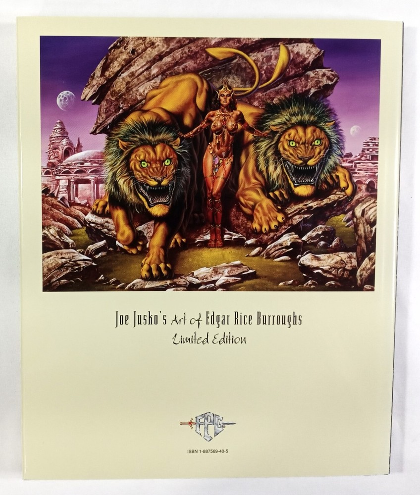 Joe Jusko's Art of Edgar Rice Burroughs Limited Edition Hardcover w/ Dust Jacket Signed by Joe Jusko. Limited to 500. Numbered 177/500. By Joe Jusko Limited to only 500 copies, each on autographed by the artist and numbered, this hardcover edition of Joe Jusko's Art of Edgar Rice Burroughs is a must have for all serious fans of Joe Jusko's art and Edgar Rice Burroughs' characters! Famed Sci-Fi fantasy painter Joe Jusko inspired by the writings of Edgar Rice Burroughs: Tarzan, Mars, Venus, The Inner Worlds, and other stories. The book contains the heroic art of E. R. Burroughs' Tarzan, Mars, Venus, and miscellaneous stories. Joe Jusko's exquisitely detailed work is hypnotic and the crisp reproductions are first rate, with vibrant colors on very high quality paper. Each picture needs to be studied for long periods of time to fully appreciate the incredible talent that went into creating it. Science Fiction & Fantasy art collectors will not be disappointed. Limited Hardcover w/ Dust Jacket is bagged and will be carefully / securely packaged then shipped via USPS Priority Mail to ensure that it arrives to you perfectly and quickly. Limited to 500 First Printing Publisher: FPG Publication Date: July 1996 Format: FC, 128 pages, HC, 9.25" x 12.25" ISBN-10: 1887569405 ISBN-13: 9781887569408 Collectible Entertainment note: Limited Hardcover w/ Dust Jacket is in Very Fine + condition. Beautiful! Please See Scans!! A must have for any serious Joe Jusko and/or Edgar Rice Burroughs enthusiast / collector. A very fun & entertaining read. Very Highly Recommended. Please read return policy. Please check out all my other Record or Robert E. Howard or Shark Horror or Bernie Wrightson or Punisher or Tron or Parody or King Kong or Superman or Batman or X-Files or Ralph Snart or 3-D or TMNT or X-Men or Sherlock Holmes or Mummy or Frankenstein or Dracula or Sergio Aragonés or Groo or Tarzan or Conan or Magazines or Horror or Werewolf or Zombie or Frank Frazetta or GI Joe or War or Judge Dredd or Infinity or Marvel Secret Wars or Crisis on Infinite Earths or Spawn or Venom or Carnage or Toxin or Kolchak or Mad Max or Kolchak or Star Trek or Starship Troopers or Science Fiction or James Bond or Adventure Time or Movie Adaptations or Spider-Man or Flash Gordon or Richard Corben or Indiana Jones or Star Wars or Jurassic Park or Dinosaurs Attack or Mars Attacks or Planet of the Apes or Godzilla or Thing or Robocop or Aliens or Predator or Terminator listings by visiting my store and typing Record or Robert E. Howard or Shark Horror or Bernie Wrightson or Punisher or Tron or Parody or King Kong or Superman or Batman or X-Files or Ralph Snart or 3-D or TMNT or X-Men or Sherlock Holmes or Mummy or Frankenstein or Dracula or Sergio Aragonés or Groo or Conan or Tarzan or Magazine or Horror or Werewolf or Zombie or Frank Frazetta or GI Joe or War or Judge Dredd or Infinity or Marvel Secret Wars or Crisis on Infinite Earths or Spawn or Venom or Carnage or Toxin or Mad Max or Kolchak or Star Trek or Starship Troopers or Science Fiction or James Bond or Adventure Time or Movie or Spider-Man or Flash Gordon or Richard Corben or Indiana Jones or Star Wars or Jurassic Park or Dinosaurs Attack or Mars Attacks or Planet of the Apes or Godzilla or Thing or Robocop or Aliens or Predator or Terminator in the store search engine.