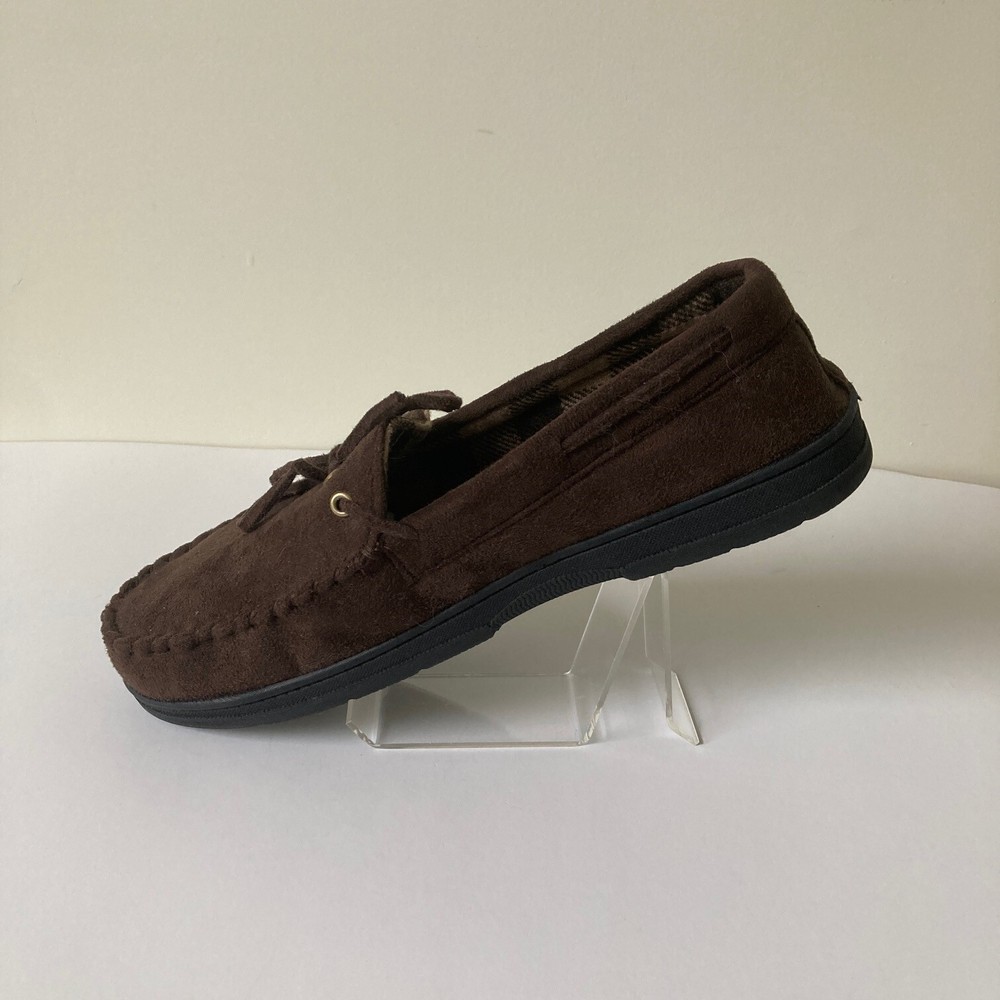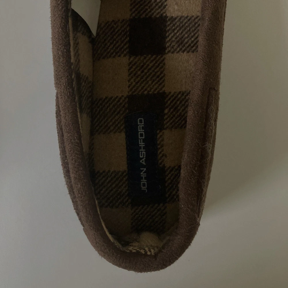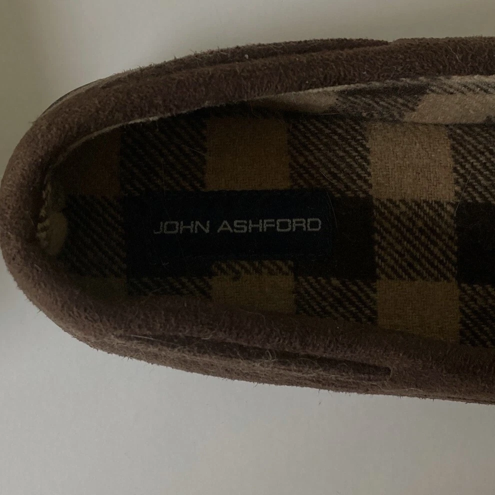 John Ashford Moccasin Slippers Size L 9.5-10.5 Brown Micro Suede Cozy Comfort Brand: John Ashford Size: L (9.5-10.5) Color: Brown Condition: New without tags\ Length: 11 inches Width: 4.25 inches Thank you for your interest. SS 020 CLOTHING AND FABRIC ITEMS: All clothing and fabric items have been steam cleaned and/or washed per eBay standards.