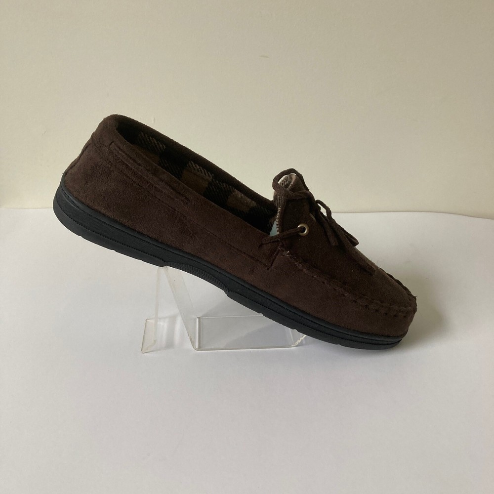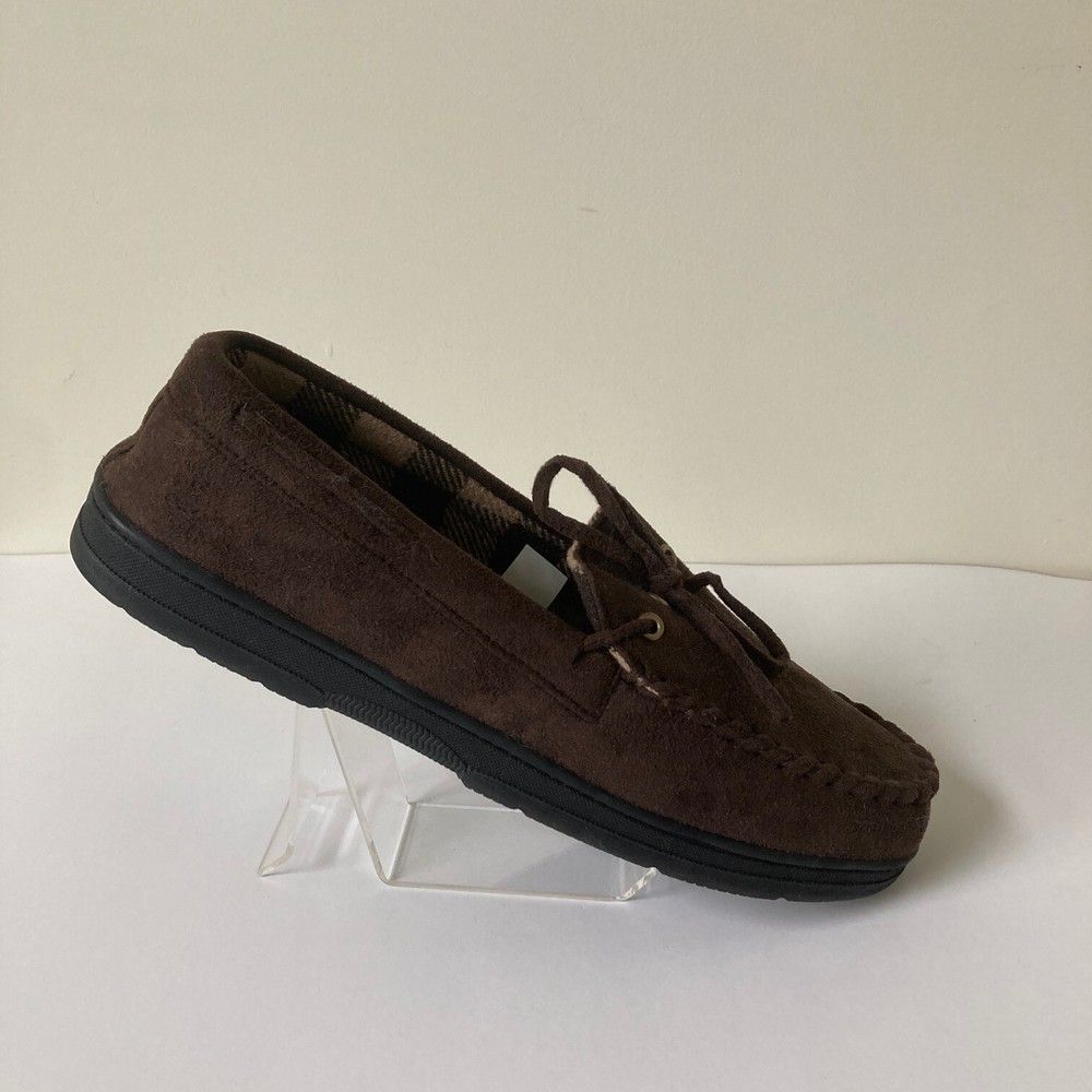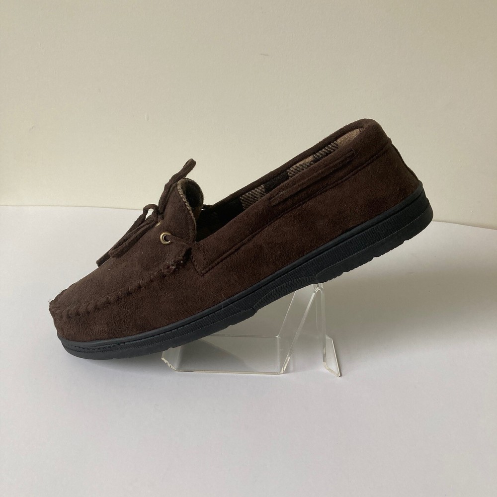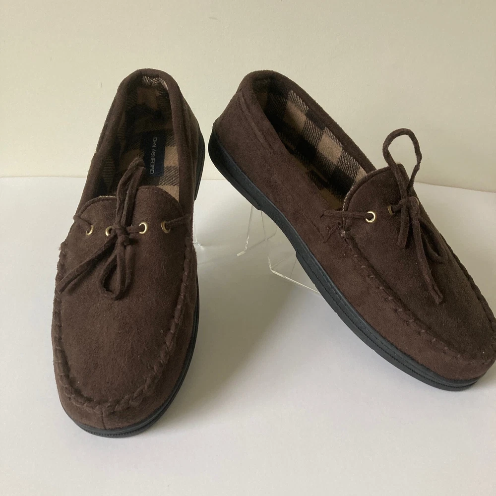 John Ashford Moccasin Slippers Size L 9.5-10.5 Brown Micro Suede Cozy Comfort Brand: John Ashford Size: L (9.5-10.5) Color: Brown Condition: New without tags\ Length: 11 inches Width: 4.25 inches Thank you for your interest. SS 020 CLOTHING AND FABRIC ITEMS: All clothing and fabric items have been steam cleaned and/or washed per eBay standards.