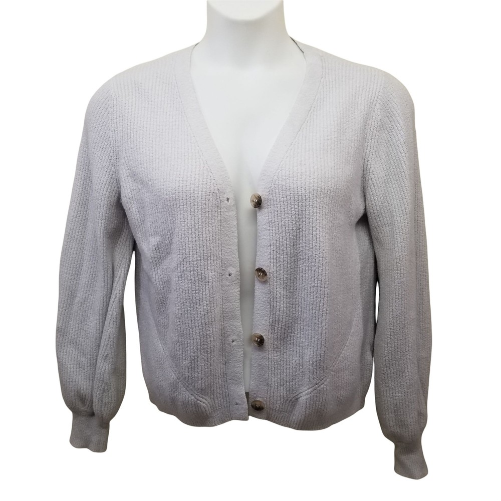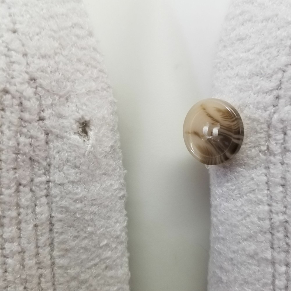 • Joie • Size - L • Cardigan Sweater • Material 75% Nylon 15% Viscose 10% PBT • There are button holes but buttons are to big to fit. • Dry Clean Only • No stains or holes. • Color is a creamy gray MEASUREMENTS are approx and taken with item laid flat. Length 23.5 in / 60 cm Bust 23.25 in / 59 cm Sleeves 26.5 in / 67 cm
