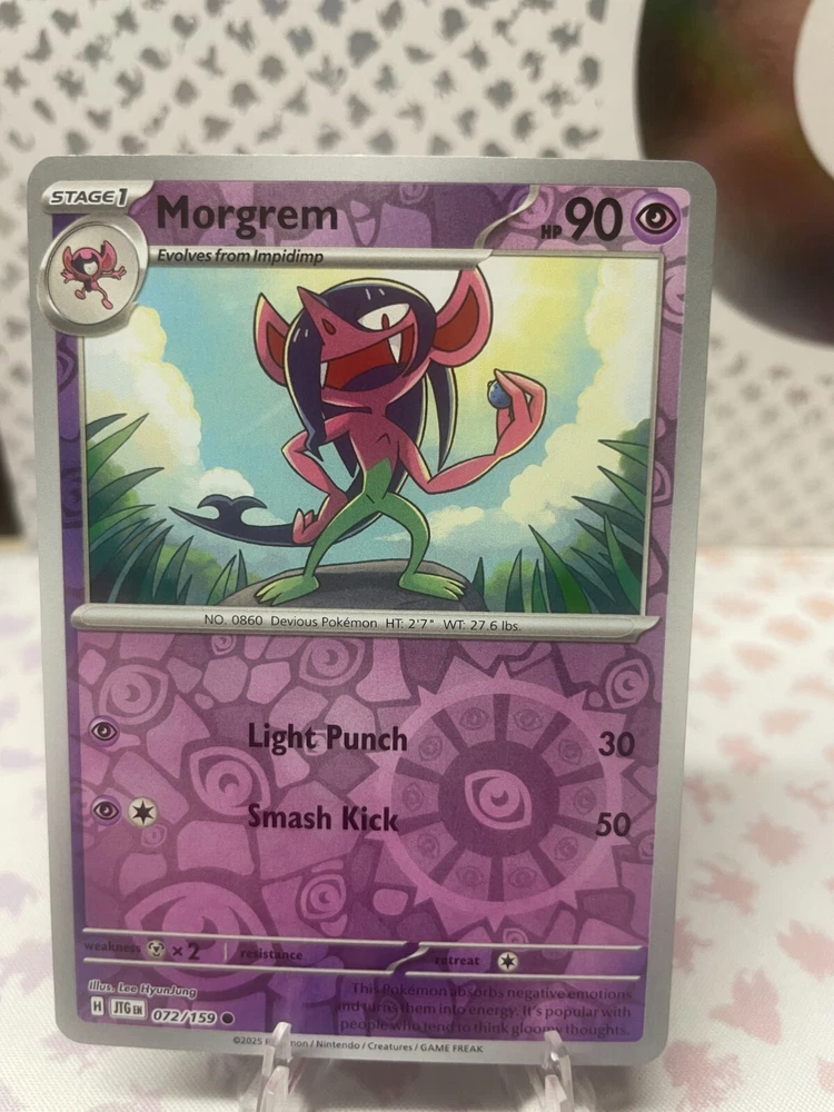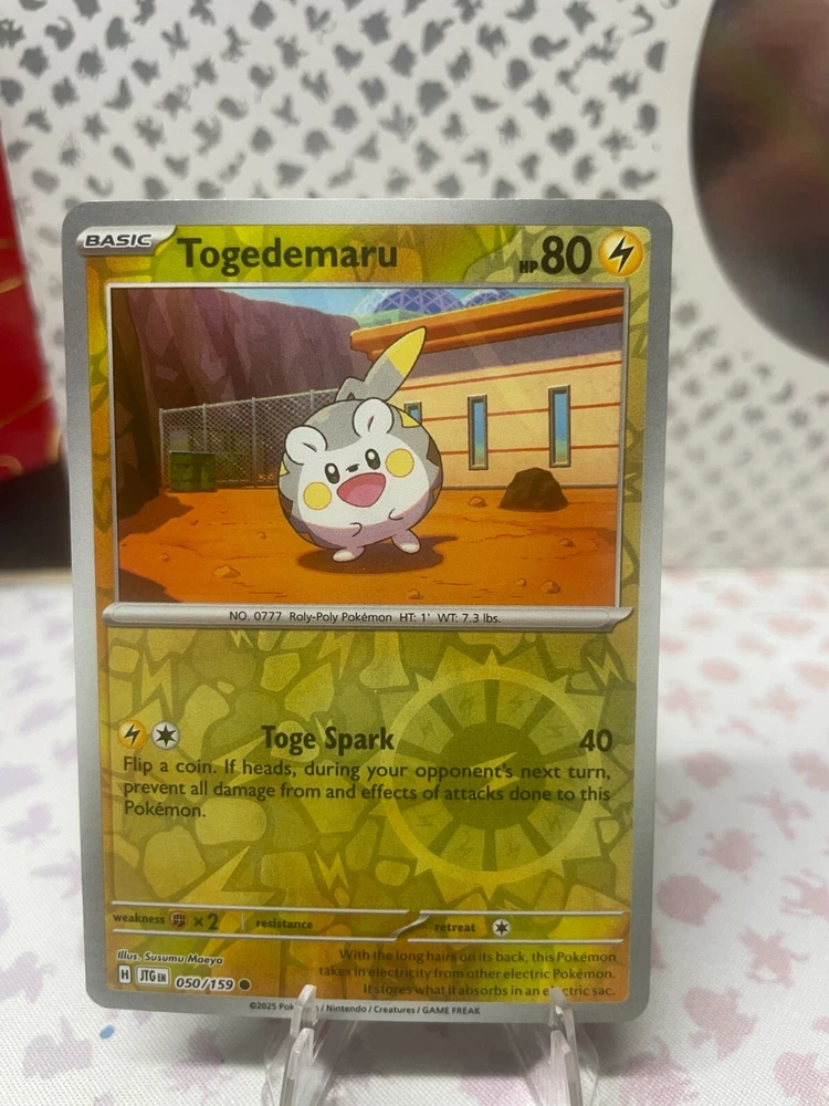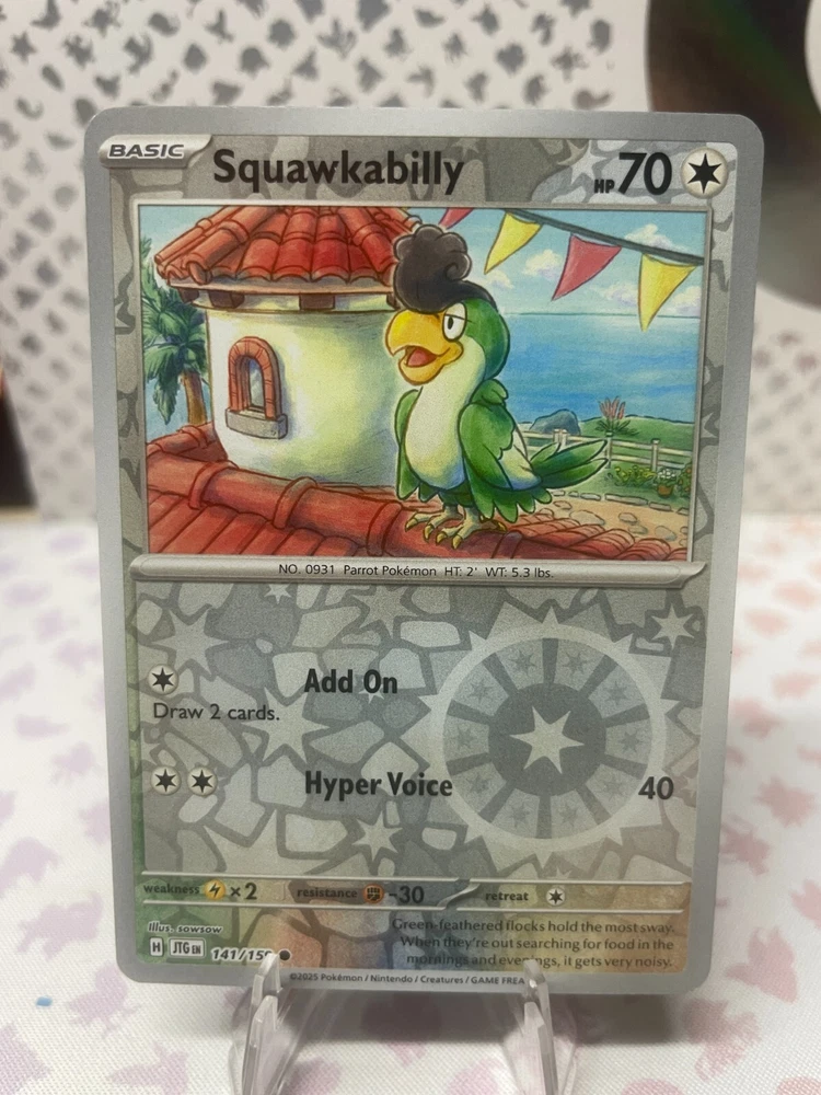 The product is a Pokémon TCG set named "Journey Together" and features Reverse Holo cards. Customers can choose which Reverse Holo cards they want to complete their set by picking individual cards from the available selection. These cards are highly sought after for their rare reverse holo finish, adding a unique and collectible element to any Pokémon card collection. Perfect for fans and collectors of the Pokémon Trading Card Game looking to enhance their decks or add special cards to their sets.