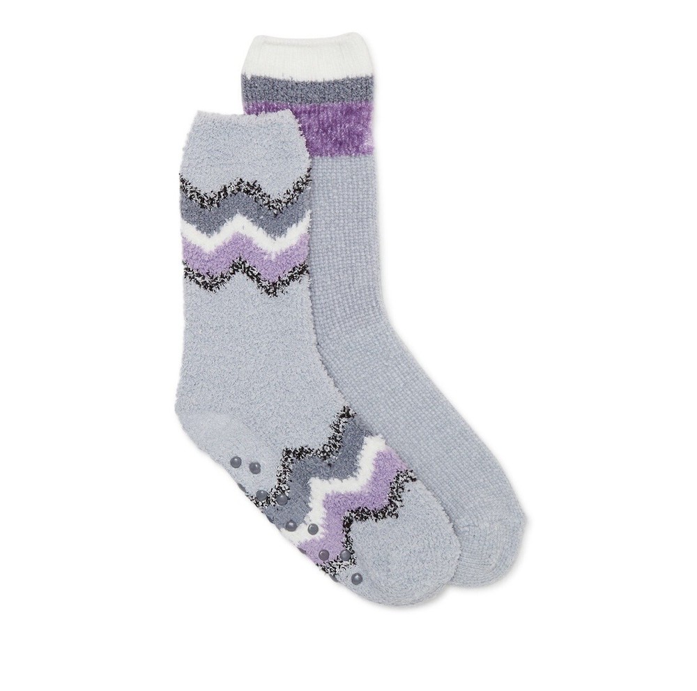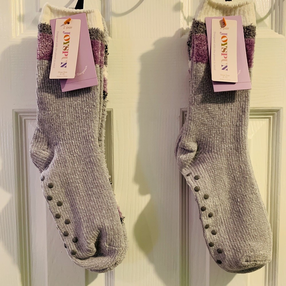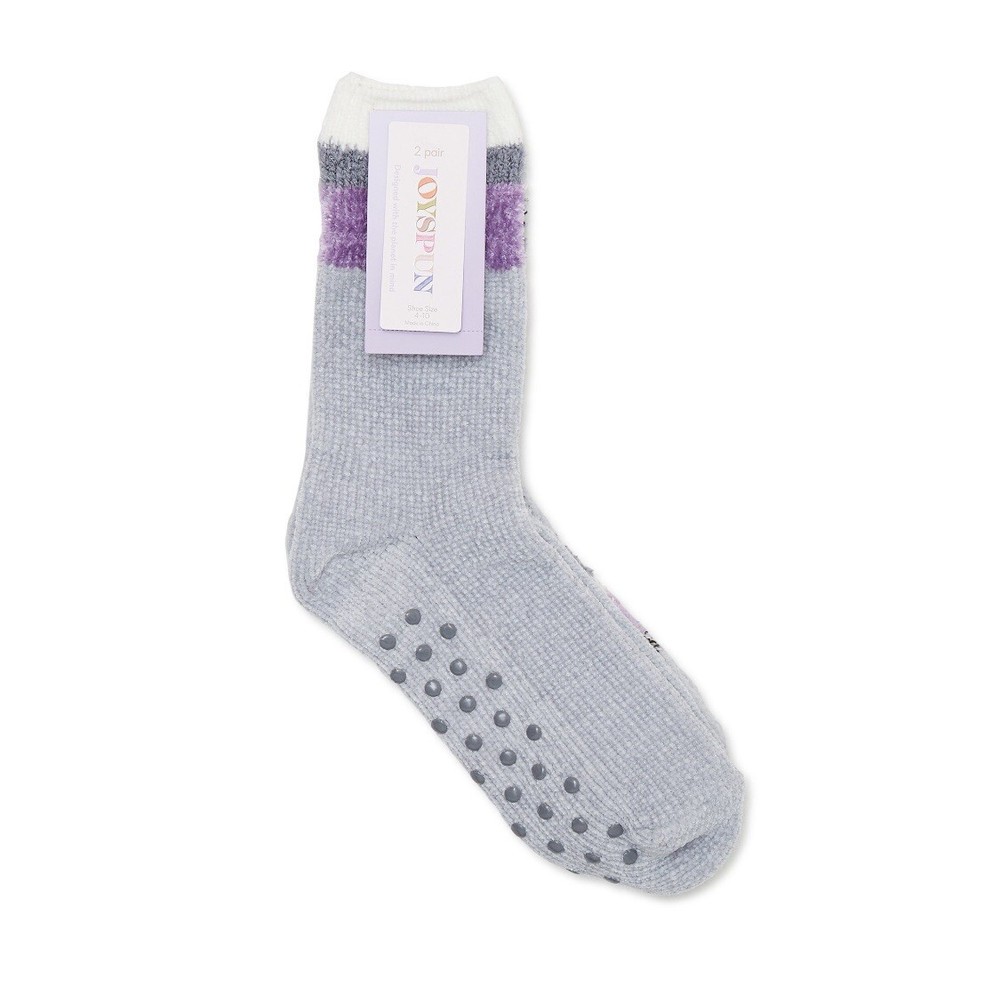 Joyspun Women's Luxury Lounge 4 pairs Socks W Grippers Grays Shoe Size 4-10 New. 2 packs with 2 pair each. (Total of 4 pairs of socks)