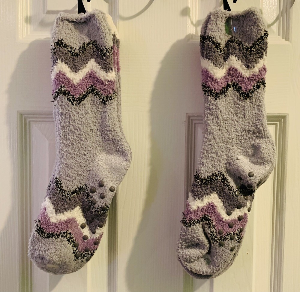 Joyspun Women's Luxury Lounge 4 pairs Socks W Grippers Grays Shoe Size 4-10 New. 2 packs with 2 pair each. (Total of 4 pairs of socks)...