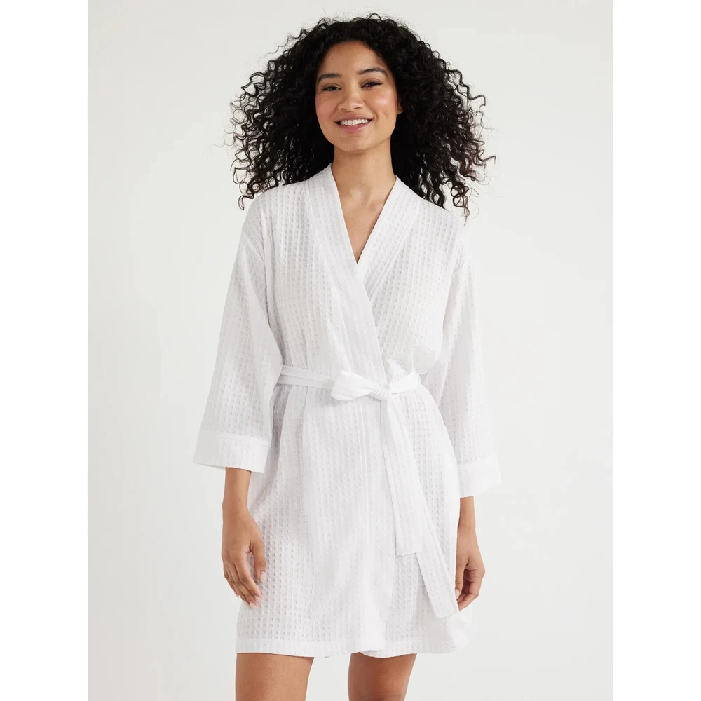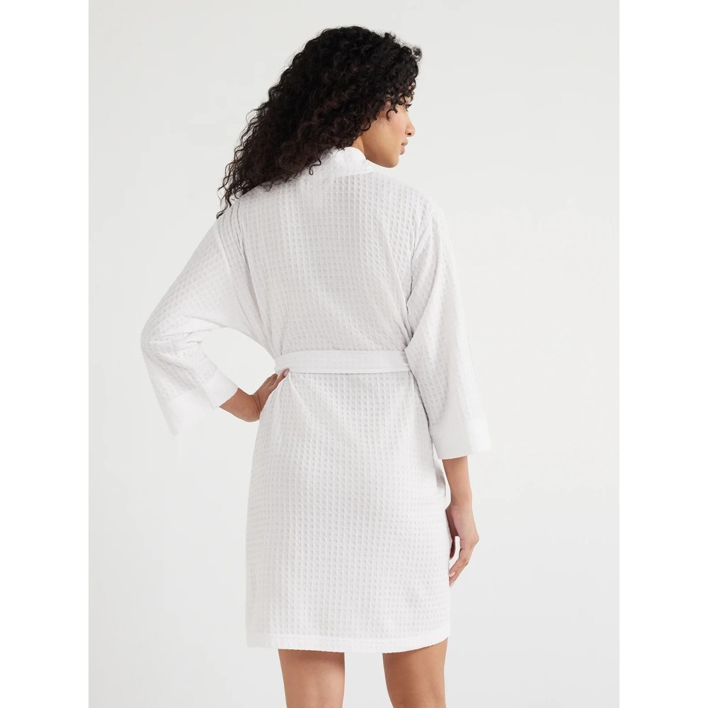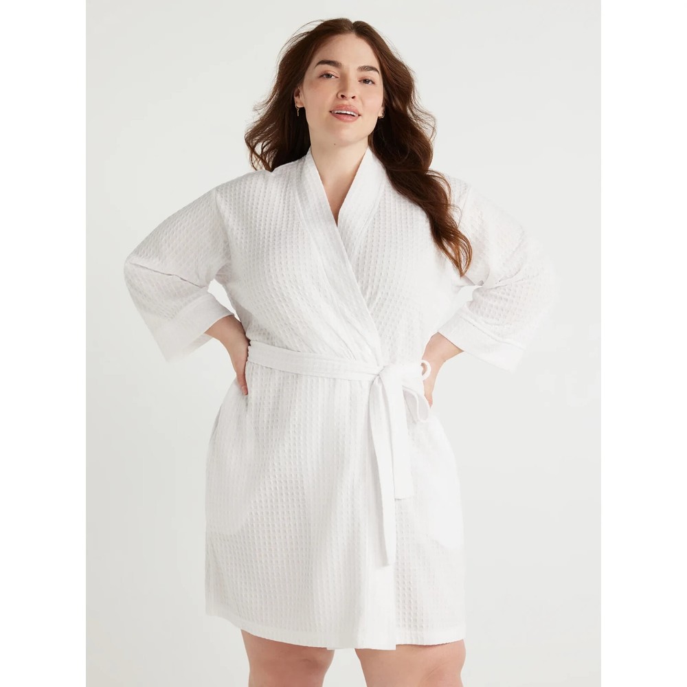 Spa style—in the comfort of your home. Take time to relax and unwind in this Shawl Collar Robe from Joyspun, thoughtfully crafted in a lightweight waffle knit that is wonderfully soft and luxe against your skin. This wrap-style robe is finished with easy-wearing three-quarter length sleeves—perfect for testing the bath water. Material: 100% Polyester Care: Machine washable Country of Origin: Imported Fit: Relaxed Collar: Shawl collar Closure: Open front with interior tie and removable 1.75" wide self-belt Sleeves: 3/4 length sleeves Pockets: 2 side-seam pockets Features: Soft, lightweight waffle knit Women's Shawl Collar Waffle Knit Robe from Joyspun info: