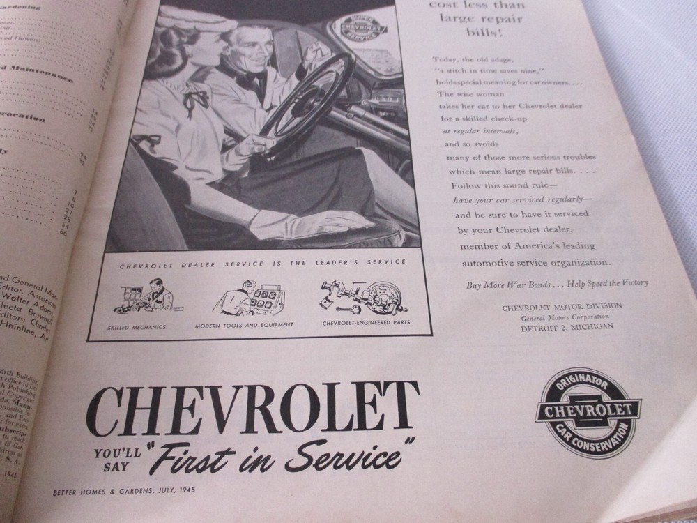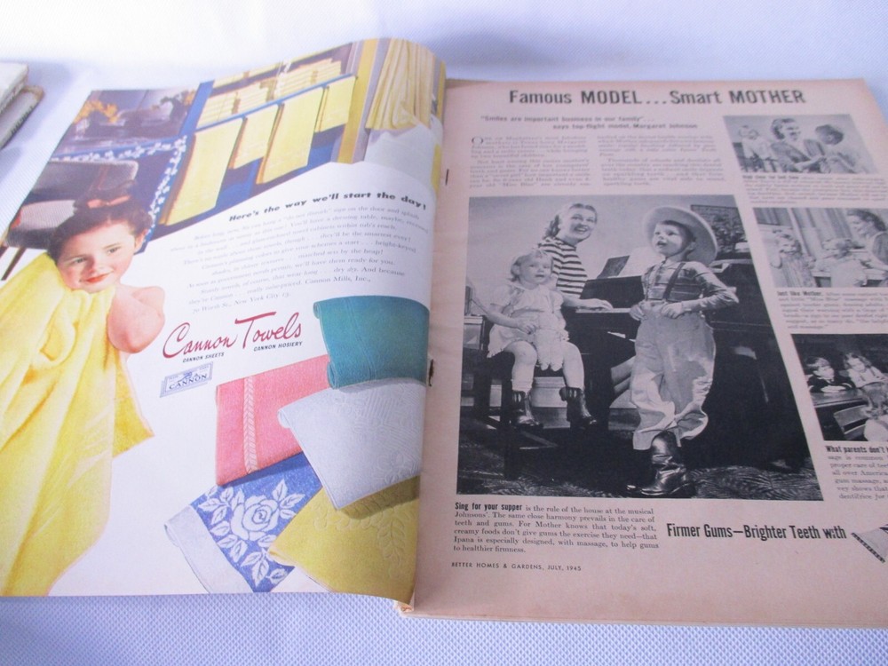 July 1945 WW2 Better Homes & Gardens Magazine Cannon Towels, Ipana, Chevrolet, Moduflow, Pontiac, Swift's Beef, Hellmanns Vintage Ads, solid vintage issue, has a bent corner, some wear from reading and storage, dings on the spine and edge dings, spine is solid and pages are tight, good looking magazine for its age. (50757 Hi! And thanks for looking. Hope I can send something good your way. I pack items with care and work my best to get items to you in the best of condition. I have been collecting for over 30 years and do my best to describe everything as well as possible. If I missed something feel free to ask.