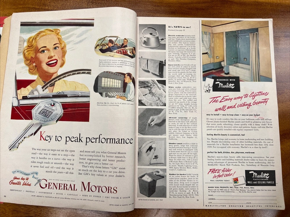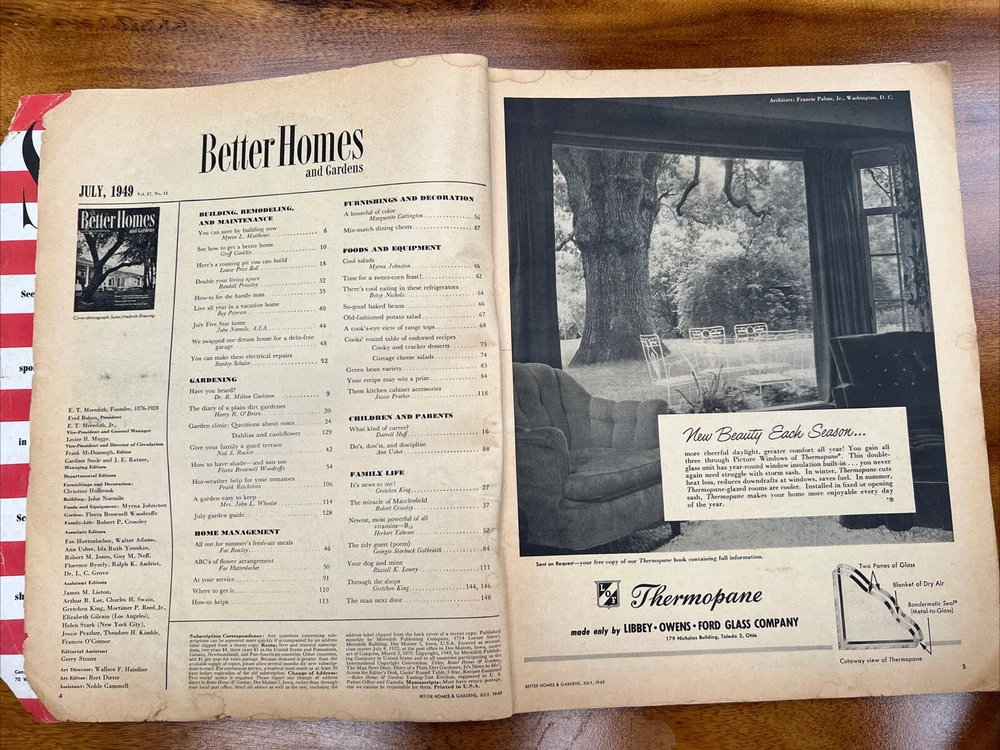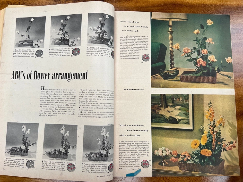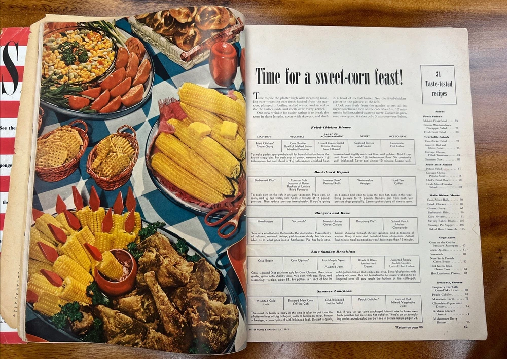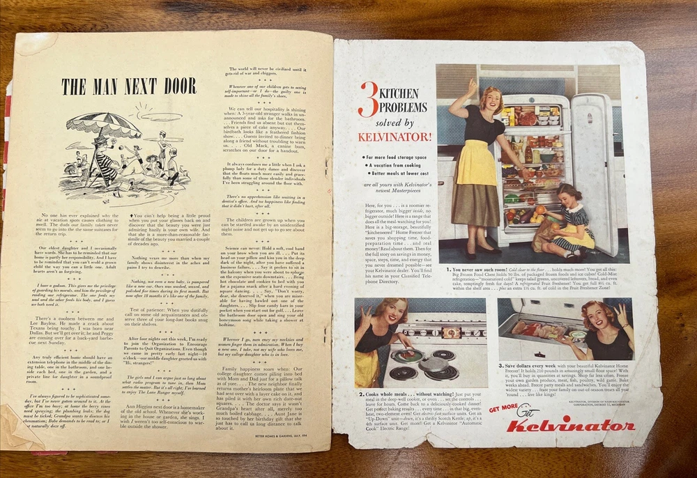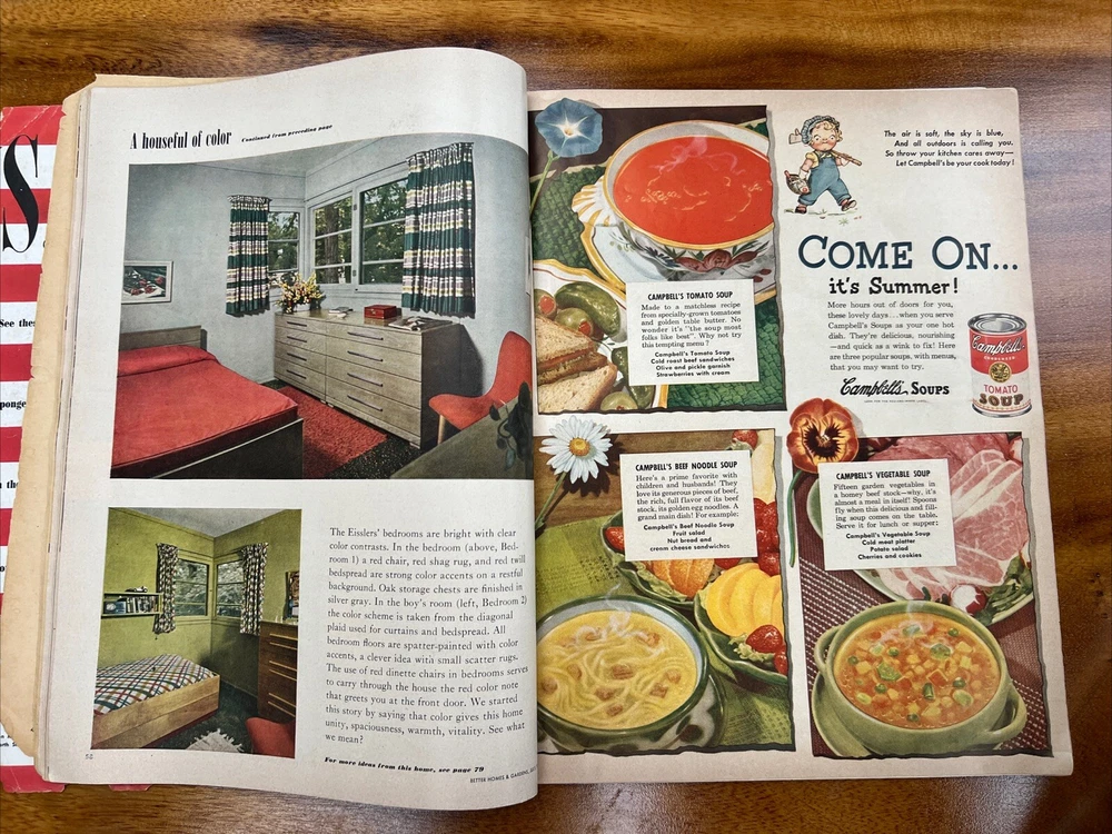 This vintage issue of Better Homes & Gardens magazine from July 1949 is a treasure trove of ideas for home decor, recipes, and MCM design. The publication features a variety of topics, including tips on how to create a stylish home, advice on cooking and entertaining, and insights into the latest trends in home decor. Overall acceptable vintage condition with some wear consistent with age and use. Page discoloration and cover page is loosening from body of magazine. Please see pictures!