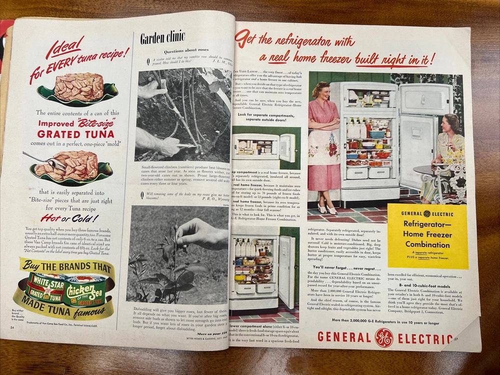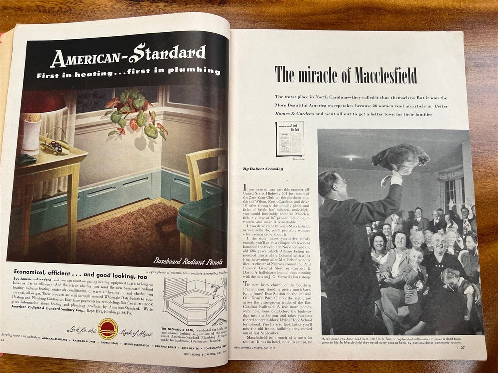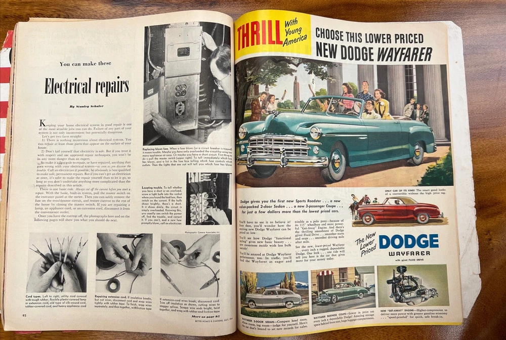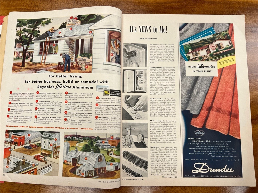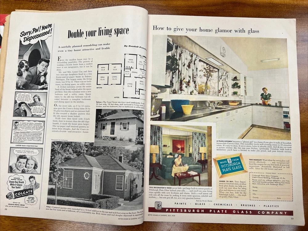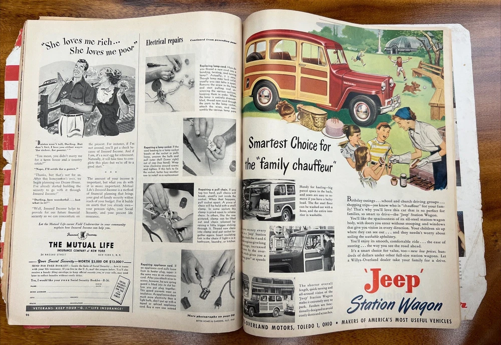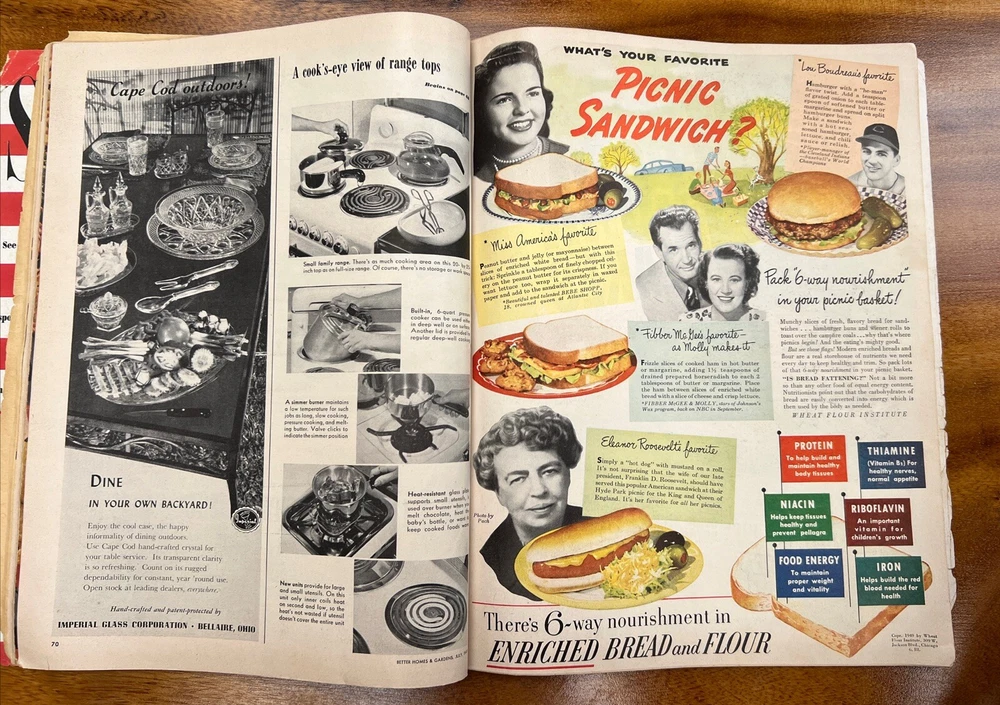 This vintage issue of Better Homes & Gardens magazine from July 1949 is a treasure trove of ideas for home decor, recipes, and MCM design. The publication features a variety of topics, including tips on how to create a stylish home, advice on cooking and entertaining, and insights into the latest trends in home decor. Overall acceptable vintage condition with some wear consistent with age and use. Page discoloration and cover page is loosening from body of magazine. Please see pictures!