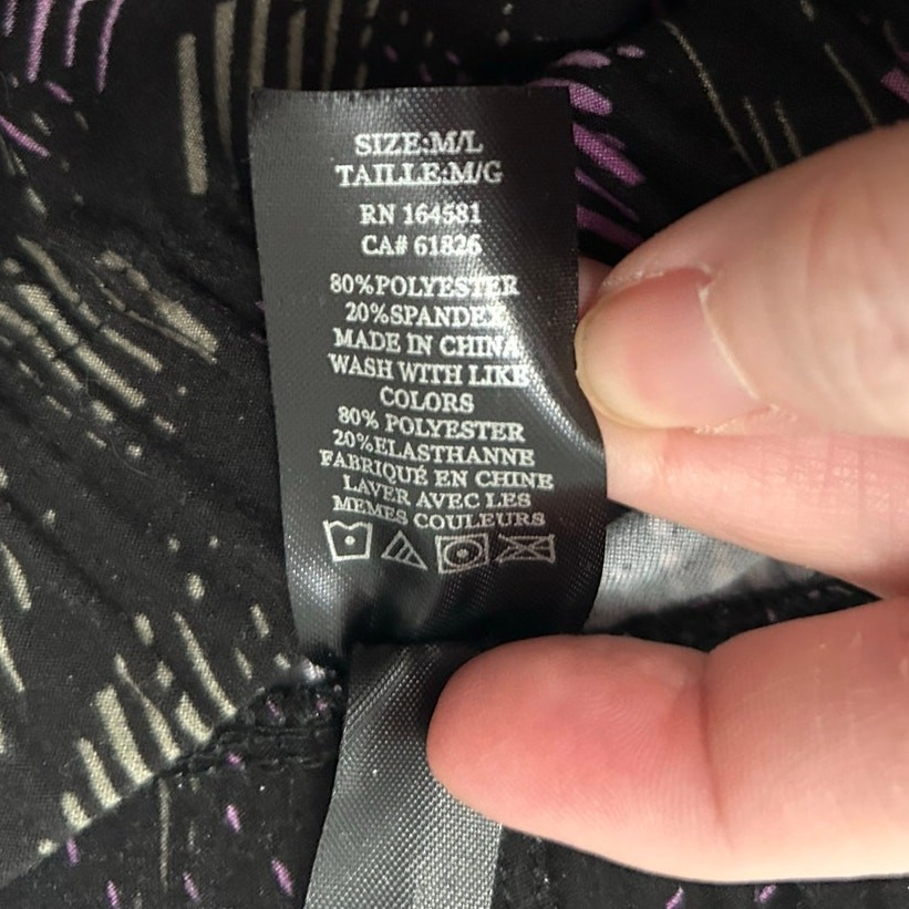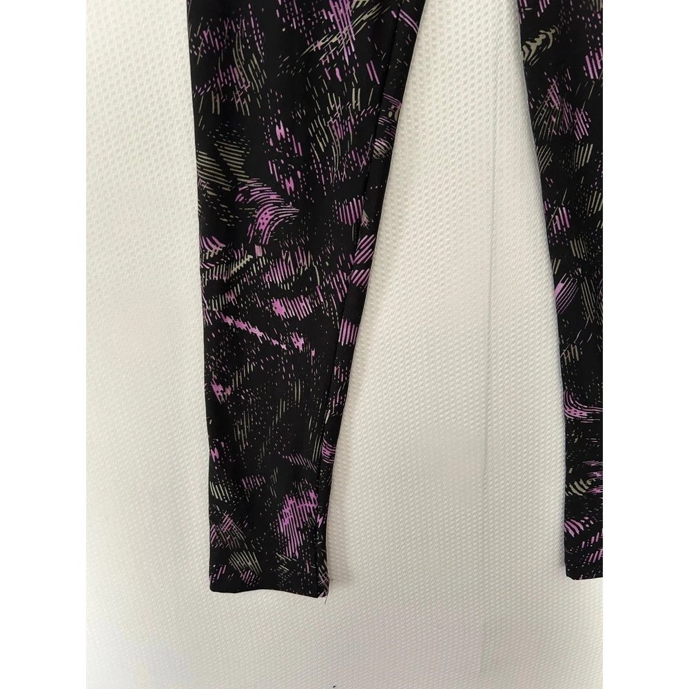 These leggings are so incredibly soft and comfortable! The fit is perfect, and I love the stylish lilac lines on the black background. They arrived quickly and are just as described—definitely a new favorite in my wardrobe.