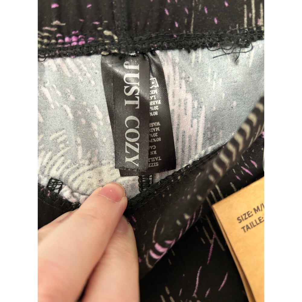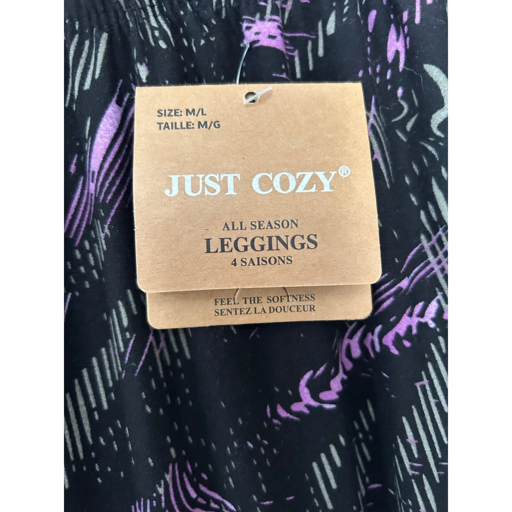 <![CDATA[<div>Just Cozy All Season Lilac Lines Black Purple Soft Leggings Size M/L 6-12 Color- Black Purple Material- 80% Polyester 20% Spandex Care- Machine Wash Excellent Condition- New with Tags Fast same or next business day shipping! Clean, Smoke Free, Pet Friendly Home Measurements taken while lying flat and are approximate. Waist 12 1/2" Inseam 28" Rise 11"