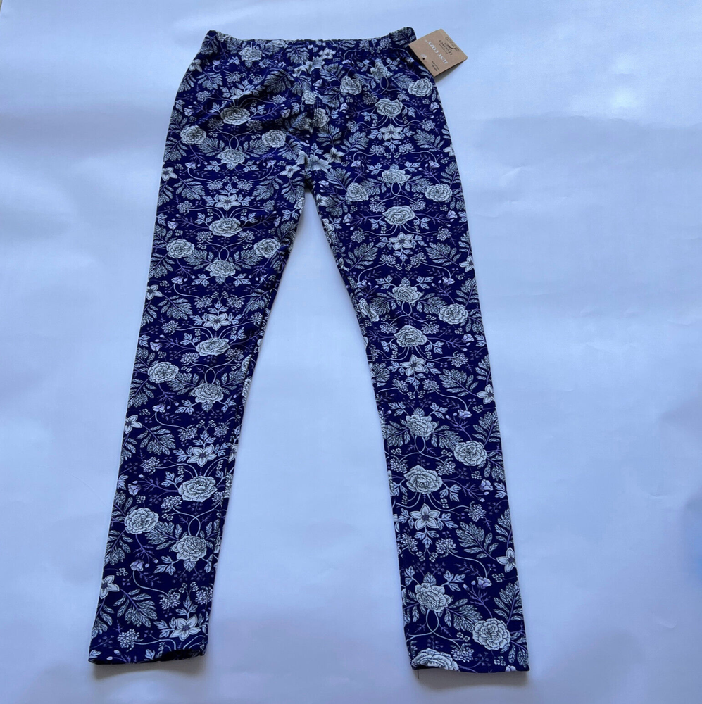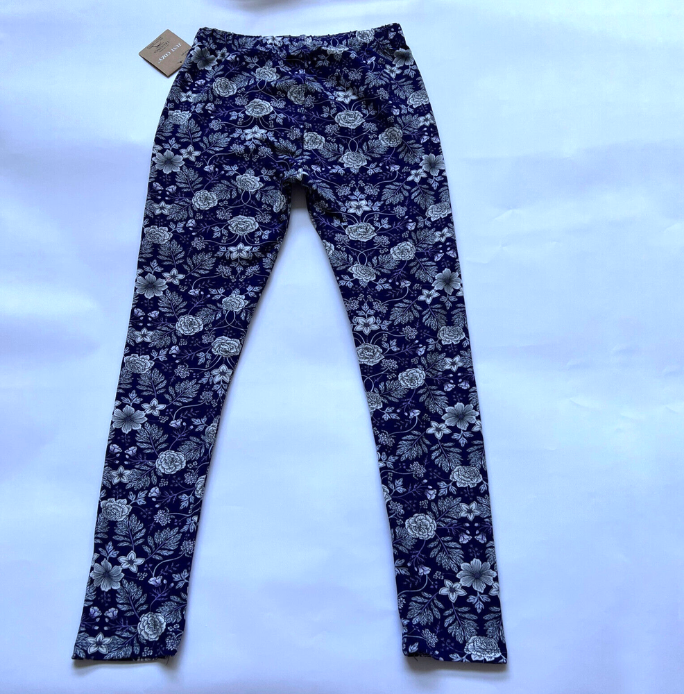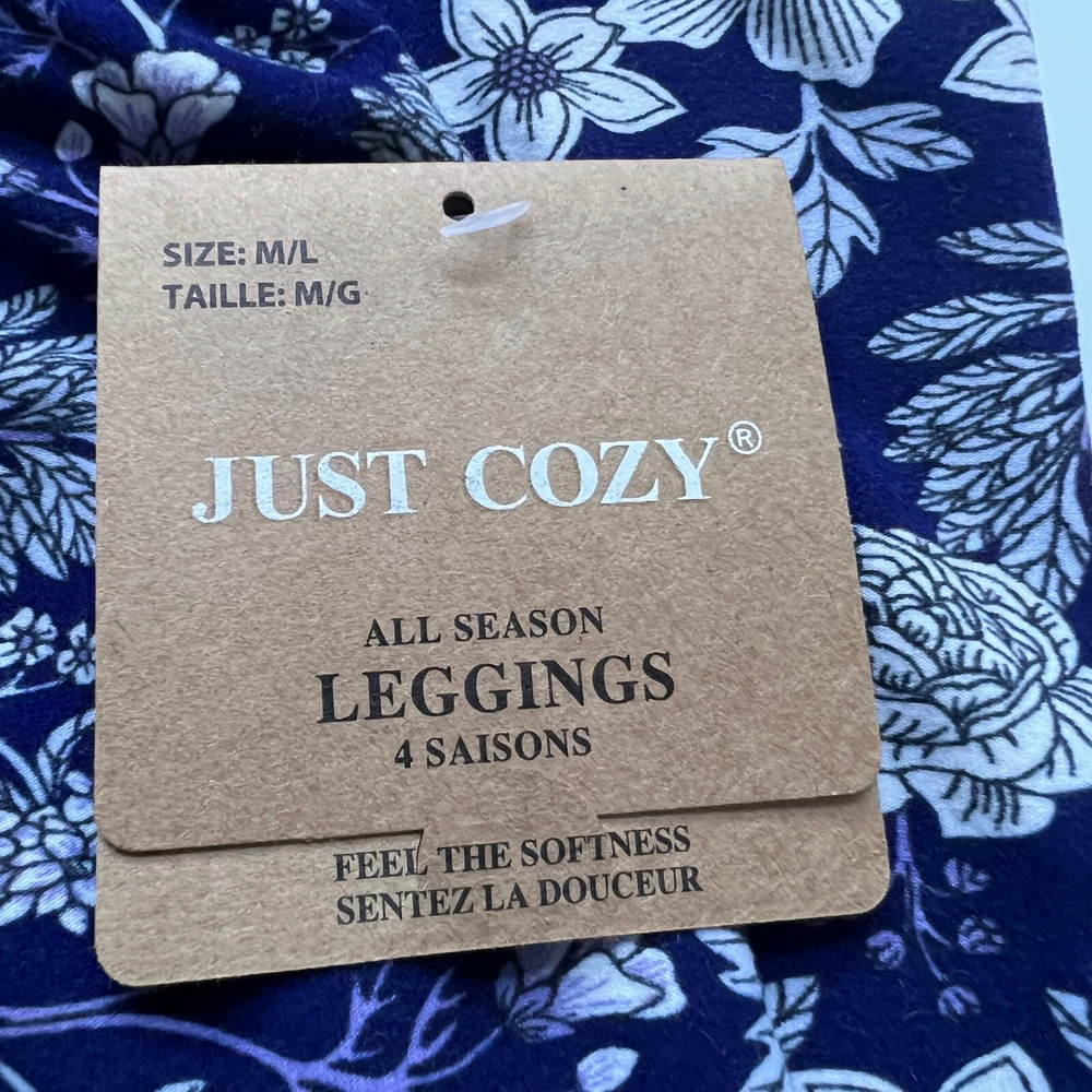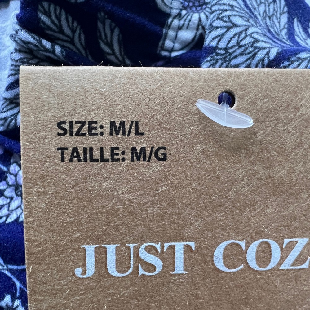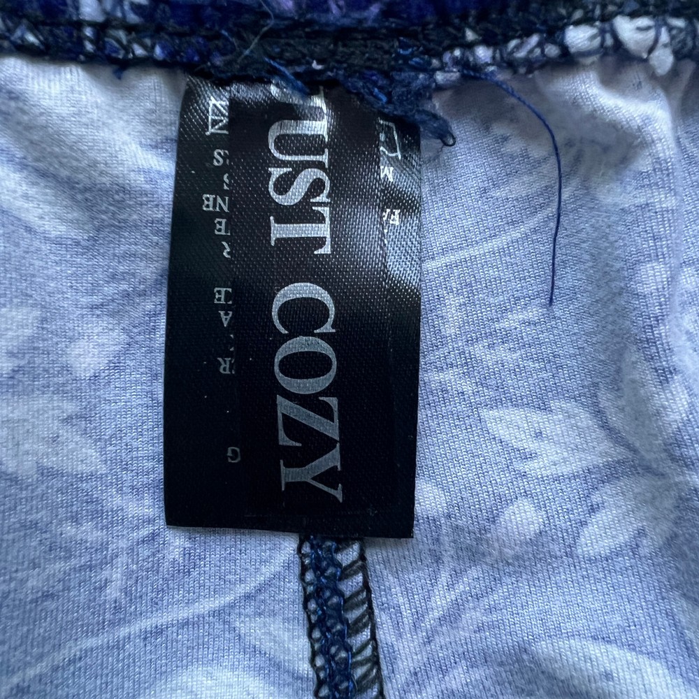 Just Cozy Leggings Size M/L Purple and white floral Comfy Wear Stretchy New Measures approx. waist - 25" rise - 10" inseam - 25 1/2" leg opening - 9" around