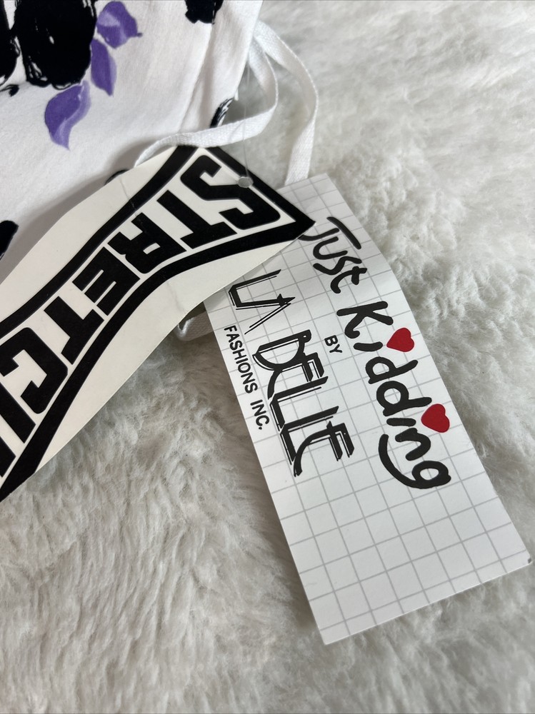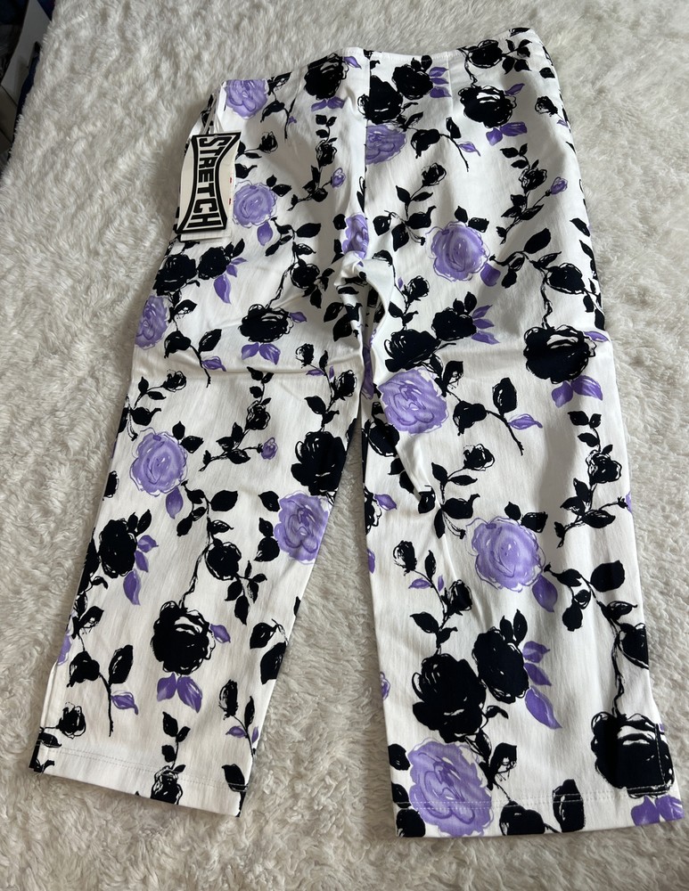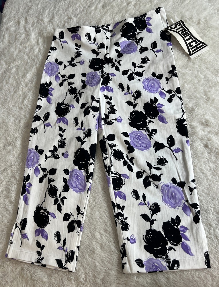 Add a pop of color to your little girl's wardrobe with these stylish capri pants by Just Kidding By La Belle. The multicolor floral pattern and side zip slits add a touch of comfort and flair to these pants, perfect for casual occasions. Made from a comfortable blend of spandex and cotton, these pants are machine washable and easy to care for. Lightweight, measurements in photos.