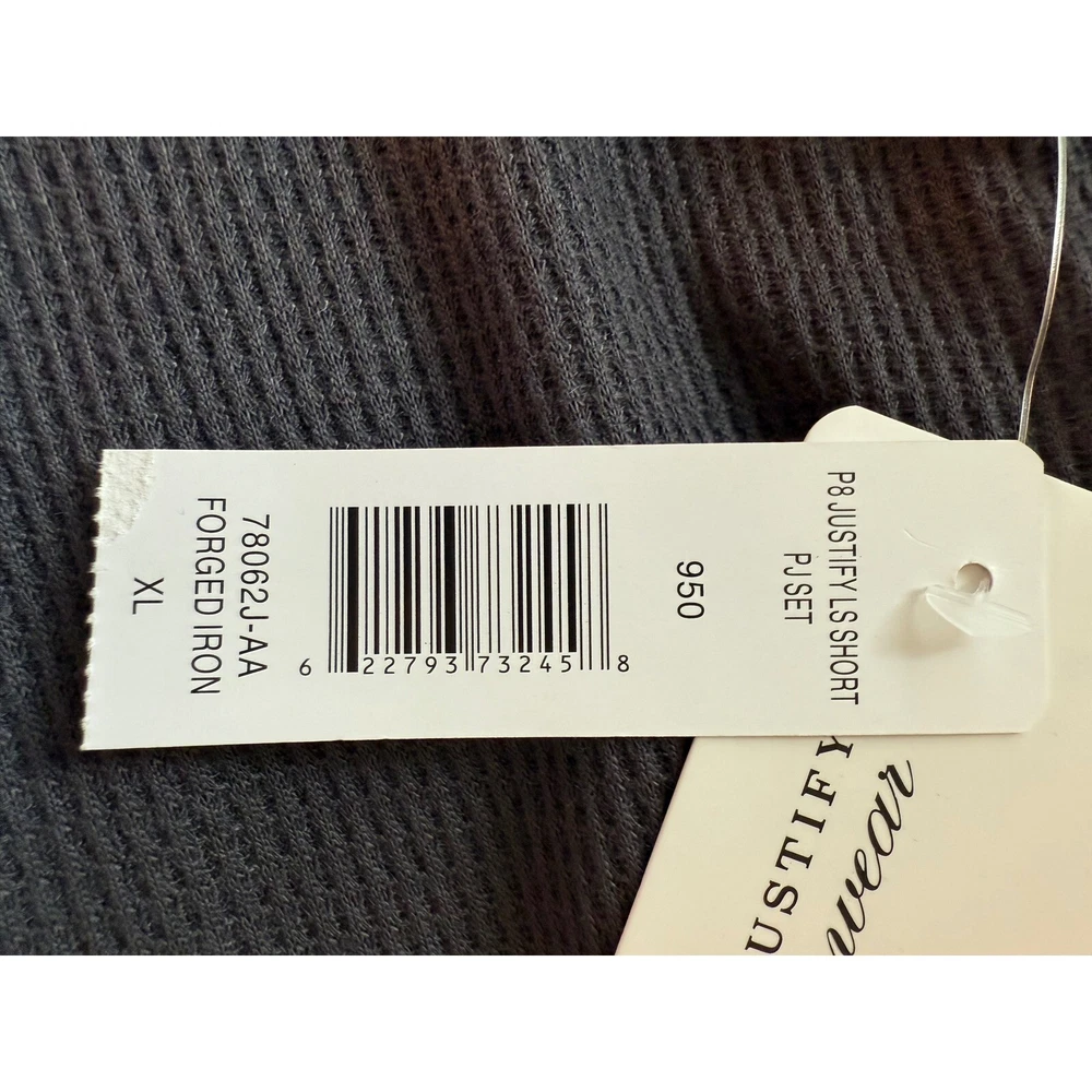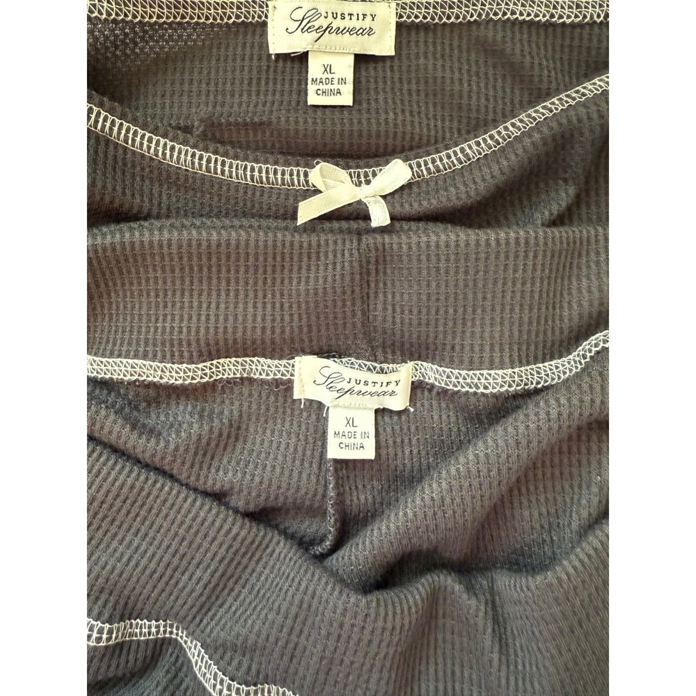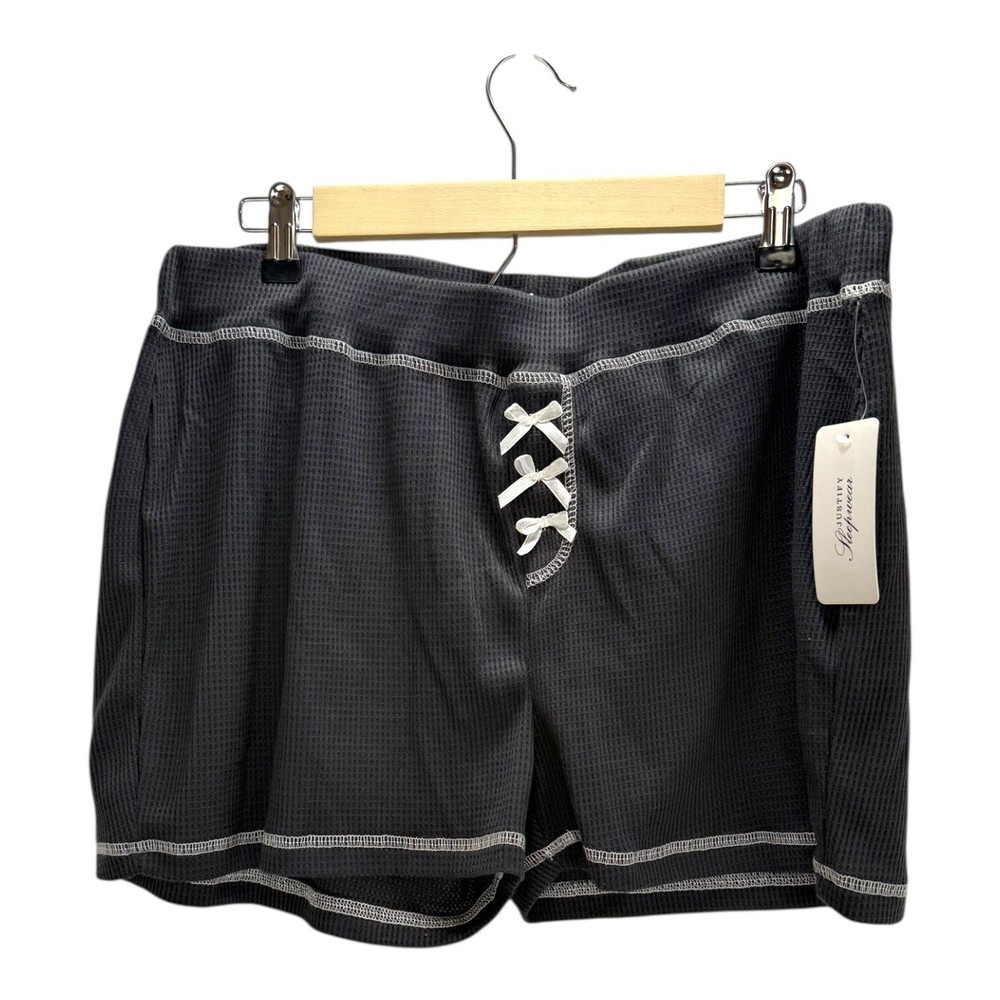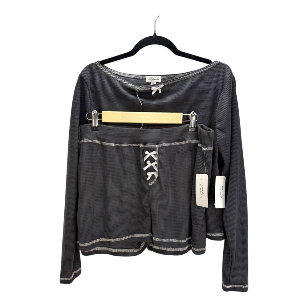Cozy comfort meets chic style in this delightful pajama set. Imagine slipping into this soft, waffle-knit ensemble after a long day, the gentle texture caressing your skin as you unwind. The long-sleeved top features a flattering boat neck and a sweet bow detail, while the matching shorts boast a playful lace-up front and contrasting trim. This set is perfect for lazy weekend mornings, relaxing evenings at home, or even a casual brunch with friends. Set Includes: Shorts, Long Sleeve T-Shirt Number of Pieces: 2 Piece Material: Polyester Blend, Spandex Character Family: Loungewear, Pajama Set, Sleepwear Fabric Type: Waffle Character: Cozy, Sleepy, Lounger Occasion: Casual Accents: Bow, Lace Pattern: Solid Keywords: pajama set, loungewear, sleepwear, waffle knit, lace up, long sleeve, shorts set, cozy, comfortable, gray pajama set, xl pajama set, womens pajama set, new with tags