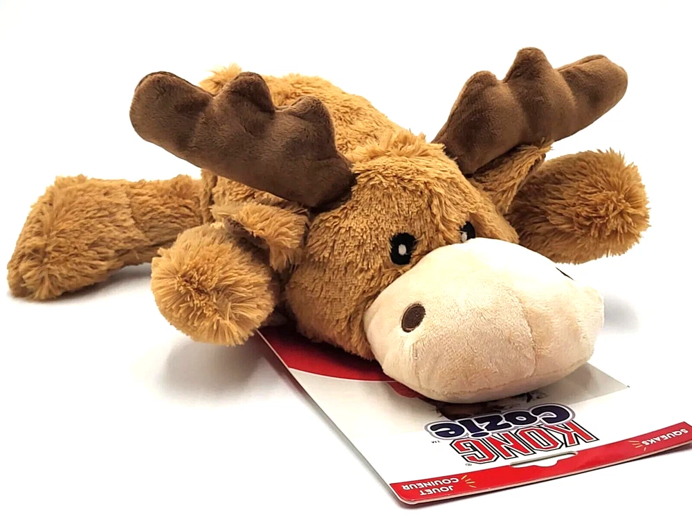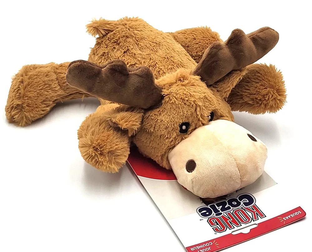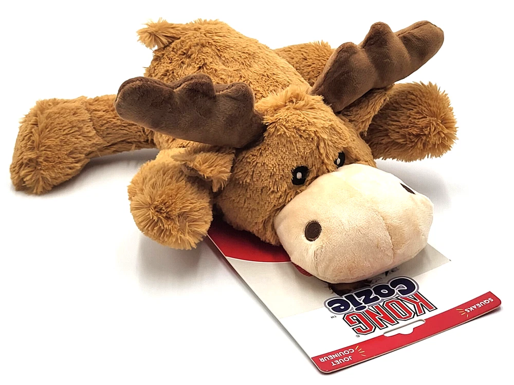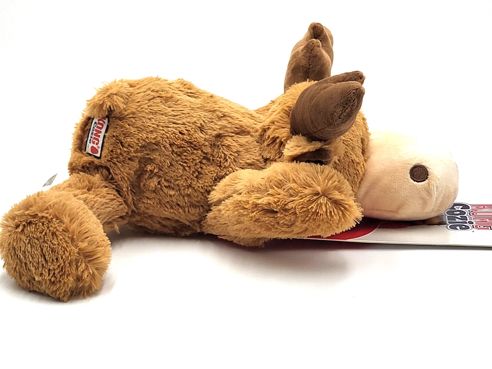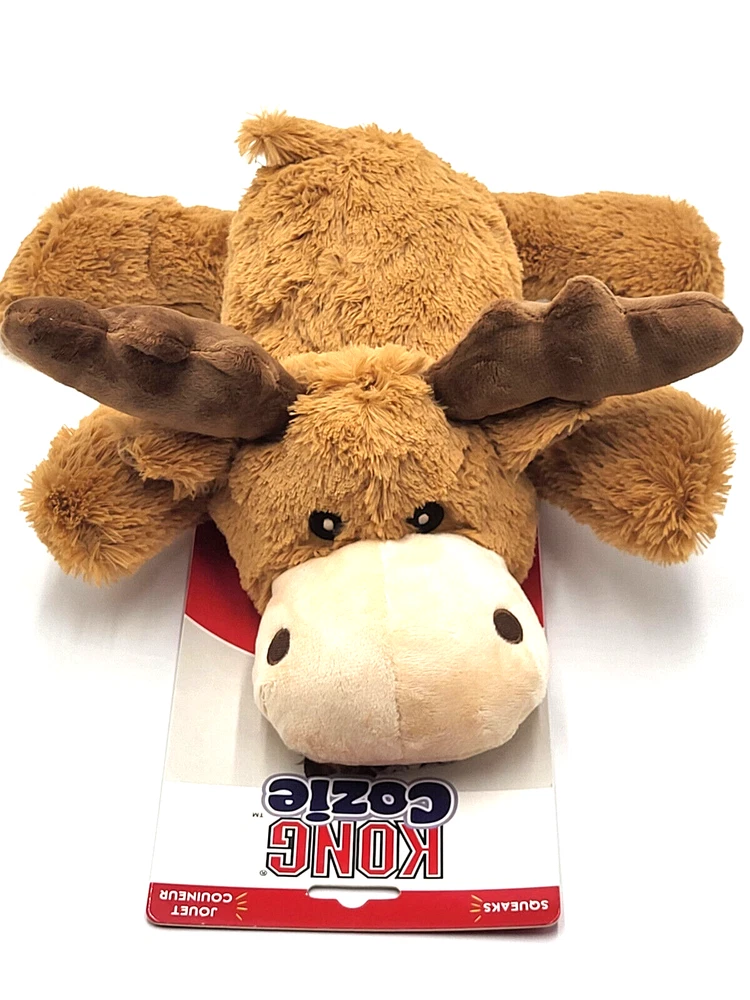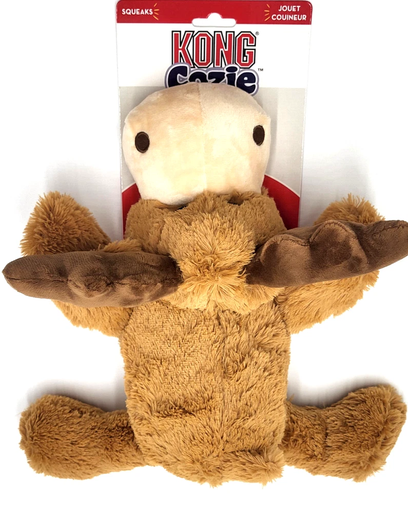 Cozie Marvin Moose The KONG Cozie Marvin Moose is a soft and luxuriously cuddly plush toy great for snuggle time comfort. Made with an extra layer of material for added strength, the KONG Cozie Marvin Moose is an ideal toy for softer chew sessions and indoor fun. The KONG Cozie™ Marvin Moose toy is sure to delight during snuggle and play time. Deluxe push for indoor snuggle time Extra layer of material for added strength Squeaker entices active play Ideal for indoor fun Adorable characters add to the fun Measures 14 x 12 Inches. ABOUT US Playtime Pets specializes in fun toys, chews and treats. You may find other pet items here from time to time such as collars, bowls, remedies etc. We offer the great prices on quality products. Check back regularly for new finds. SHIPPING We always work hard to ensure your package arrives as soon as possible. Please understand that some factors like weather, high postal traffic, and the performance of shipping companies are outside of our control. We offer free shipping to the lower 48 states and ship within 2 business days of payment, usually sooner. Please provide a physical address. RETURNS We offer a 30-Day Return Policy on items which you are not completely satisfied with. You have the option for a full-refund. However, please keep in mind that no toy is indestructible, therefore I make no claims on how long a toy will last for your dog. CUSTOMER SATISFACTION We try our very best to make sure every customer is completely satisfied. If there's a problem, message us! We're happy to help.