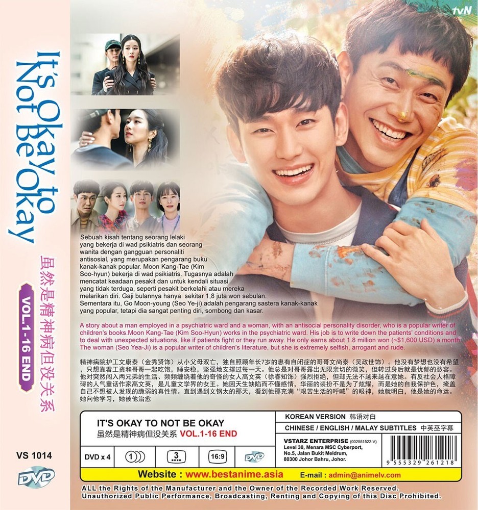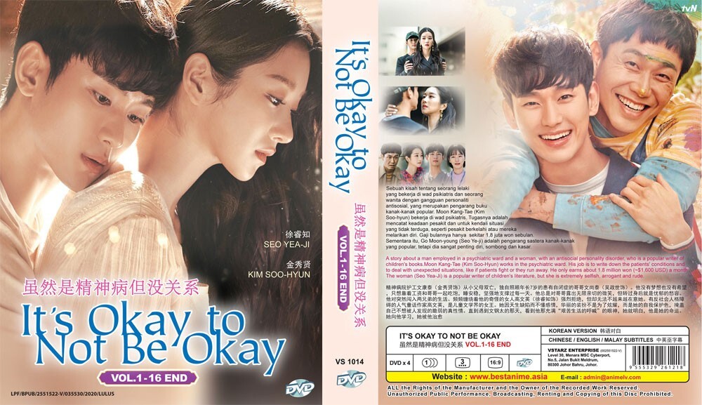 KOREAN DRAMA IT'S OKAY TO NOT BE OKAY - COMPLETE TV SERIES Language : Korean Subtitle : English / Chinese No. of Episode : 1 - 16 End No. of Disc : 4 Condition : NEW, Original & Licensed ITEM Media Type : NTSC, Widescreen 16 : 9 ( Region ALL ) Payment & Shipping We Accept PAYPAL Only. Tracking Number Will Be Provided. Free Register Track Your Shipment 10 to 18 Days Without Sat & Sun Working Days. Item Will Be Processed And Ship Within 2 Or 3 Working Day ( NOT INCLUDED WEEKED AND PUCBLIC HOLIDAY ). As The Seller, We Are Not Liable For Any EXTRA COST / CHARGE / TAX Imposed By Your Custom Upon Receiving The Package. Return Buyer Pay The Return Postage. 30 Days Returnable. Items Must Be Returned In Perfect Original Condition, Buyer Responsible For Return Shipping Cost Refunds Will Be Arranged Thru PAYPAL. About Feedback Please Contact us to Resolve any bad issue before leaving Neutral or Negative Feedback.