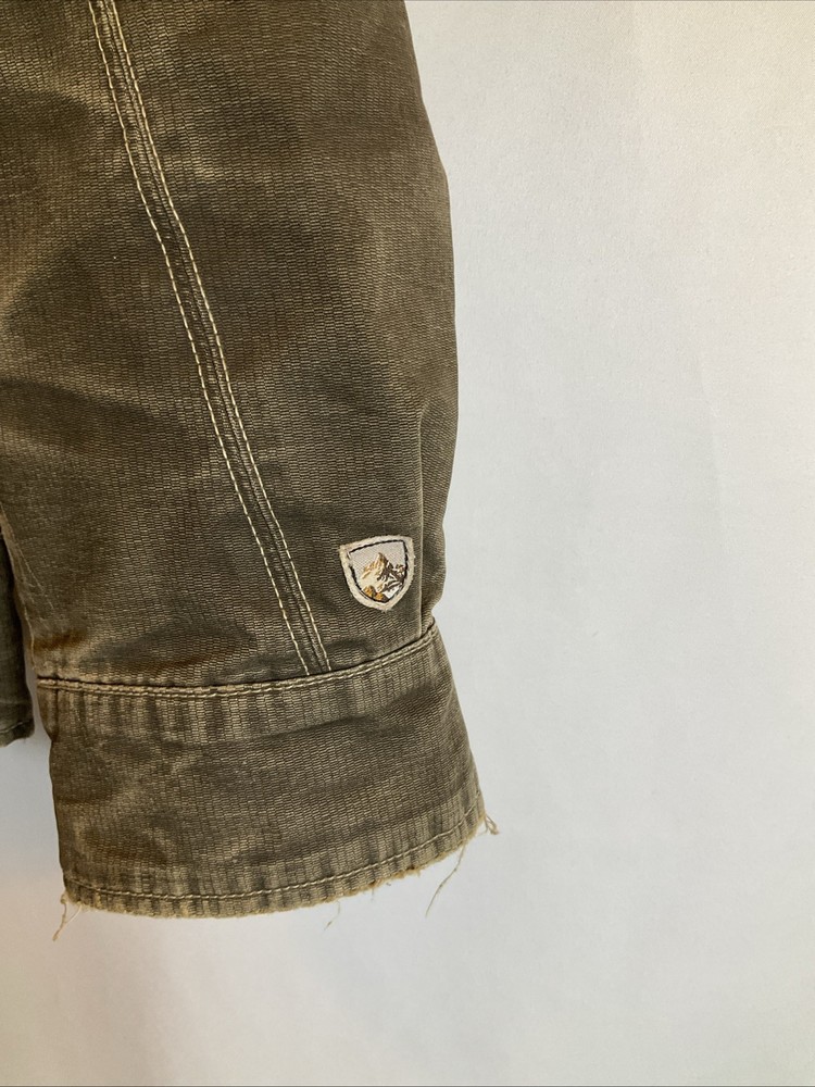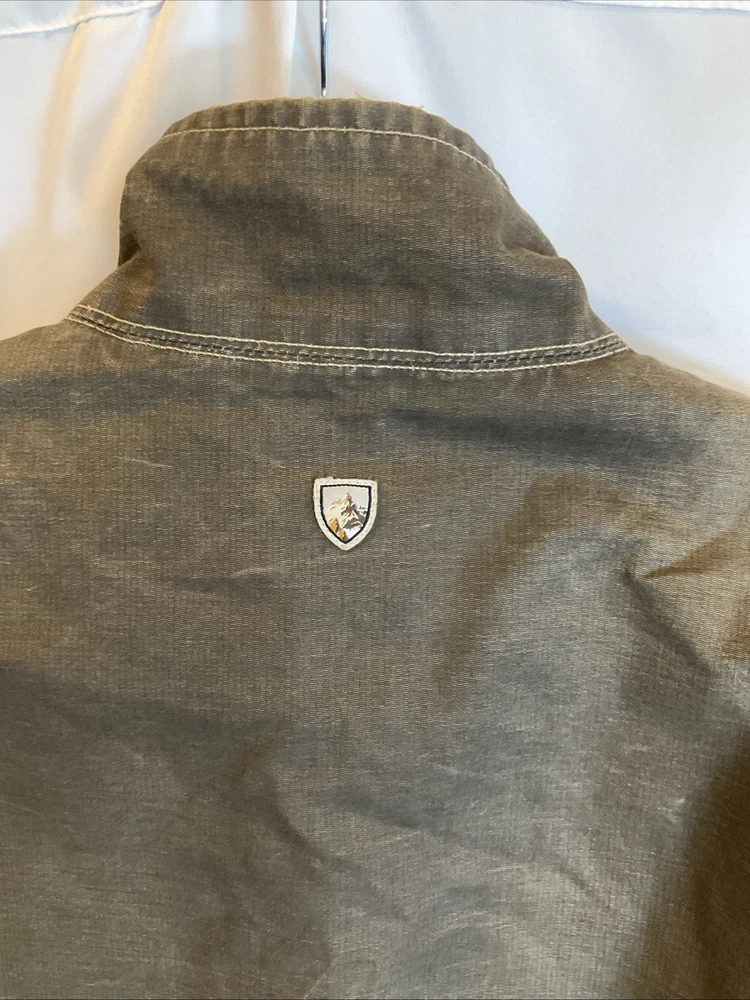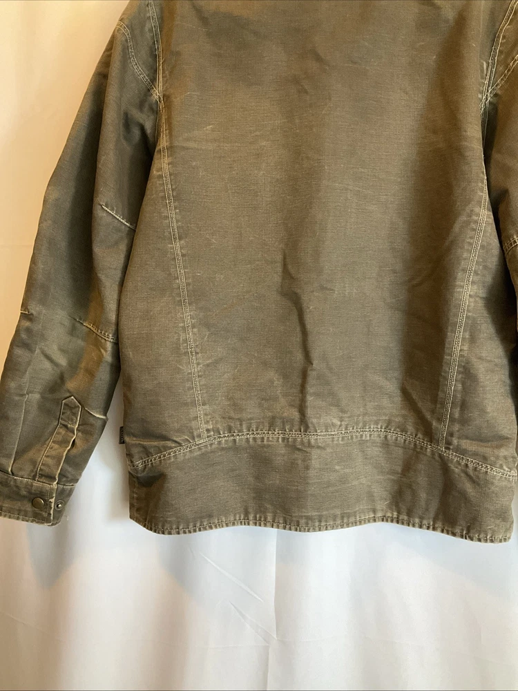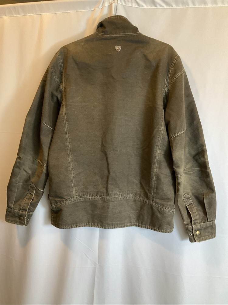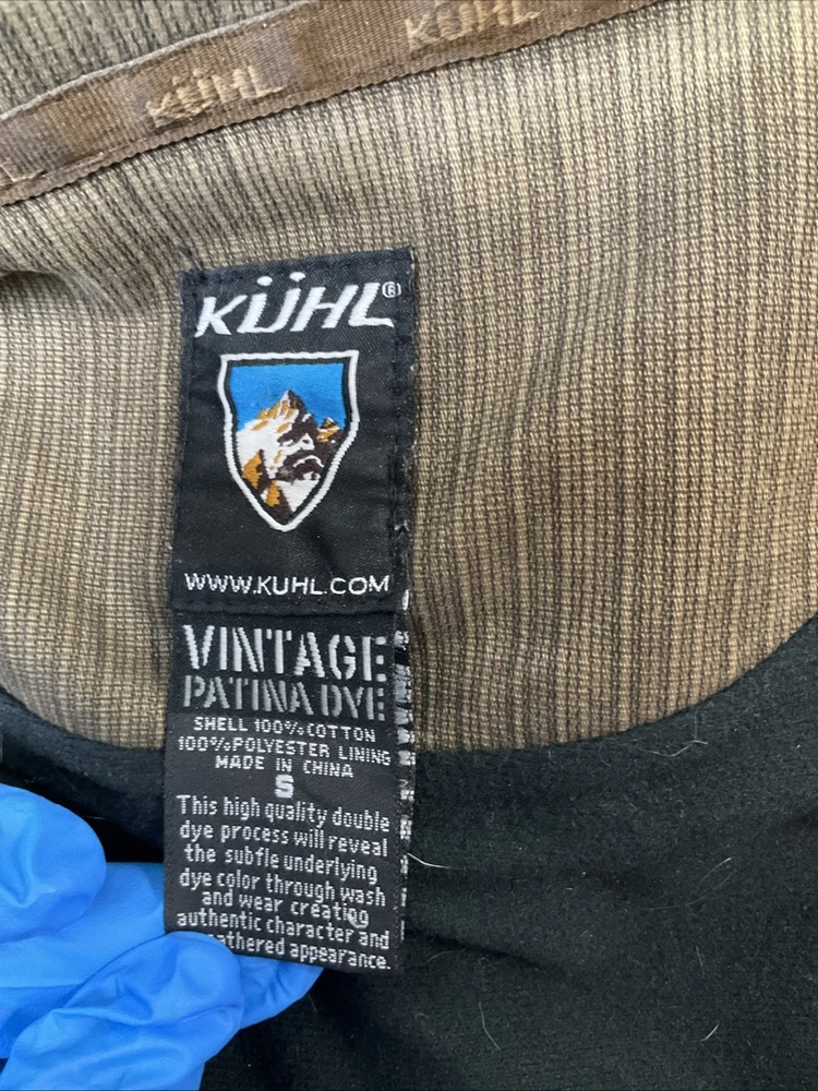 The KUHL Vintage Patina Dye Men’s Jacket in size S is a stylish and versatile outerwear option for men. Made from a durable cotton outer shell material, this jacket features a cozy fleece lining for added warmth in colder weather. The olive green color adds a classic touch, while the stand-up collar and mid-length design make it suitable for various occasions including travel, casual outings, and workwear. With zipper closures, zipped pockets, and a wind-resistant construction, this jacket is both functional and fashionable, perfect for outdoor activities like walking, skateboarding, and hiking. Easy to care for with machine washable instructions, this KUHL jacket is a must-have for any man's wardrobe.
