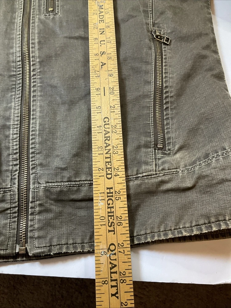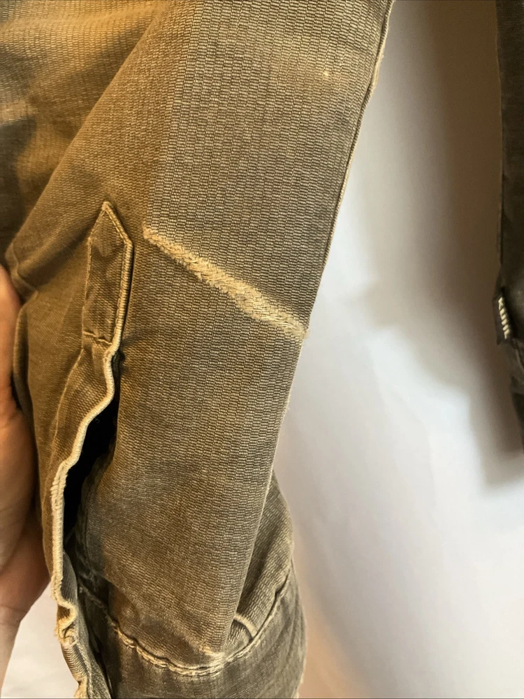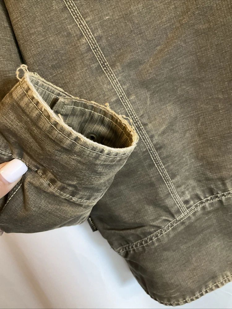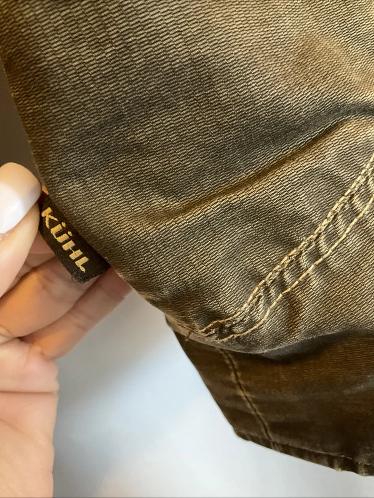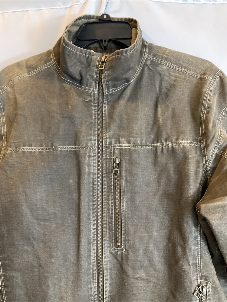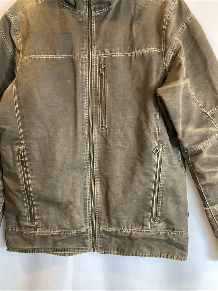 The KUHL Vintage Patina Dye Men’s Jacket in size S is a stylish and versatile outerwear option for men. Made from a durable cotton outer shell material, this jacket features a cozy fleece lining for added warmth in colder weather. The olive green color adds a classic touch, while the stand-up collar and mid-length design make it suitable for various occasions including travel, casual outings, and workwear. With zipper closures, zipped pockets, and a wind-resistant construction, this jacket is both functional and fashionable, perfect for outdoor activities like walking, skateboarding, and hiking. Easy to care for with machine washable instructions, this KUHL jacket is a must-have for any man's wardrobe.