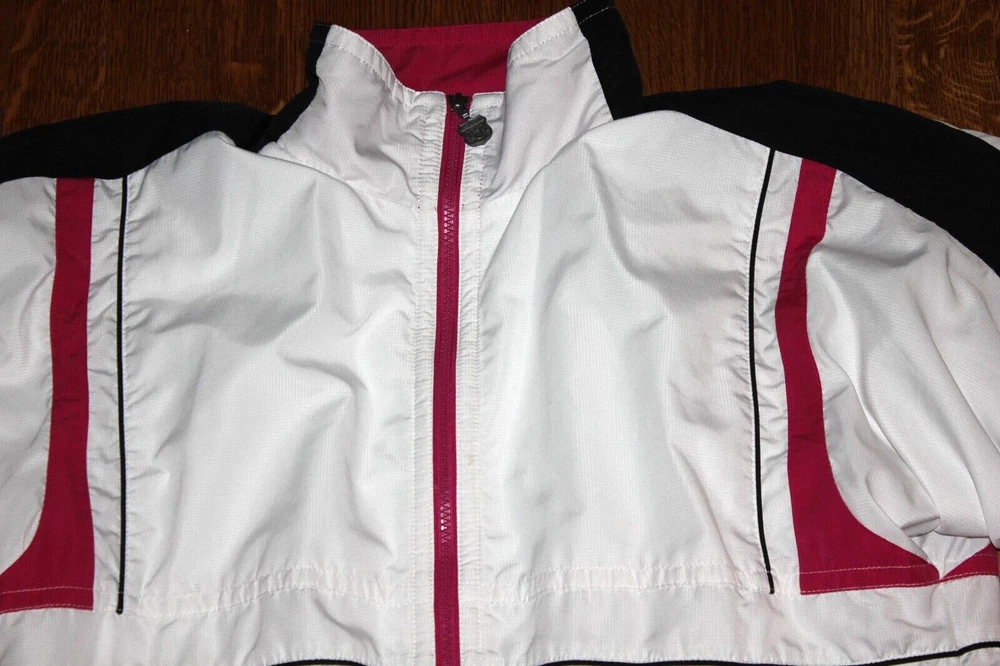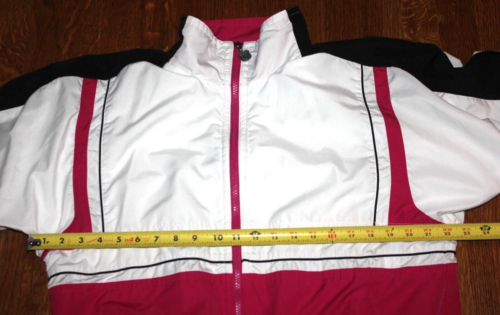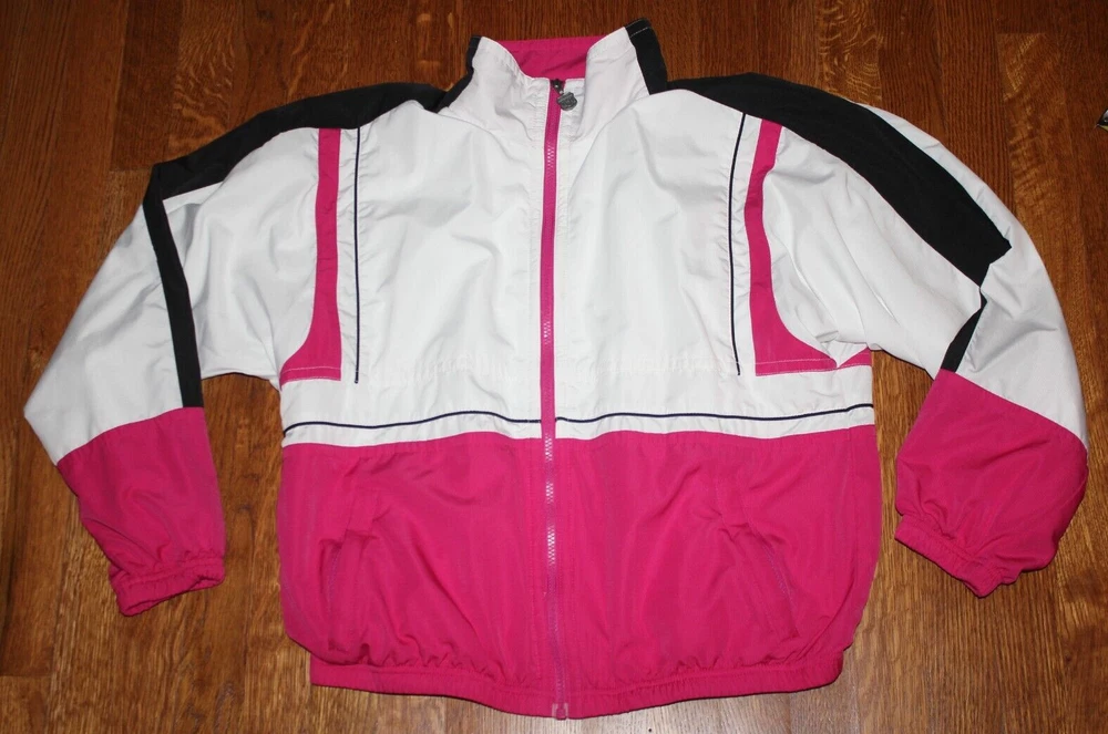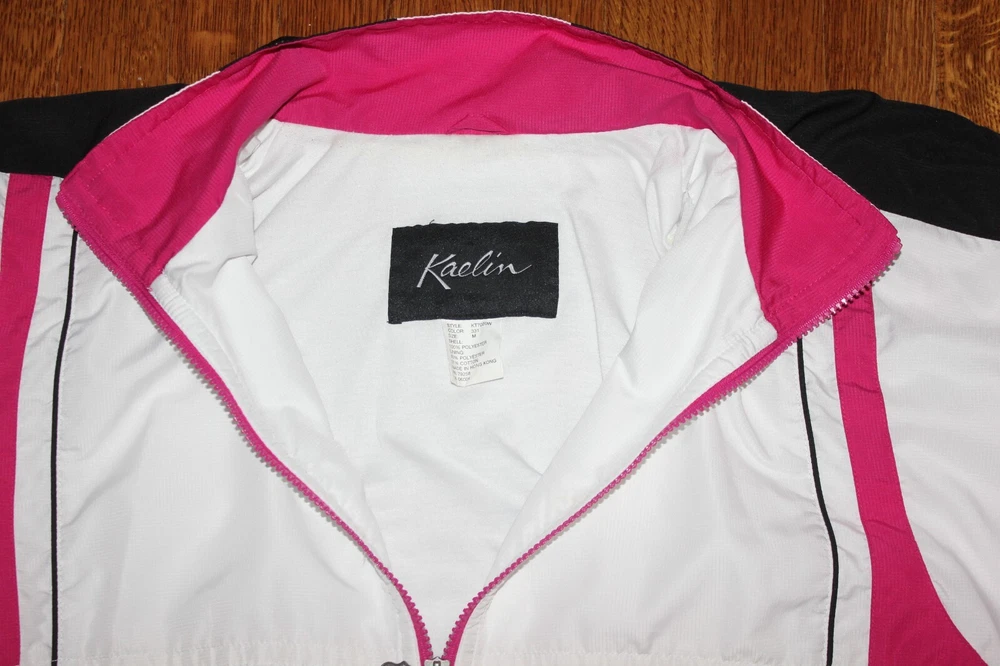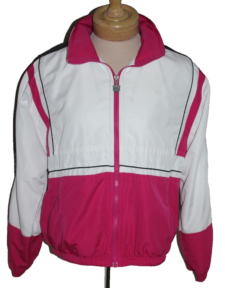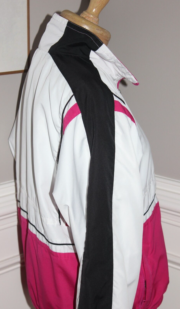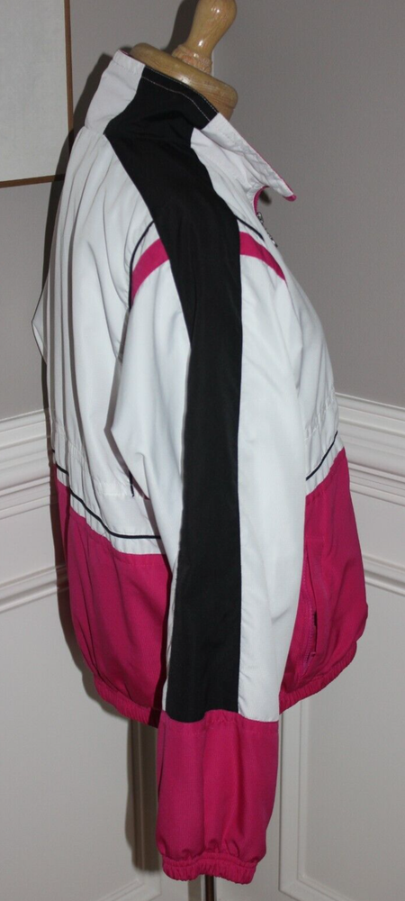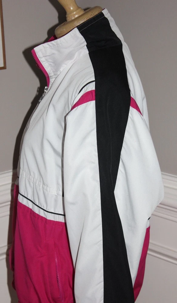 Fabulous vintage look! White with hot pink and black Ladies size Medium Hip pockets with zip closure Lined exterior 100% polyester lining 65% polyester 35% cotton I placed a ruler in some photos to give a better idea of the size Stored in a non-smoking home I ship within 24 hours of payment, Monday - Friday FREE shipping to the lower 48 states via U.S. Mail I do not accept returns, but I'm happy to answer questions before your purchase Thanks for looking! 25% of my eBay proceeds go to support Reece's Rainbow, a non-profit that supports orphans with Down Syndrome and other special needs. Thanks for your support! Admin bin 000