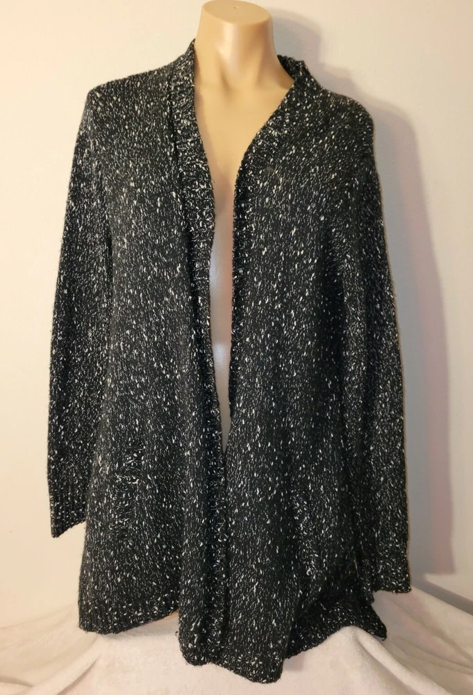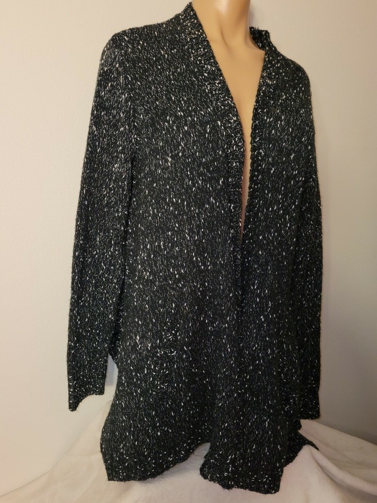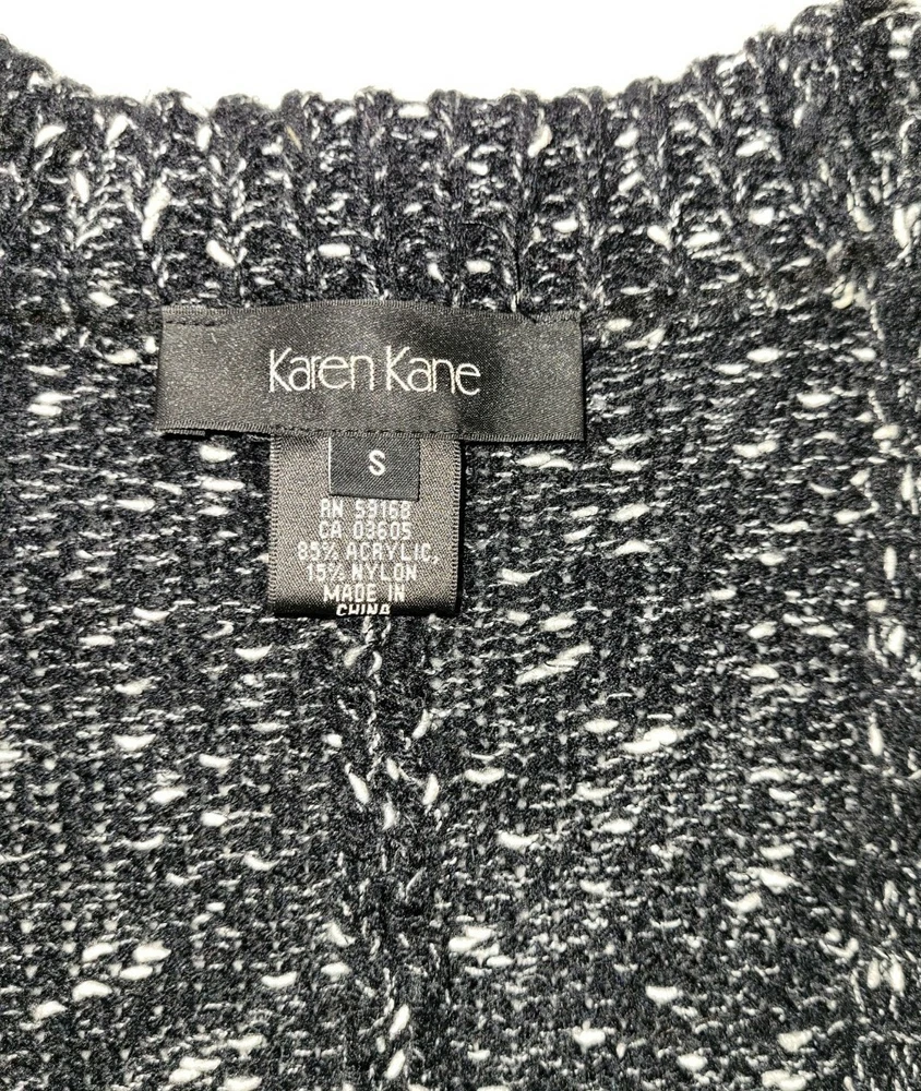 Karen Kane Small Black White Soft Comfy Long Sleeve Open Front Cardigan Sweater. The sweater is in very good condition, I did not see any holes or spots. Please be sure to view the photos and zoom in A5 Breast-23 Shoulder to bottom hem-29 Sleeve-23