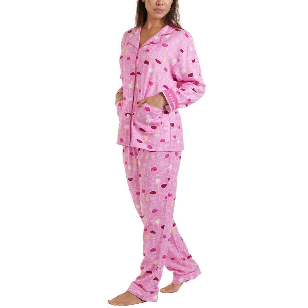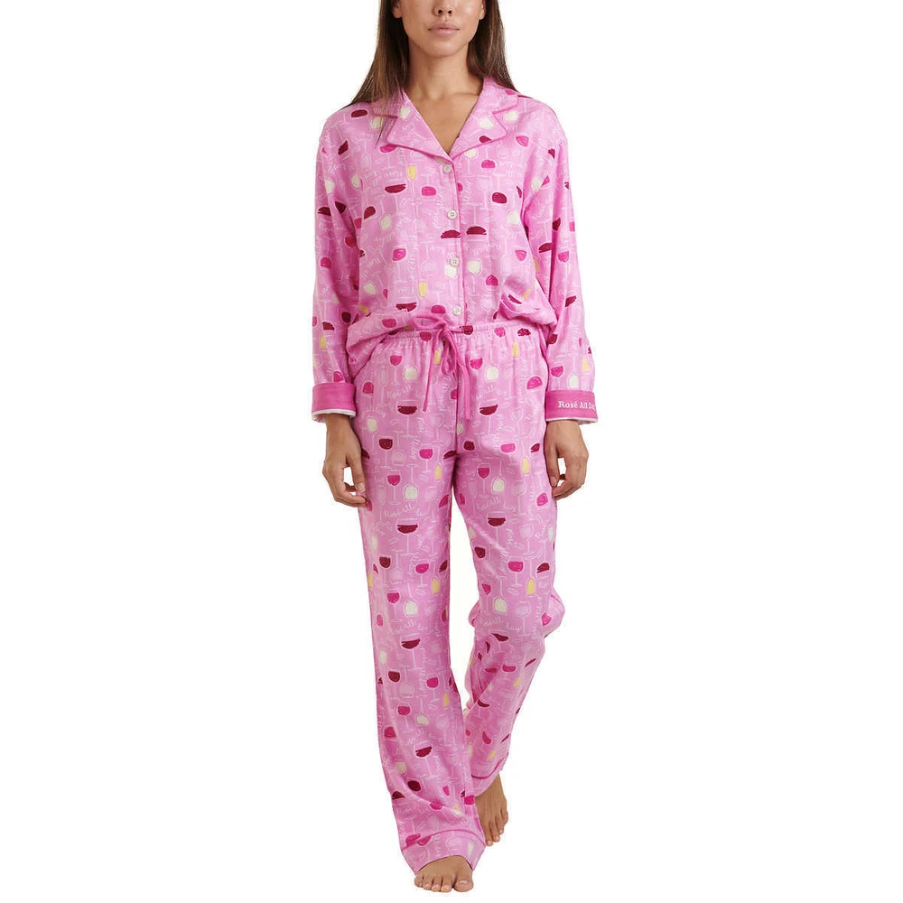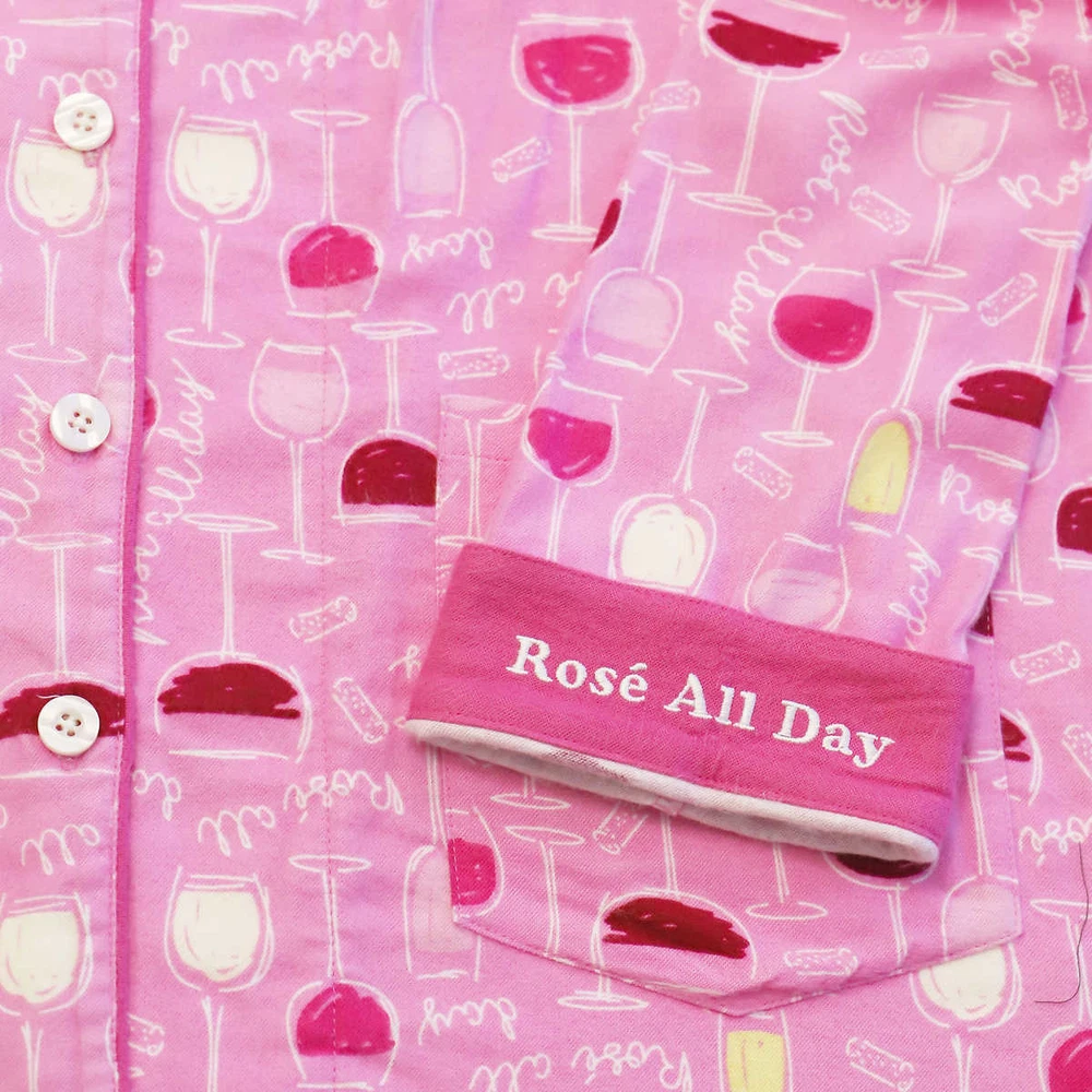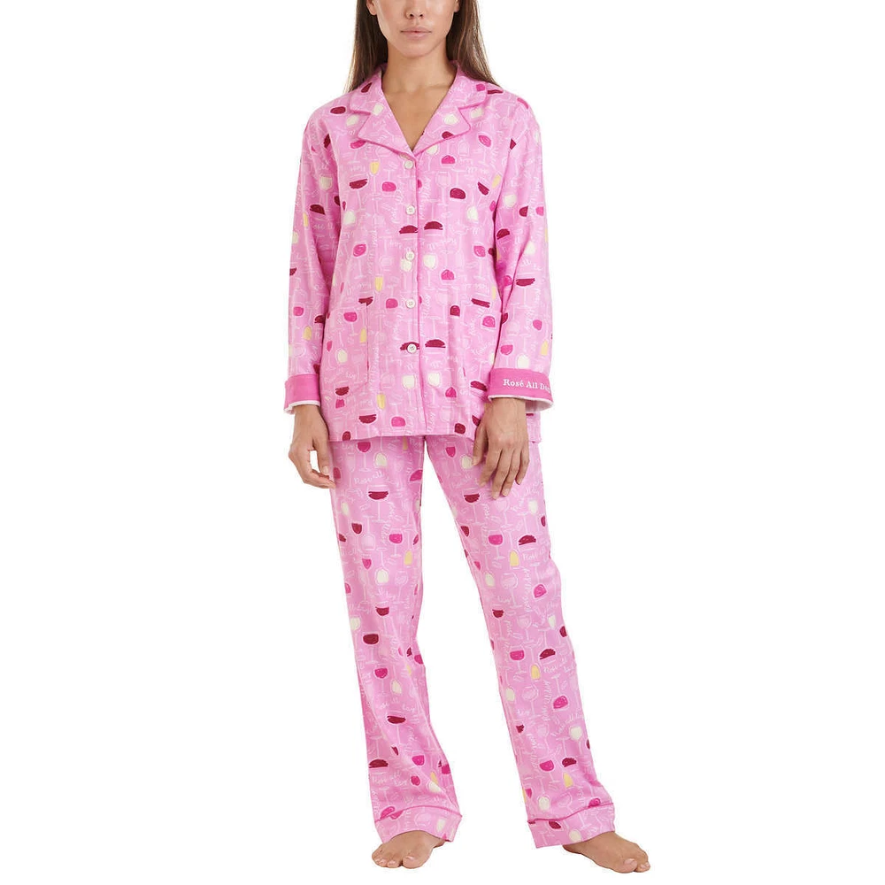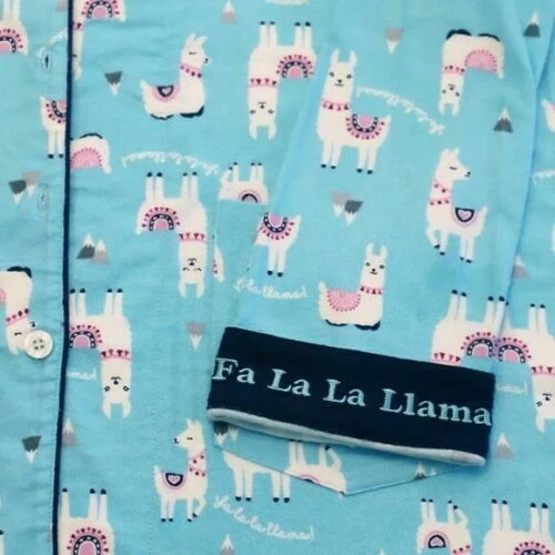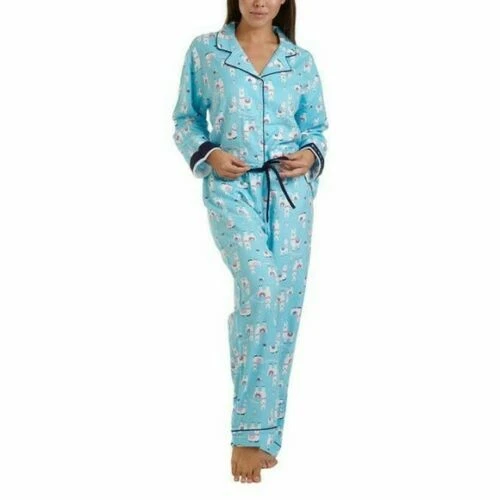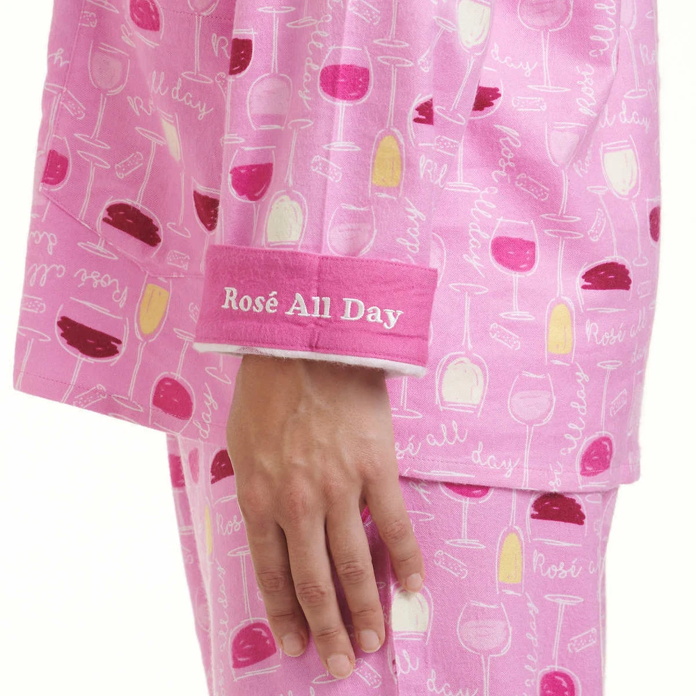 Live, Love, Lounge, Women's Flannel PJ Set w Fun Cuffs (Choose Size + Color) Colors: Blue (Fa La Llama), Pink (Rose' All Day), Gray (Be Pawsitive) Notch collar button front top with (2) patch pockets Elastic waist drawstring pant Fun message on inside cuff Made in Cambodia Fabric Content: 70% Rayon | 30% Cotton Sizing/Fit: Size Conversions: XS= 0-2, S= 4-6, M= 8-10, L= 12-14, XL= 16-18, XXL= 20-22, 2X= 24-26, 3X= 28-30 Inseam (in): 30 Model is 5'8" wearing size small Color and size subject to availability Care Instructions: Machine was cold gentle cycle with like colors Do not bleach Tumble dry low Remove promptly Cool iron if needed Note: The digital images we display have the most accurate color possible. However, due to differences in computer monitors, there may be variations in color between the actual product and your screen.