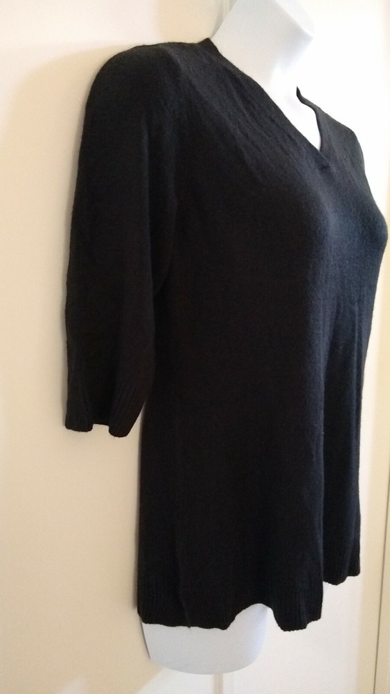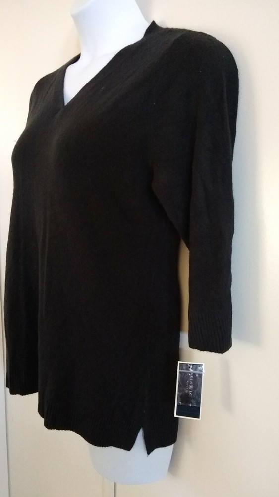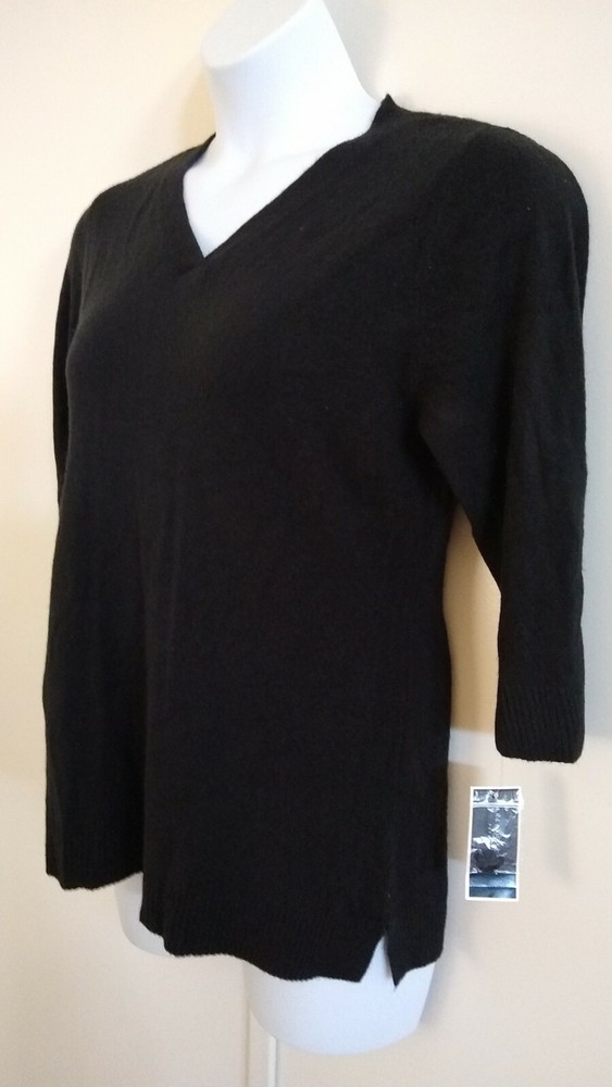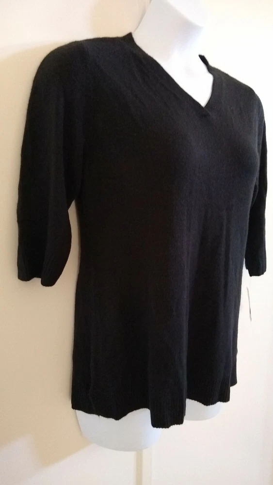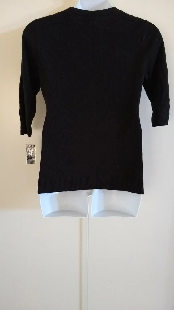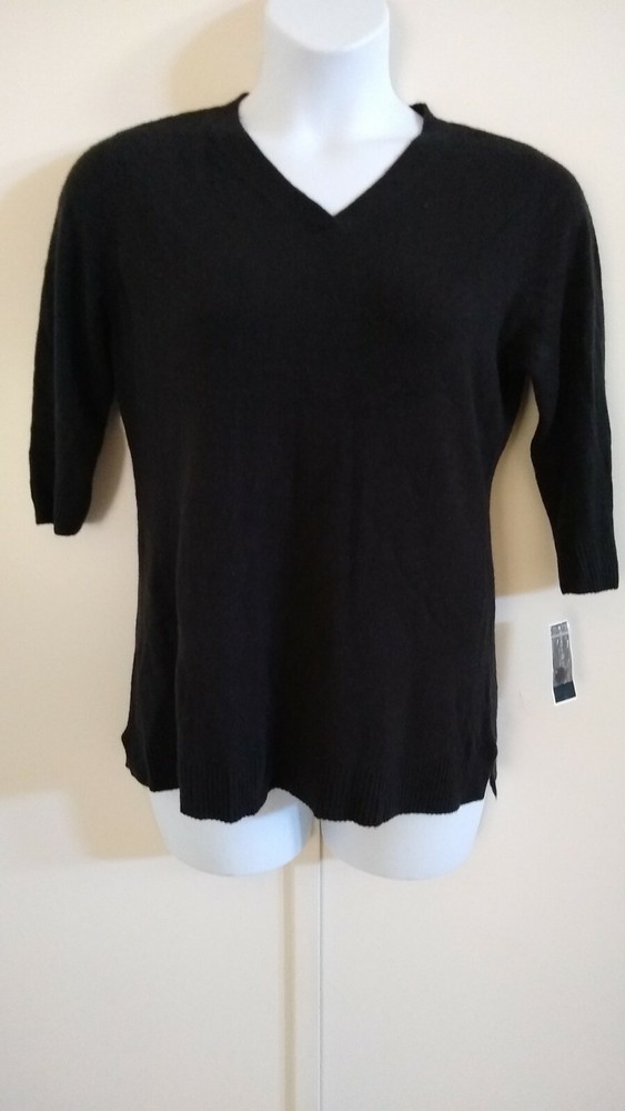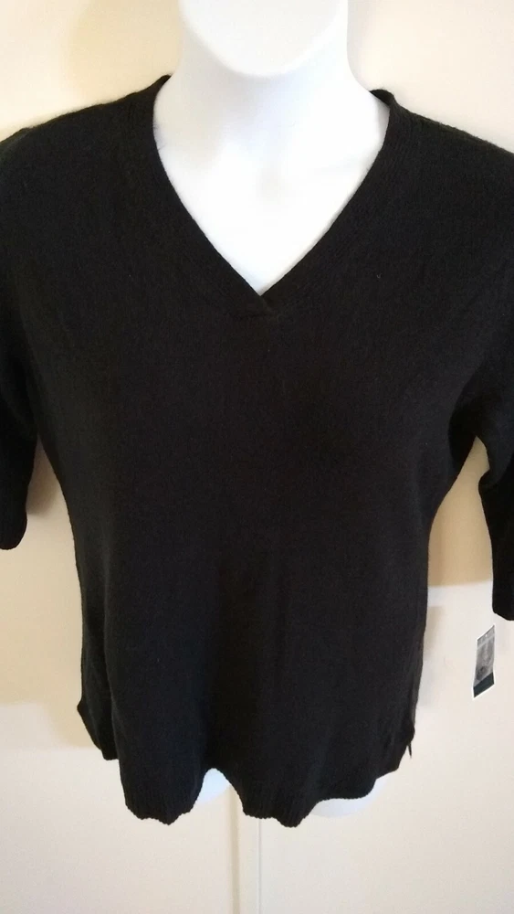 Karen Scott Women's 3/4 Sleeve V-neck Lux Cozy Soft Black Sweater Size PP. Condition is "New without tags". Chest (laying flat, arm pit to arm pit) 15 inches appx Length (shoulder to hem) 23 inches ap...