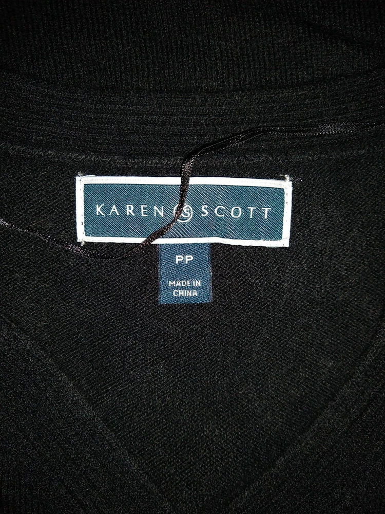 Karen Scott Women's 3/4 Sleeve V-neck Lux Cozy Soft Black Sweater Size PP. Condition is "New without tags". Chest (laying flat, arm pit to arm pit) 15 inches appx Length (shoulder to hem) 23 inches appx. L46#33
