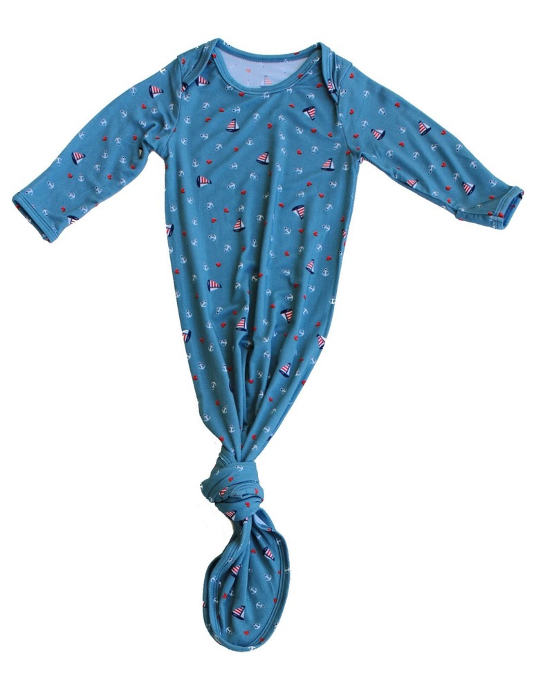Keep Me Cosy® Knotted Baby gown in luxury bamboo fabric is the most cute and comfortable onesie to dress your newborn baby: The soft and stretchable gown with lap shoulder neckline slides easily over the baby’s head for a snug fit. Suitable for all day baby wear as the breathable bamboo fabric is lightweight and feels buttery soft on babies’ delicate skin. Ideal as baby sleepwear as the tie bottom makes the task of frequent diaper changes easier and also keeps tiny toes warm. No more dealing with buttons or zippers in the middle of the night. The sleeves come with fold over no scratch cuff so you don’t need a mitten. The size and care label are screen printed onto the inside collar area so there are no tags to cause skin irritation. KEY FEATURES: 95% Bamboo, 5% Spandex Soft and breathable bamboo viscose Regulates heat naturally; suitable for all seasons Bamboo is naturally anti-bacterial and odour resistance Cute exclusive Nautical Teal design Lap Shoulder for easy on and off Knotted bottom for quick and easy nappy change Sleeves with fold over cuffs; no need for mittens Screen printed care labels; no tags to cause irritation Matching top hat available Perfect for coming home outfit and newborn photos 0 to 3 Months (but we do have baby wearing it to 6 months!) Machine washable The Must Have Baby Wear Here at Keep Me Cosy we know that as a new mum or mummy-to-be, you will want products that are not only stylish but also practical and easy to use. Our exclusive range of baby knotted gown is about quick and simple with a new baby! Don’t fiddle with zippers, snaps or buttons; simply slides the gown over baby’s head and tie the bottom to close up the feet. Ideal for late night diaper changes or daytime lounging in the house. All the gowns are made from quality bamboo fabric and is available in five cute designer prints with matching hats (sold separately). Ideal for coming home outfit and newborn photo shoot. Benefits of Bamboo Gown Bamboo viscose is silky soft and lightweight. The fabric has a lush texture and the natural weave in the fibres makes it stretchable. The gown fits snuggly almost like a second skin and is comfortable for all day wear. Bamboo is naturally anti-bacterial, anti-fungal and odour resistant. Their hypoallergenic properties make them a great material for sensitive skin. Bamboo fabric is breathable and very absorbent enabling it to wick away moisture to dry off quickly. The excellent ventilation helps it to regulate body heat naturally so that the gown feels cooler in summer and warmer in winter. Bamboo is an eco-friendly plant which is fast growing and does not requires any fertiliser or chemical. It is thus a highly renewable and sustainable resource.